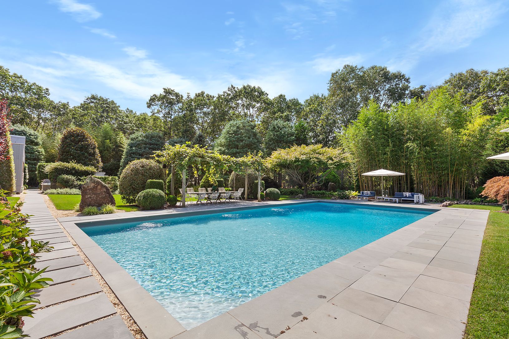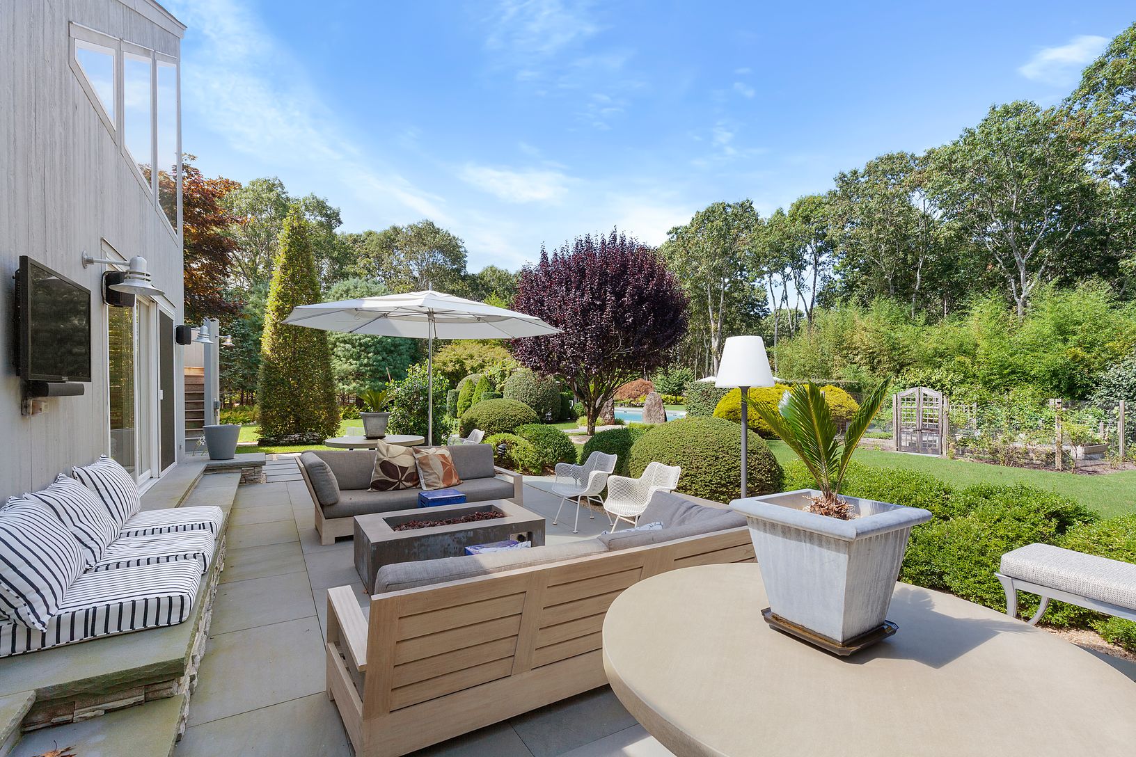 A truly spectacular 4 bedroom contemporary on 4.8 acres in Sagaponack. Intelligently designed and decorated, the beautiful light-filled open kitchen that opens up to a large living area that opens up to lush gardens and landscapes. New bathrooms, outdoor fireplace, 20 x 50 pool, an all-weather tennis court, outdoor television, and multiple groovy dining areas and furniture.