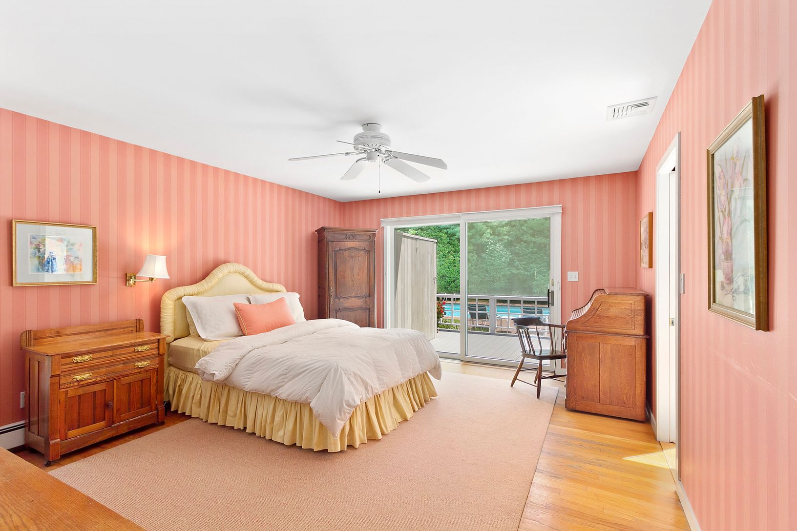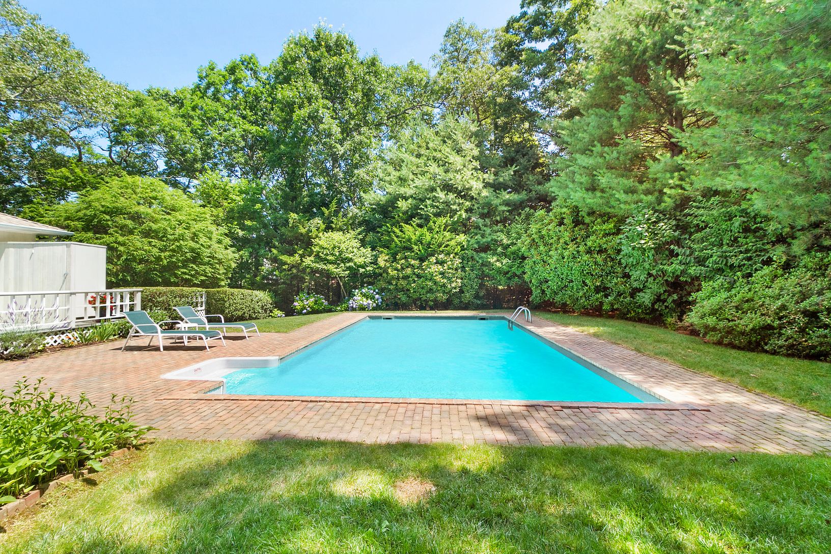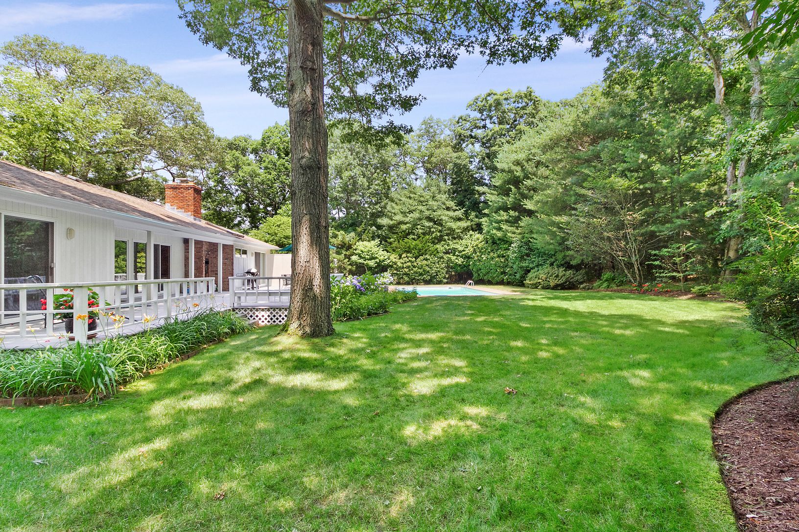 Located a block away from Sammy's Beach, 138 Old House Landing Road in East Hampton, offers a 2,000 sq. ft. one level home with 3 beds, 3 baths, open kitchen, living room and den all centered on the beautiful outdoor space. Situated on .78 acre, the home extends out onto an 800 sq. ft. deck with covered area and outdoor shower and overlooks the heated pool surrounded by cleared lawn space. Use as is or take advantage of the opportunity to expa