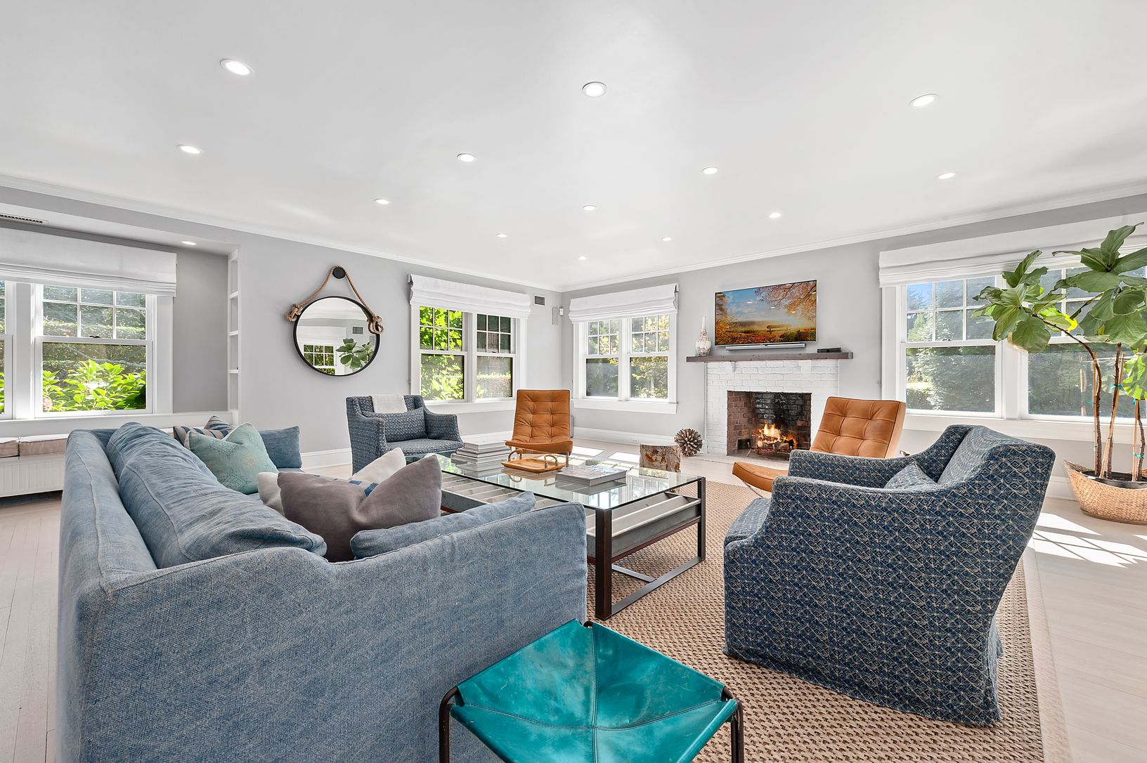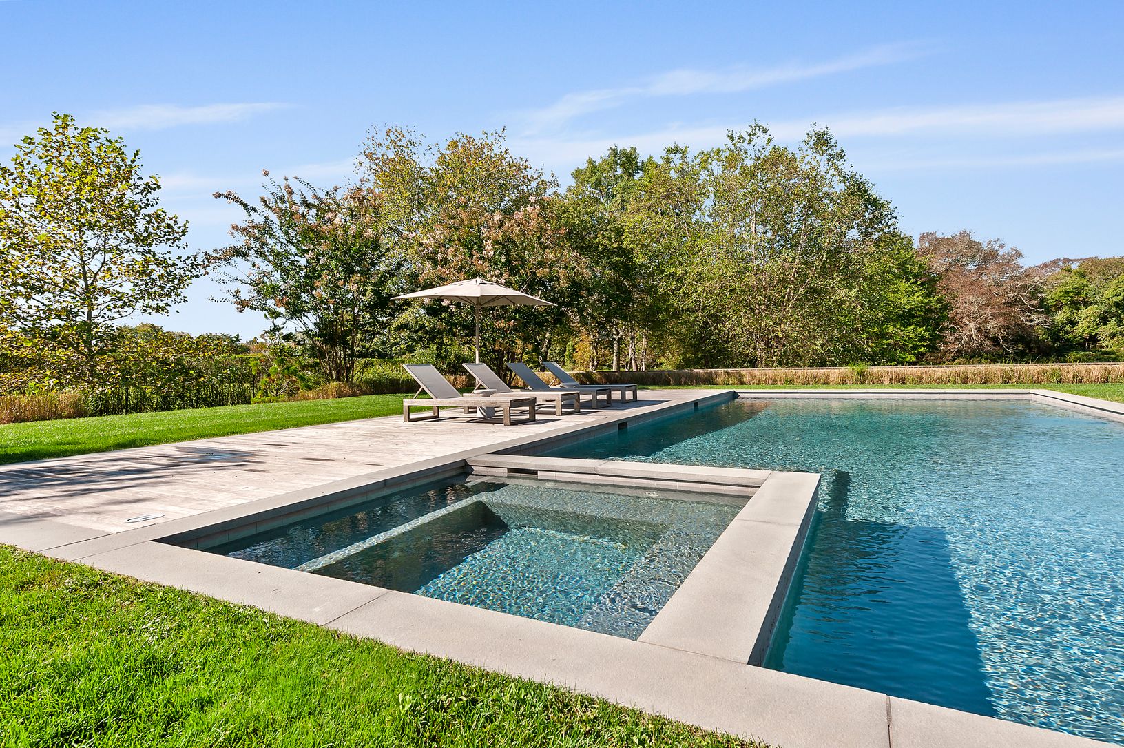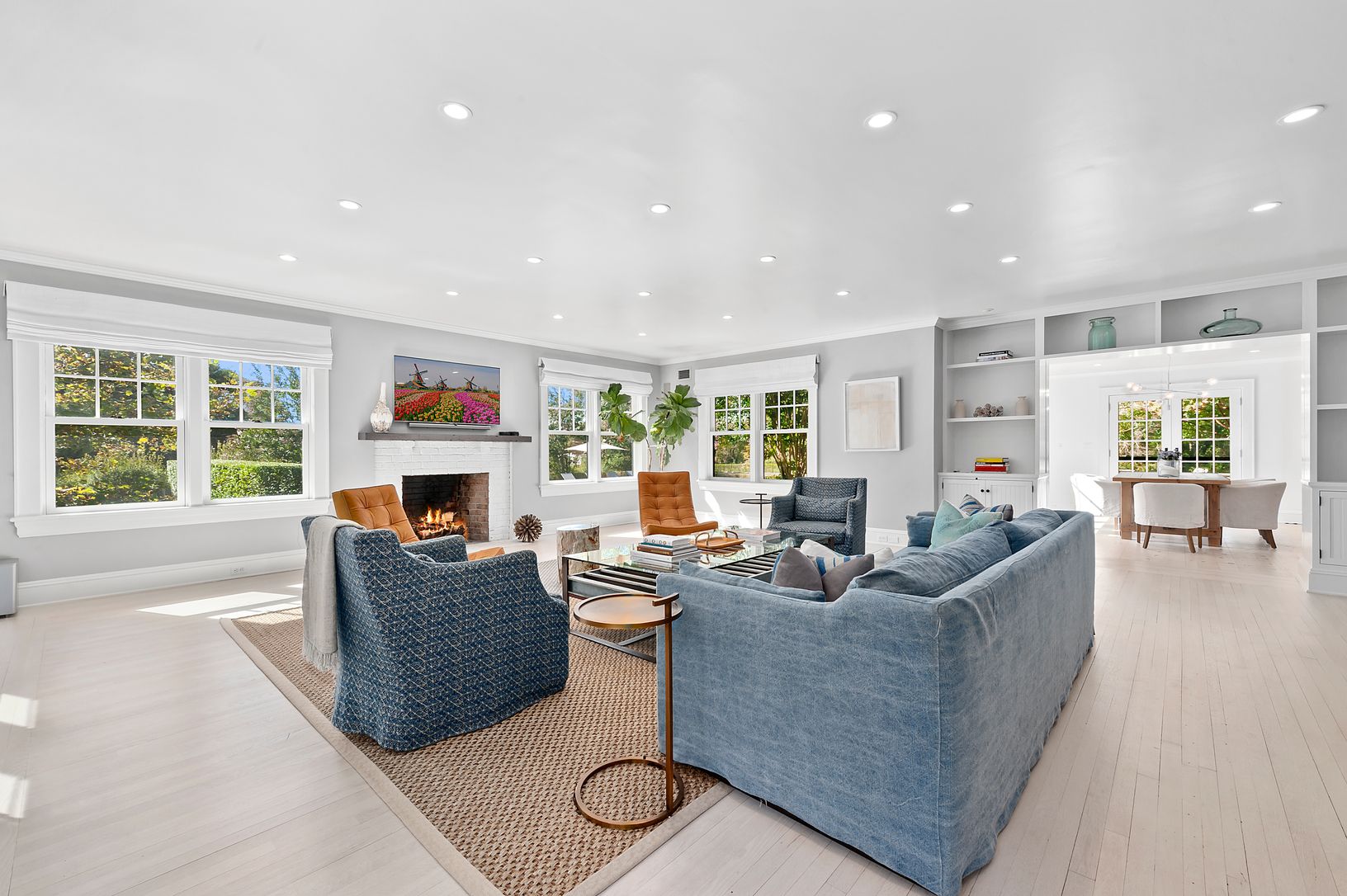Sleek and stunning, this modern farmhouse sits on a lush 2+/- acre property in the Village of Sagaponack, with multiple outdoor entertaining areas, a heated gunite pool and spa, and sprawling manicured lawns. The 4-bedroom, 3.5-bath home was renovated to perfection in 2015, offering exquisite details and high-end appointments throughout. Featuring 3,842+/- sq. ft. of living space, the open floor plan offers a spacious living room with brick fi