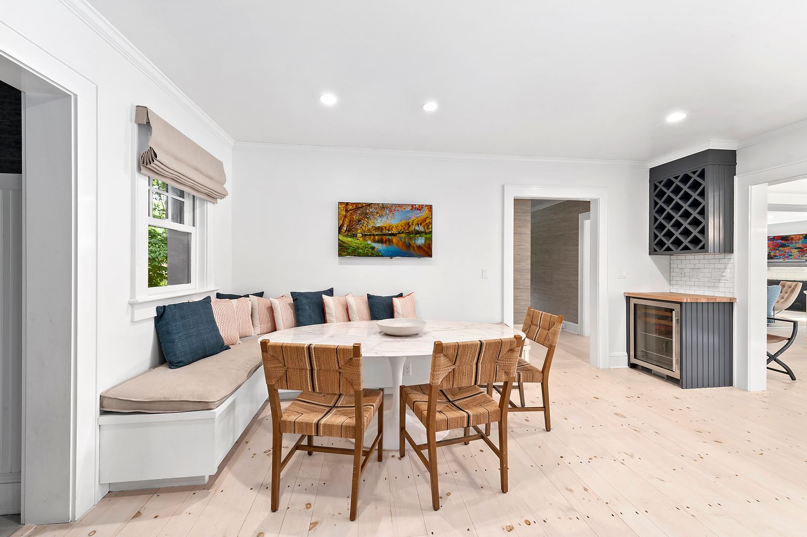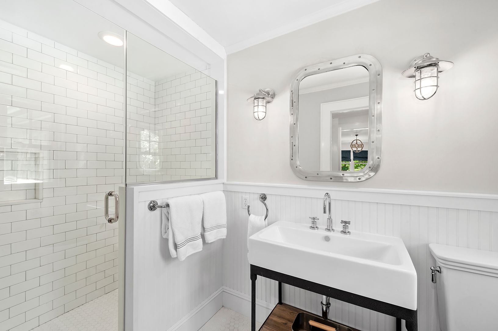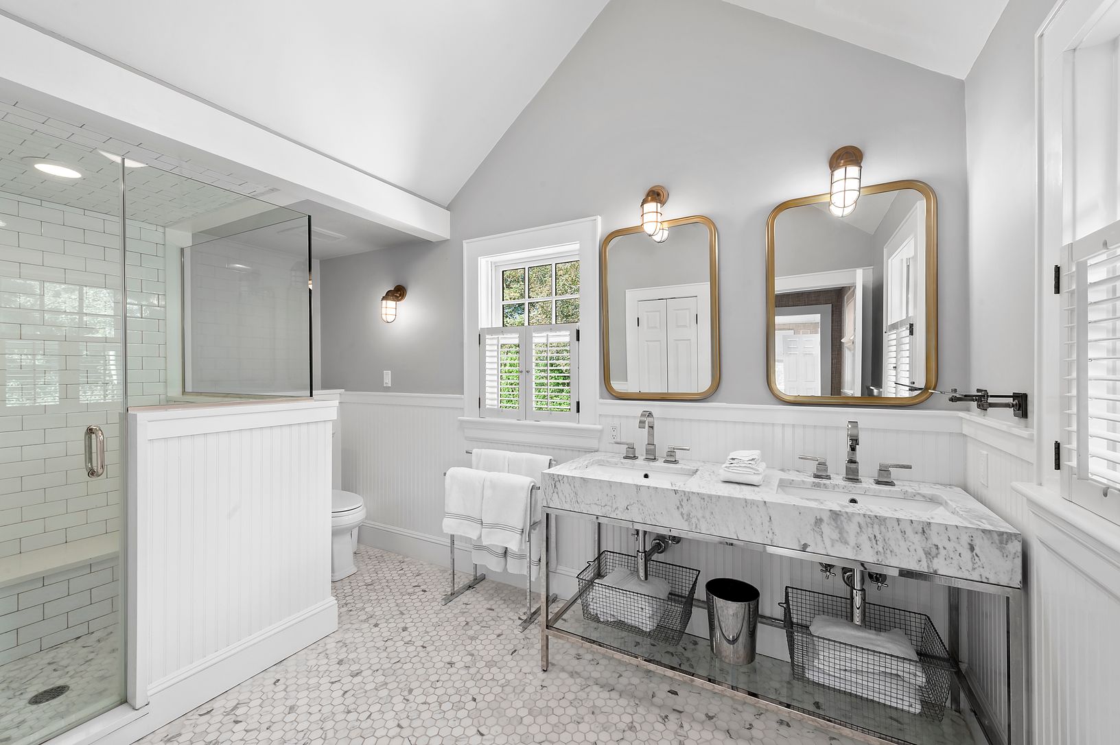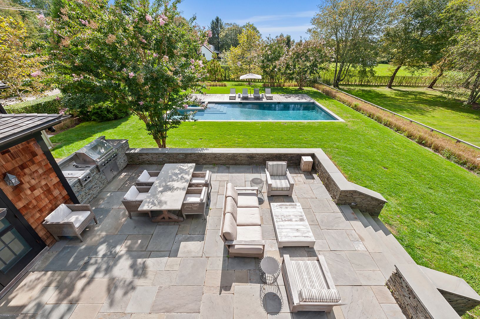 Sleek and stunning, this modern farmhouse sits on a lush 2+/- acre property in the Village of Sagaponack, with multiple outdoor entertaining areas, a heated gunite pool and spa, and sprawling manicured lawns. The 4-bedroom, 3.5-bath home was renovated to perfection in 2015, offering exquisite details and high-end appointments throughout. Featuring 3,842+/- sq. ft. of living space, the open floor plan offers a spacious living room with brick fi