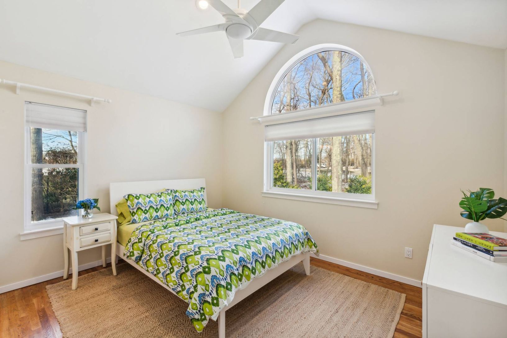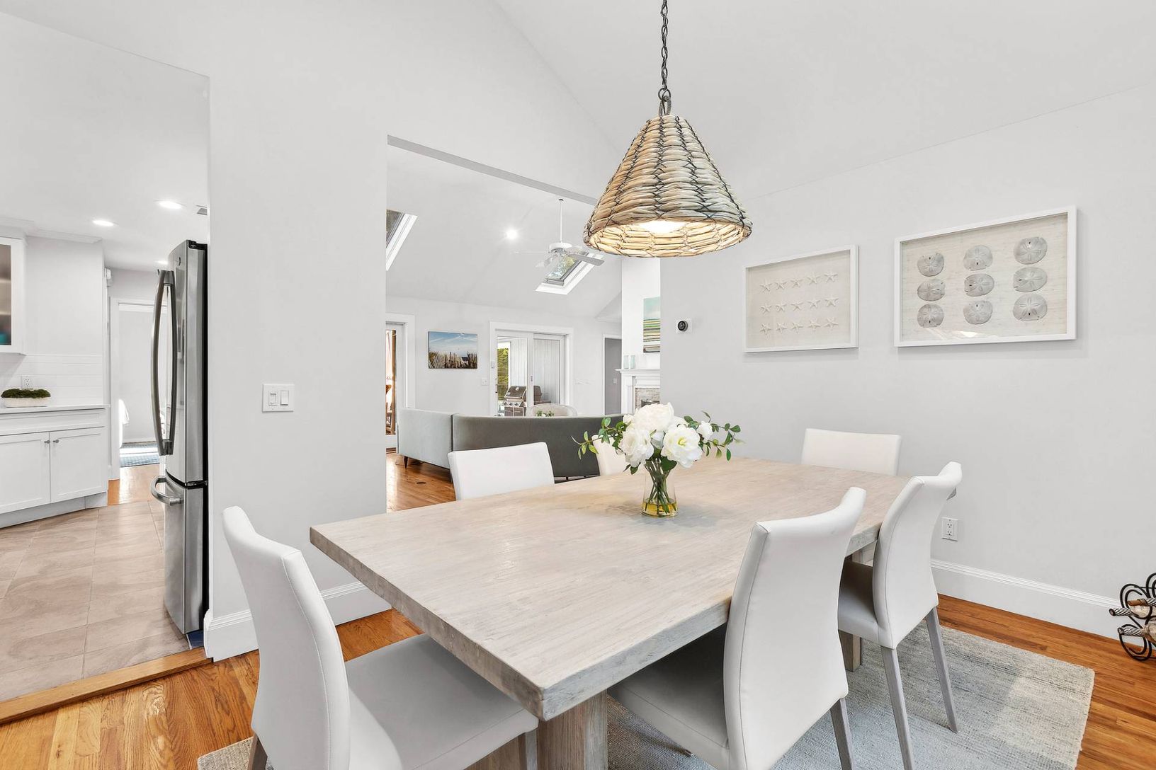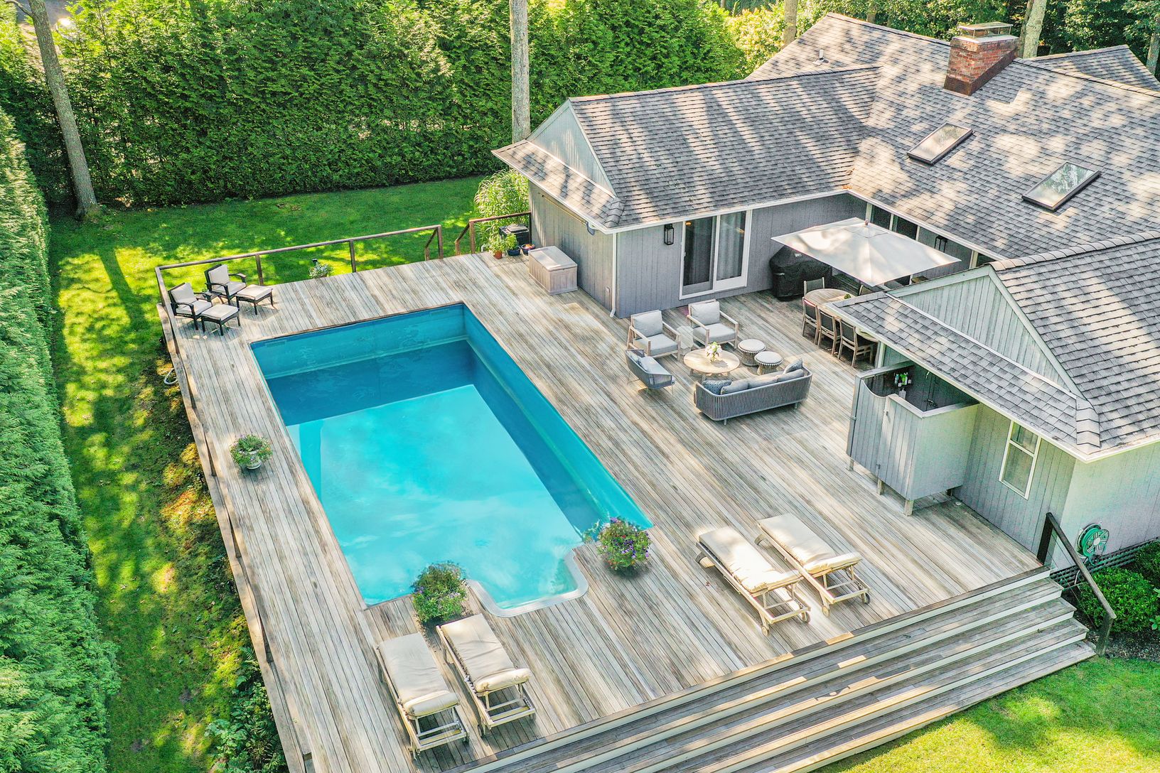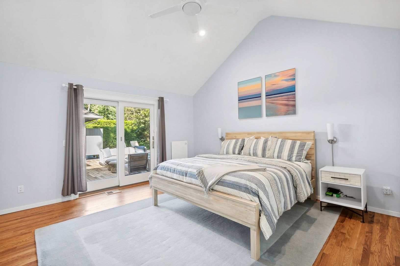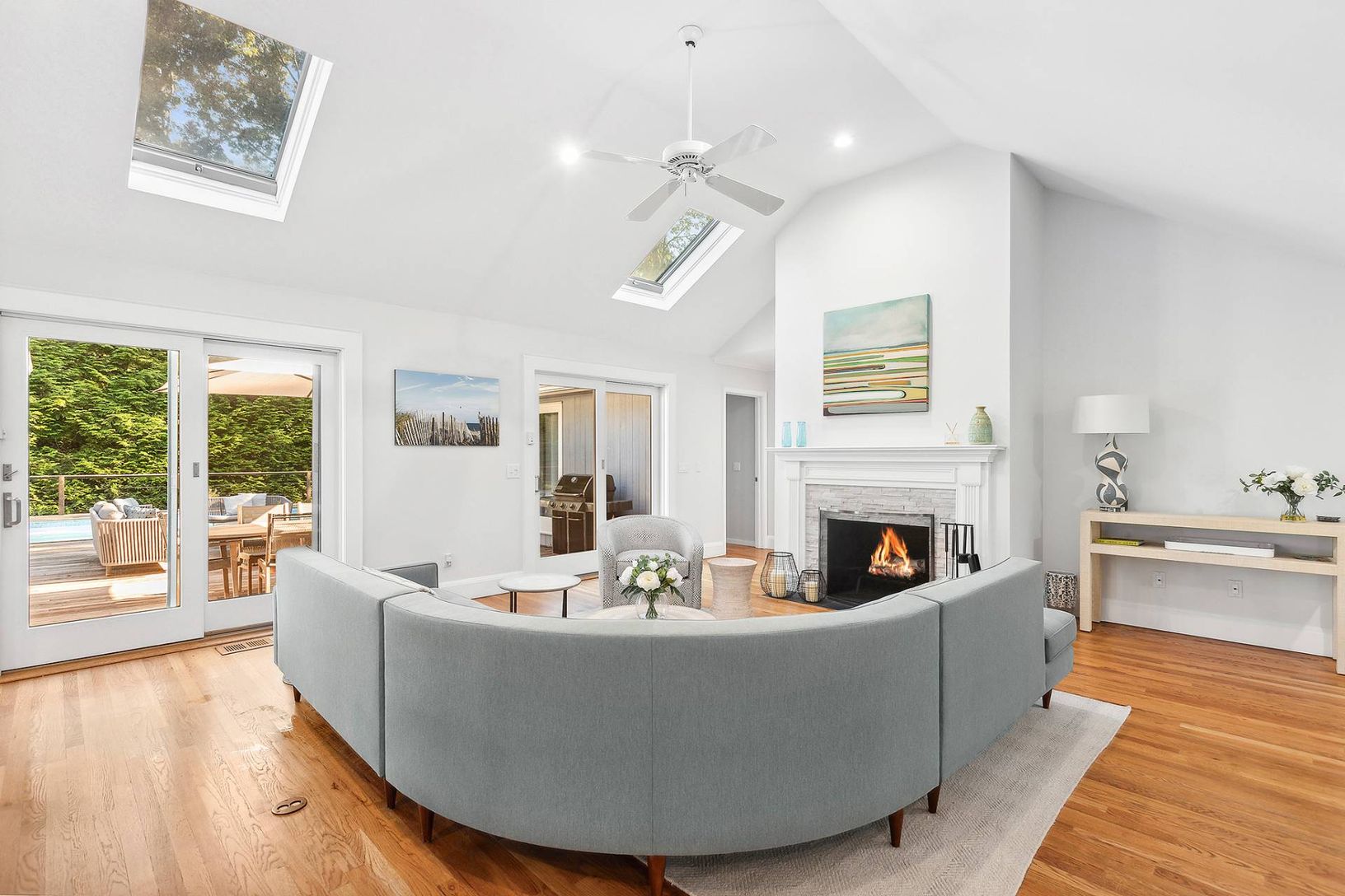 Nestled on a flag lot just off a cul-de-sac, this exquisite single-story contemporary with a heated pool blends elegance with modern comfort, just moments from the vibrant Village of Bridgehampton. Commanding 6 bedrooms and 4 baths, this home is complemented with access to community tennis courts just moments away. The spacious living room boasts a wood-burning fireplace, 2 skylights that bathe the room in natural light and is accentuated by a