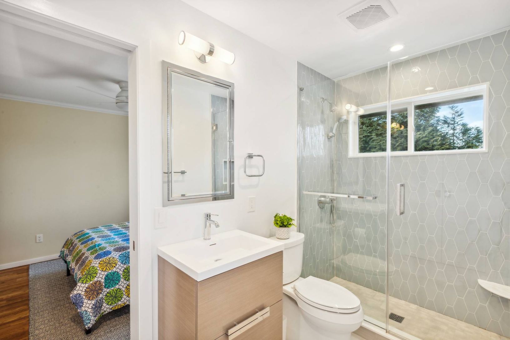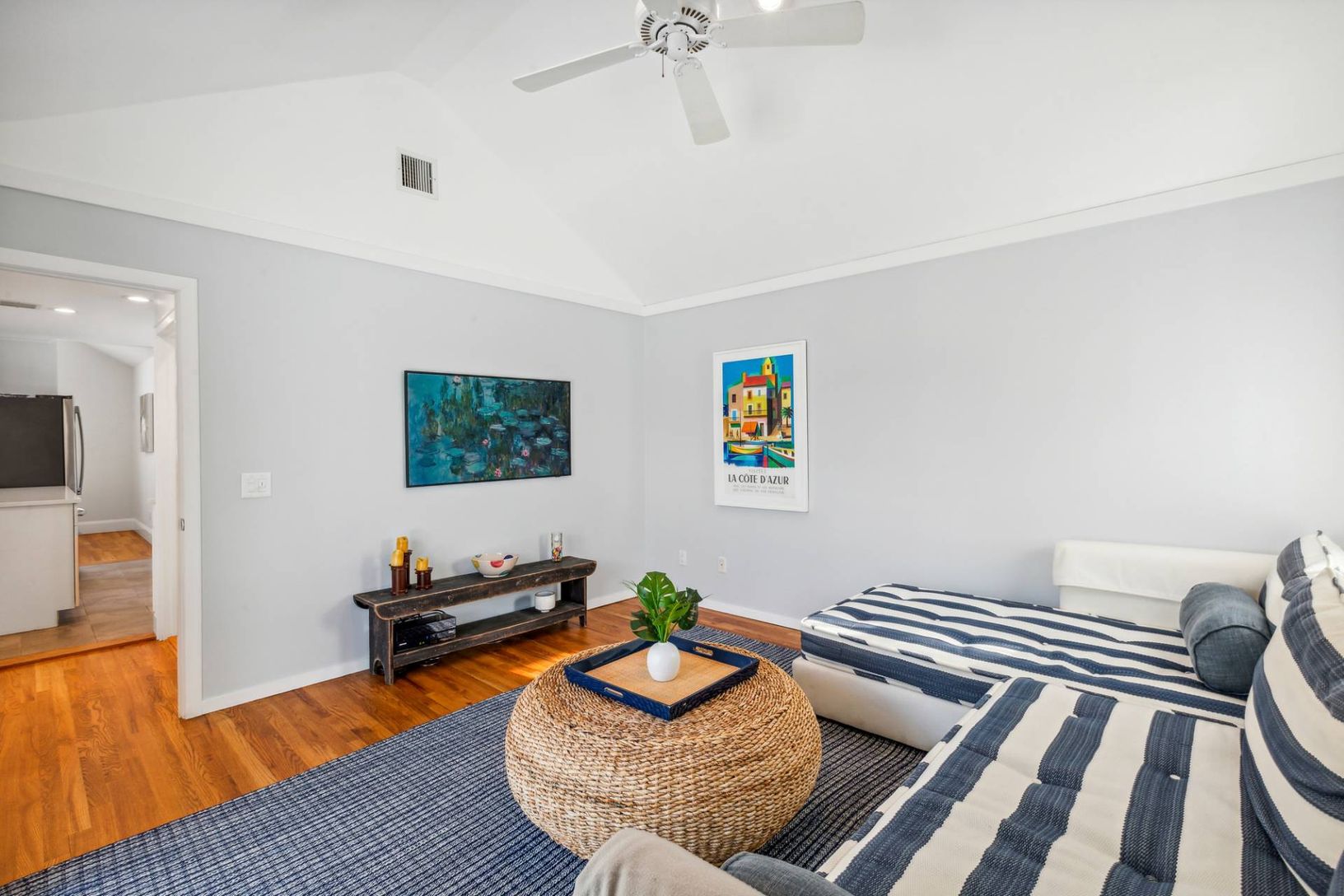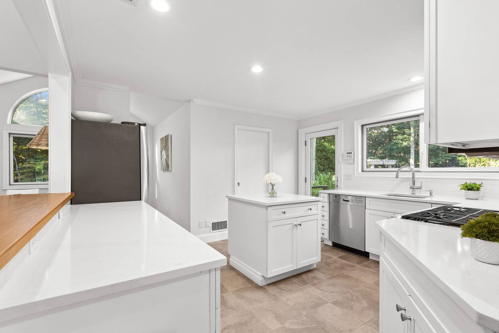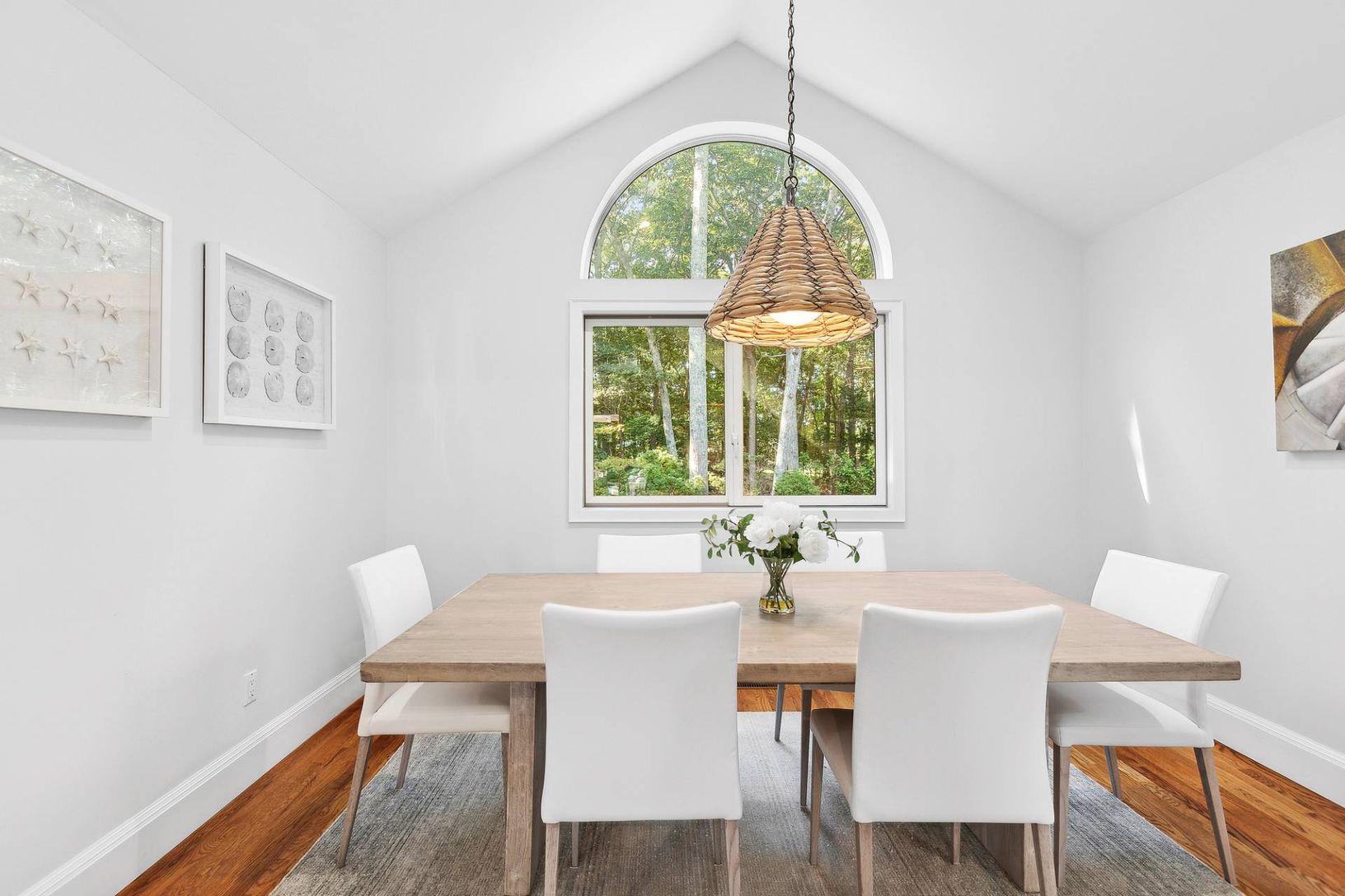 Nestled on a flag lot just off a cul-de-sac, this exquisite single-story contemporary with a heated pool blends elegance with modern comfort, just moments from the vibrant Village of Bridgehampton. Commanding 6 bedrooms and 4 baths, this home is complemented with access to community tennis courts just moments away. The spacious living room boasts a wood-burning fireplace, 2 skylights that bathe the room in natural light and is accentuated by a