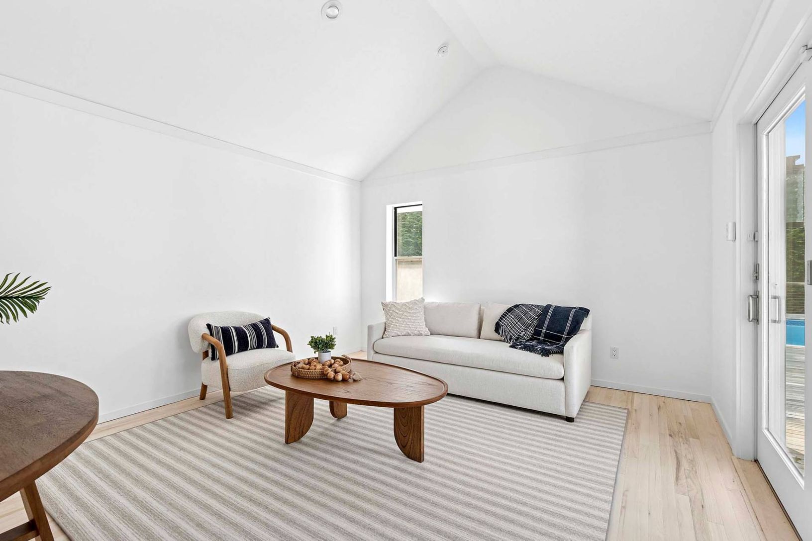 Nestled on a flag lot just off a cul-de-sac, this exquisite single-story contemporary with a heated pool blends elegance with modern comfort, just moments from the vibrant Village of Bridgehampton. Commanding 6 bedrooms and 4 baths, this home is complemented with access to community tennis courts just a stone's throw from the property. The spacious living room boasts a wood-burning fireplace, 2 skylights that bathe the room in natural light an