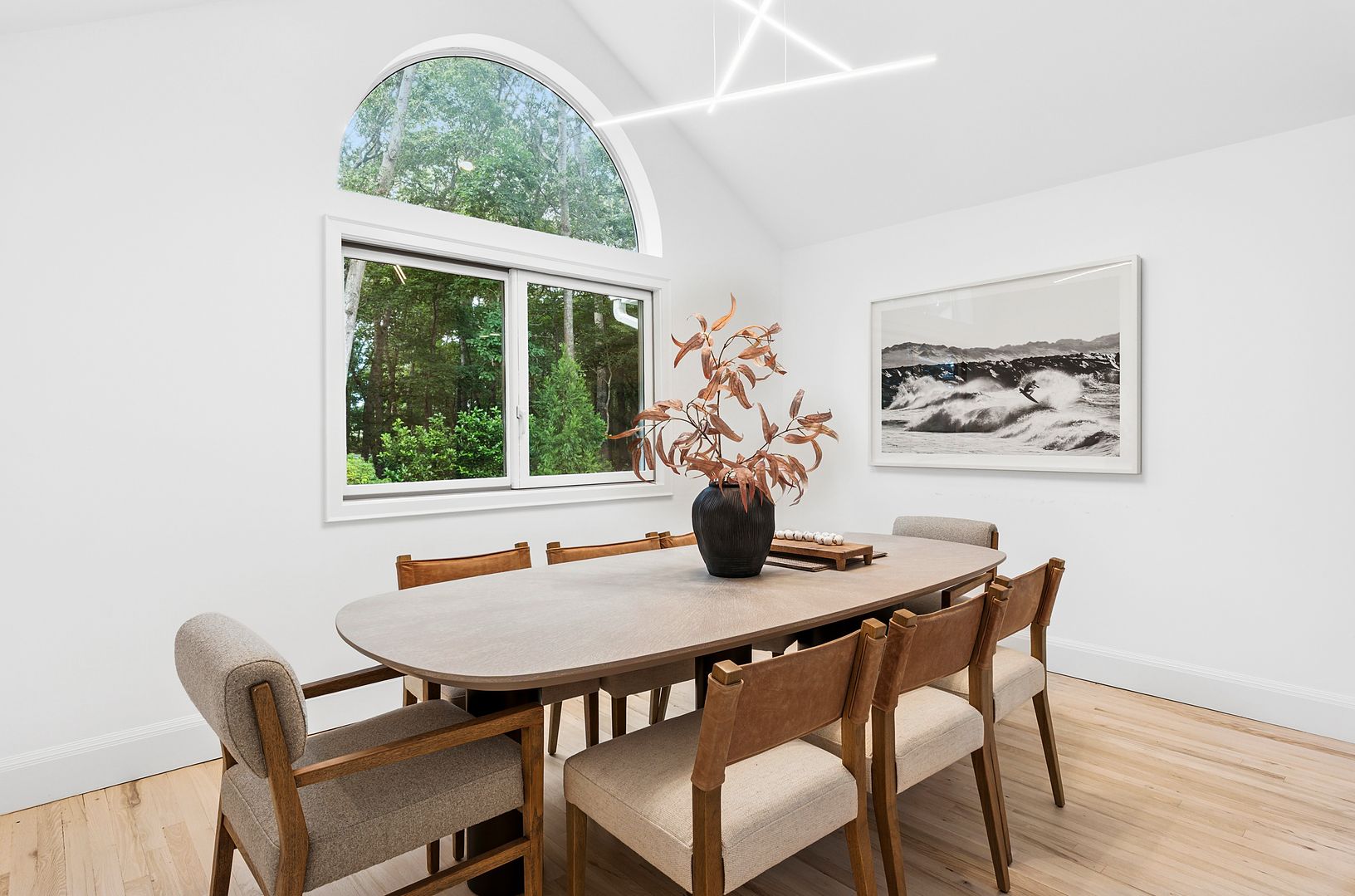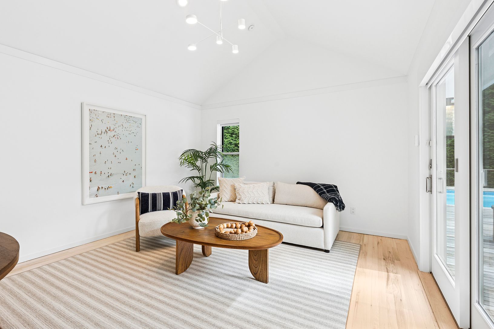 Nestled on a flag lot just off a cul-de-sac, this exquisite single-story contemporary with a heated pool blends elegance with modern comfort, just moments from the vibrant Village of Bridgehampton. Commanding 6 bedrooms and 4 baths, this home is complemented with access to community tennis courts just a stone's throw from the property. The spacious living room boasts a wood-burning fireplace, 2 skylights that bathe the room in natural light an