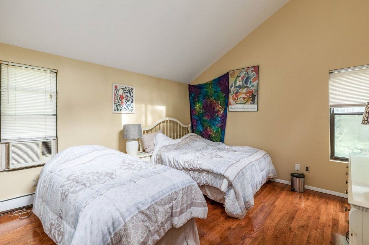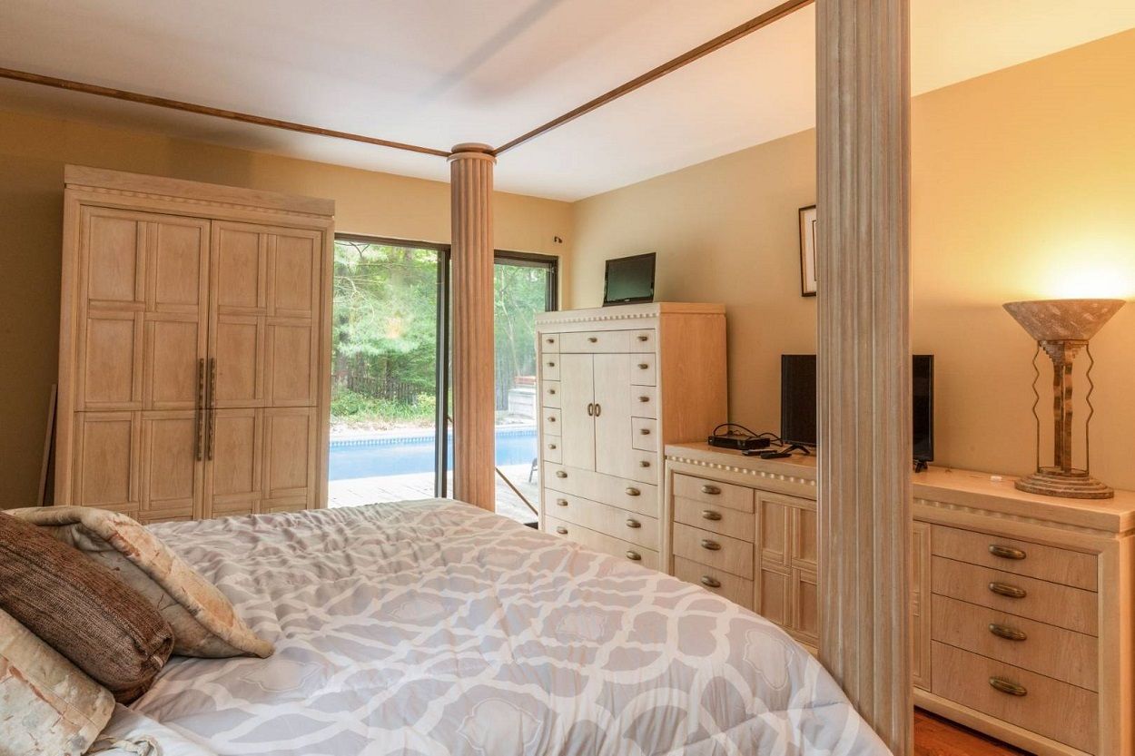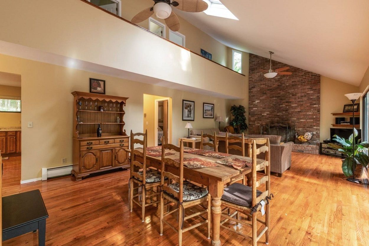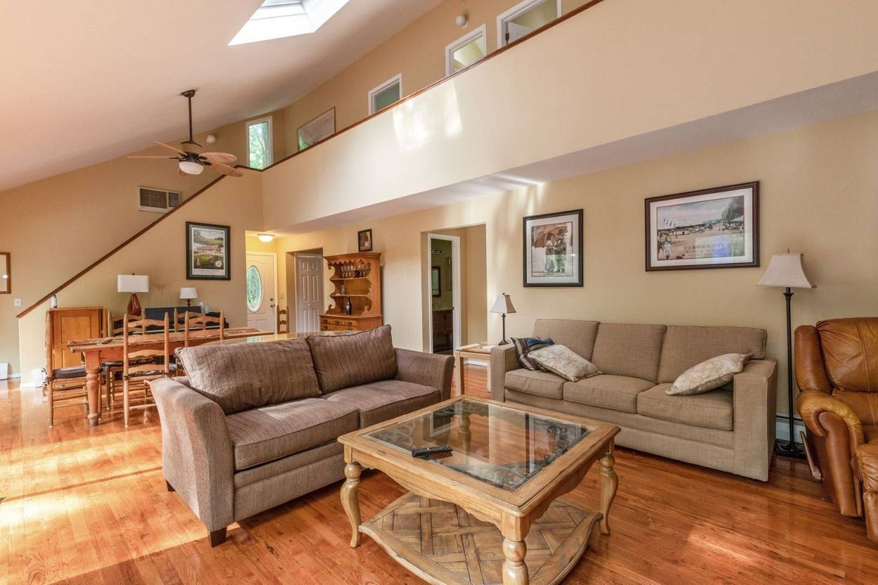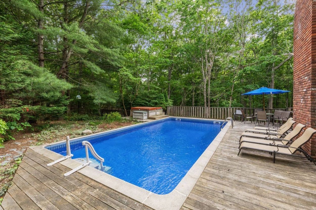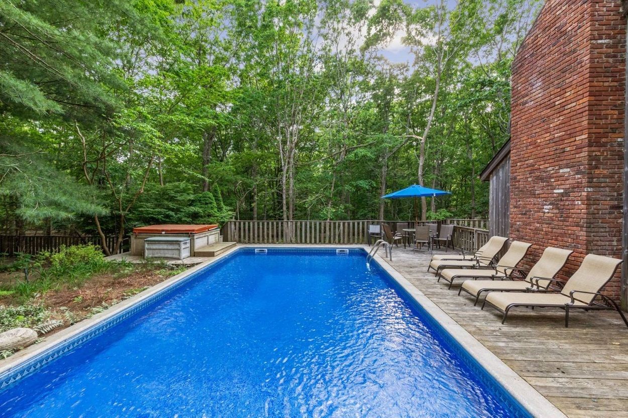 Traditional saltbox with ample light pouring in. Boasting a double-height living room with a fireplace, this three-bedroom, two-bath home creates open space. Master on the 1st floor with an updated kitchen. Extensive decking around a private pool and hot tub, with lovely landscaping. New roof and driveway. Consistent history of rental income.
