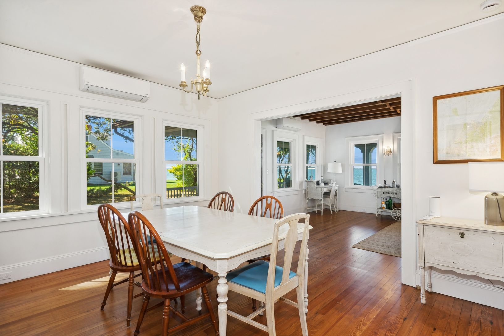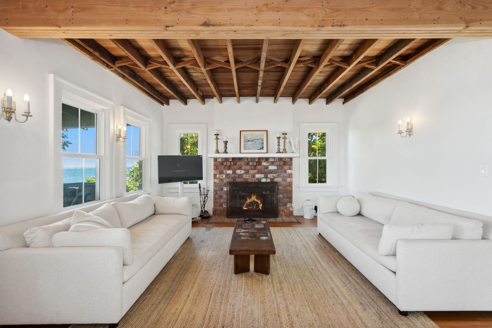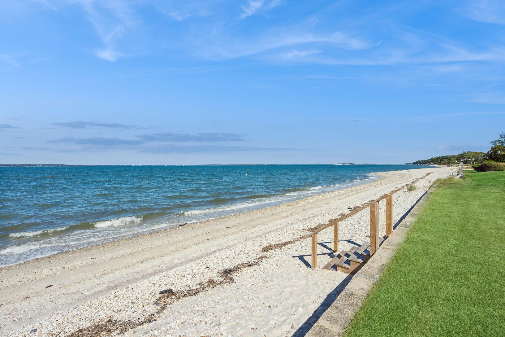 Escape to a serene summer haven where old-world charm meets modern luxury in this stunning 5-bedroom, 3-bathroom waterfront oasis. Perfectly positioned with western exposure, you'll enjoy unparalleled sunset views over the sandy shores of Peconic Bay, creating the ideal backdrop for an unforgettable summer retreat. This expansive 2,800-square-foot home blends classic elegance with contemporary comfort. The living room, complete with a cozy fir