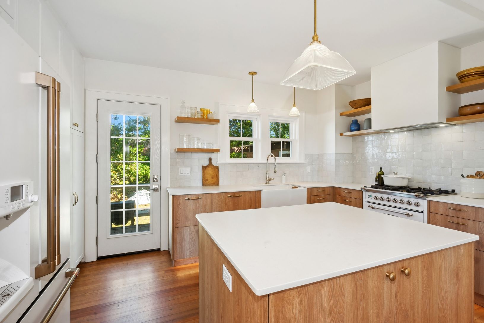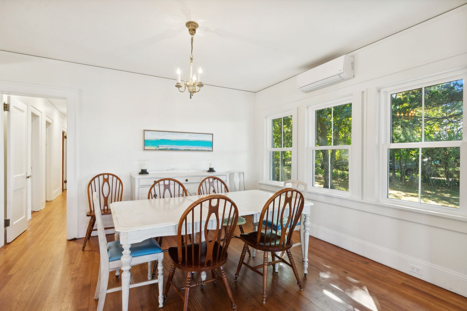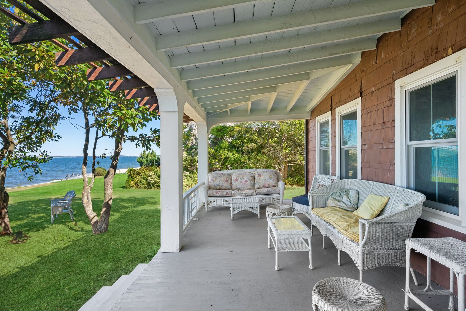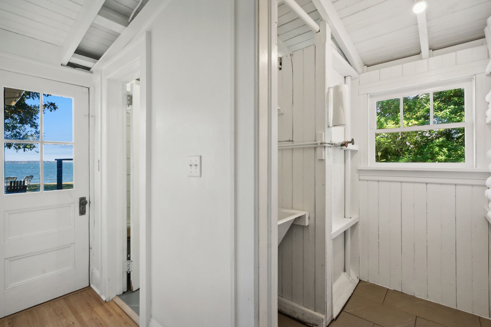 Escape to a serene summer haven where old-world charm meets modern luxury in this stunning 5-bedroom, 3-bathroom waterfront oasis. Perfectly positioned with western exposure, you'll enjoy unparalleled sunset views over the sandy shores of Peconic Bay, creating the ideal backdrop for an unforgettable summer retreat. This expansive 2,800-square-foot home blends classic elegance with contemporary comfort. The living room, complete with a cozy fir