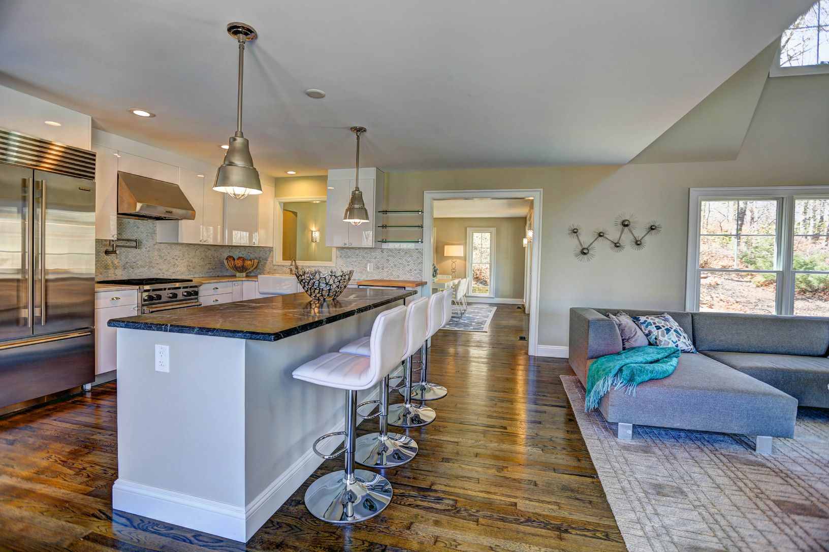 A gated private entrance leads to this uniquely appointed property. Double height Living area with fire place, open eat in kitchen, dining area with access to a secret garden, a total of 4 bedrooms and 4 full baths, dark hardwood flooring throughout, detached 2 car garage, and grounds that impress all who enter. Over 2000 Square feet of outside deck space is perfect for entertaining. Lounge by the Tortorella custom designed gunite pool with wa