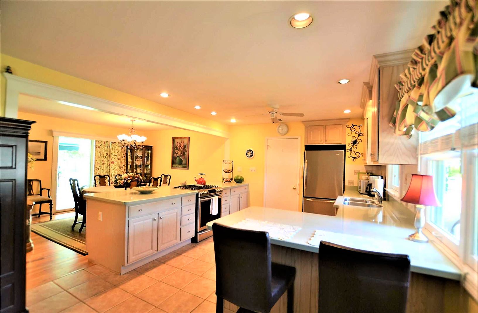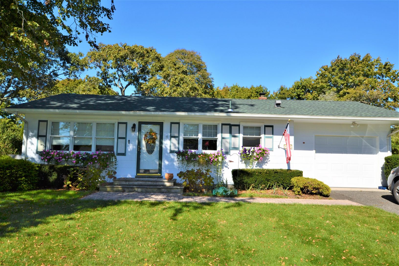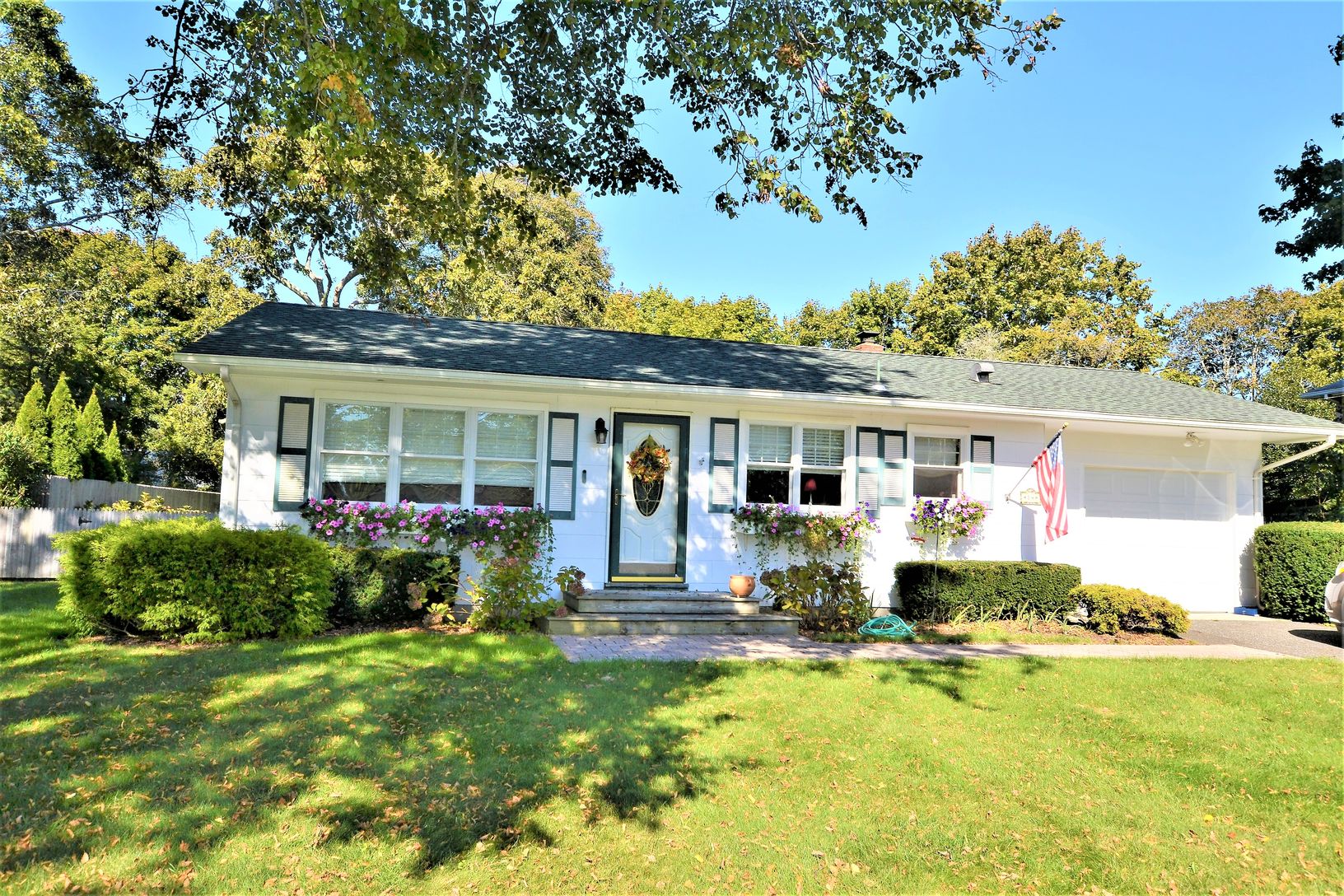 This adorable one bedroom ranch has all the feels for home away from home. Conveniently located within a 1/2 mile of town and Hampton Bays Train station. This home features a Living Room with flat screen tv and open concept to an updated Eat-In Kitchen with stainless steel appliances. Also open to the kitchen is the formal dining room with sliders to the expansive back deck with patio furniture and BBQ. Yard is nicely landscaped. Master bedroo