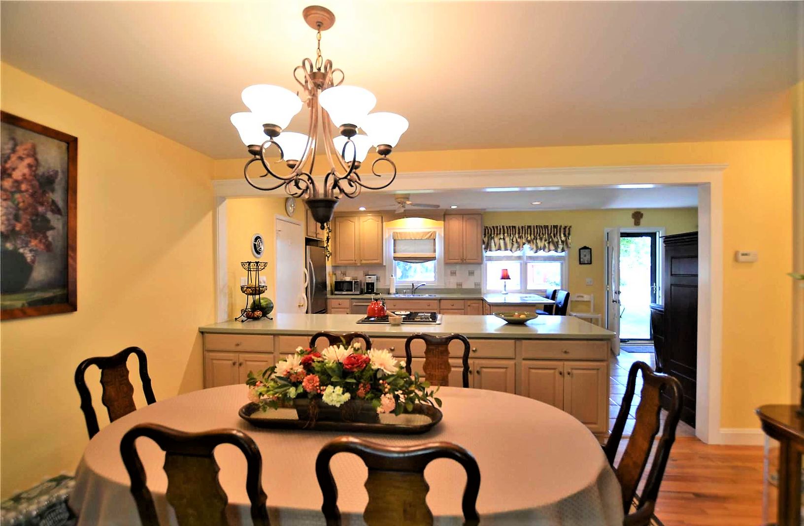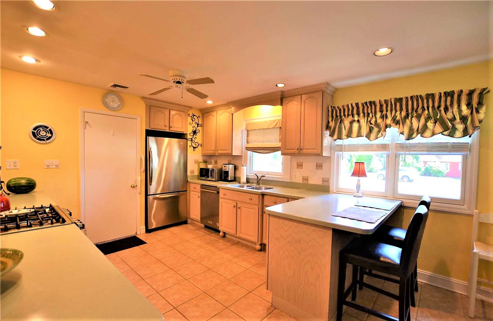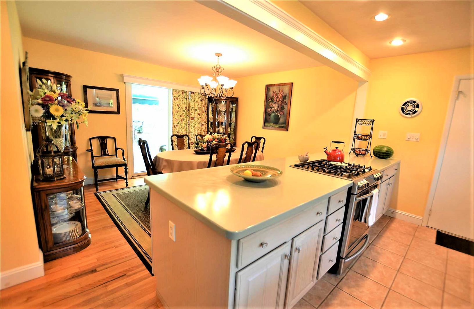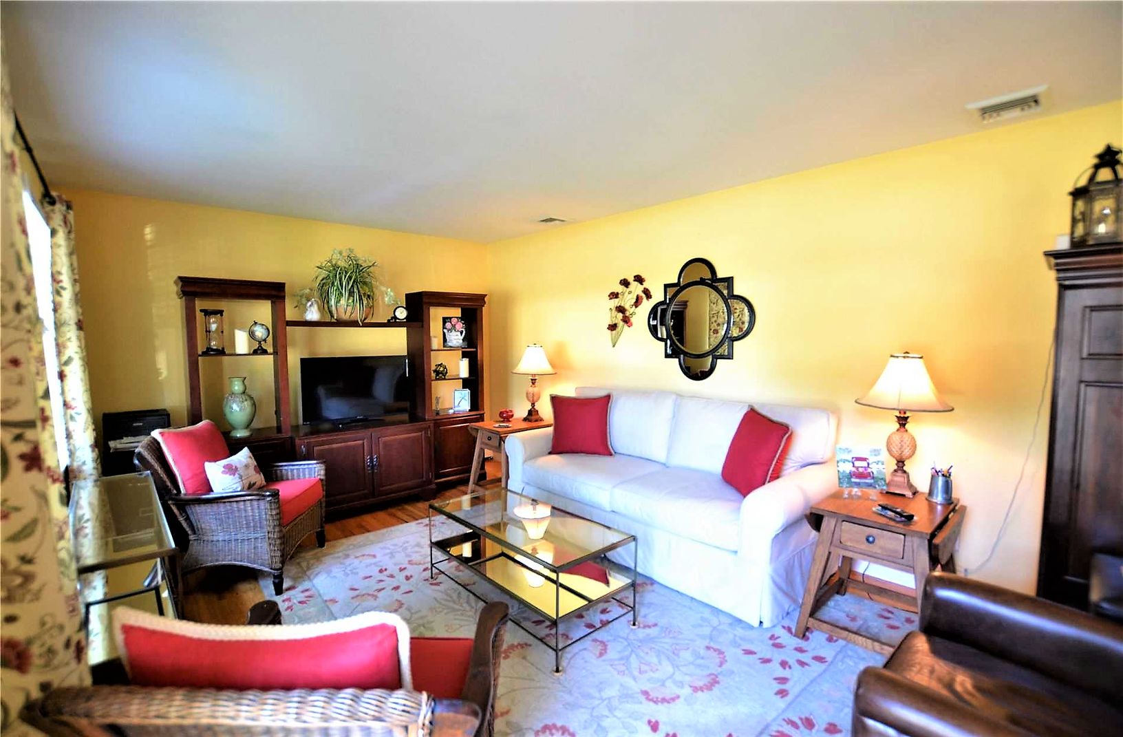 This adorable one bedroom ranch has all the feels for home away from home. Conveniently located within a 1/2 mile of town and Hampton Bays Train station. This home features a Living Room with flat screen tv and open concept to an updated Eat-In Kitchen with stainless steel appliances. Also open to the kitchen is the formal dining room with sliders to the expansive back deck with patio furniture and BBQ. Yard is nicely landscaped. Master bedroo