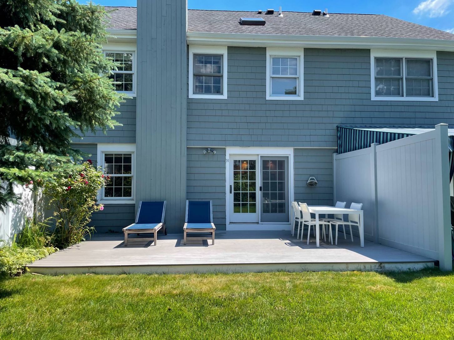 Located close to the Village and fabulous ocean beaches, this well-maintained Patio Villas condo is the perfect place to relax and enjoy Summer in the Hamptons! The first level offers open living area, dining area, half bath and fully equipped kitchen. French doors lead to an outside deck with new dining table, lounge chairs and BBQ grill. On the second floor, there are 2 bedrooms with 2 full bathrooms. Additional amenities include central air