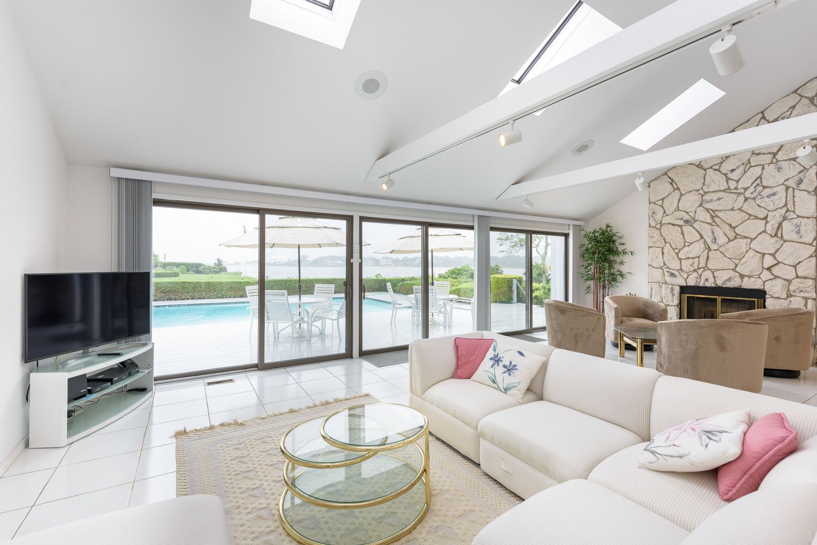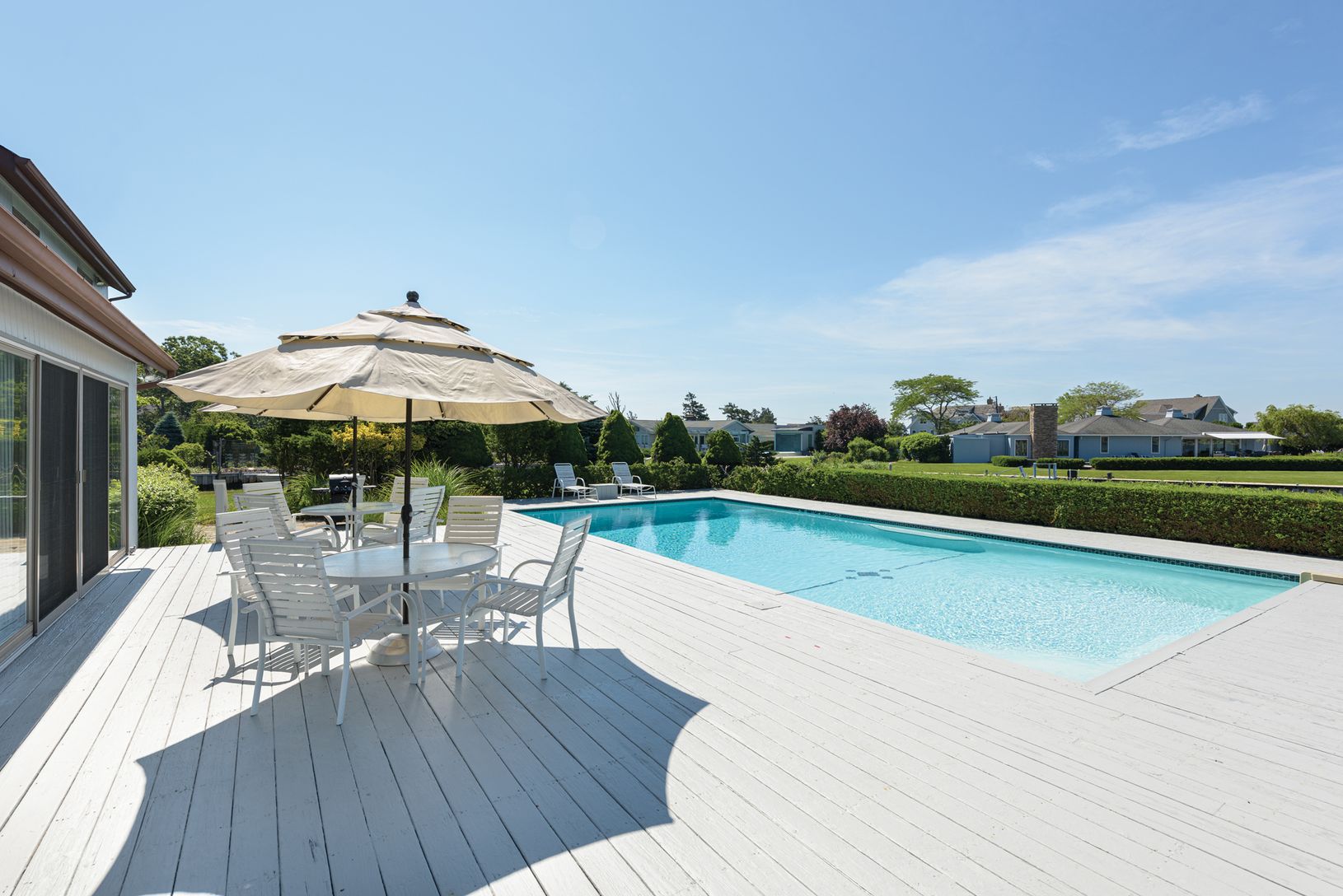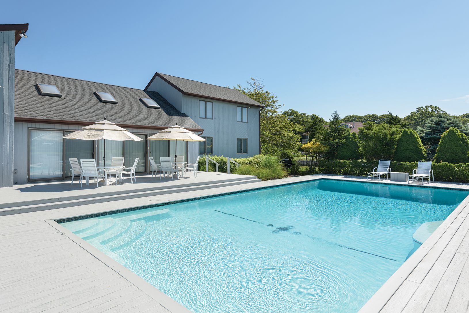 Waterfront Contemporary 3-4 bedroom home in Old Harbor Colony. Swim in the pool and watch the boats go by! Community beach.