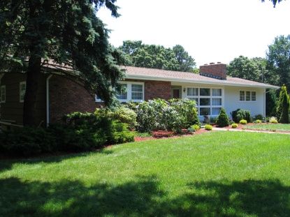 Immaculate Shinnecock Hills Ranch on spacious .7 acre lot, features 3 bedrooms, 1 bath and living areas with open floor plan. Living room is open to formal dining area with vaulted ceiling and newly refinished oak floors. Unique rough cut granite fireplace adds warmth and ambience. Huge den has fireplace and indoor grill for grilling year round, great view of wooded backyard, plenty of room for entertaining and relaxing. Eat in kitchen, with c