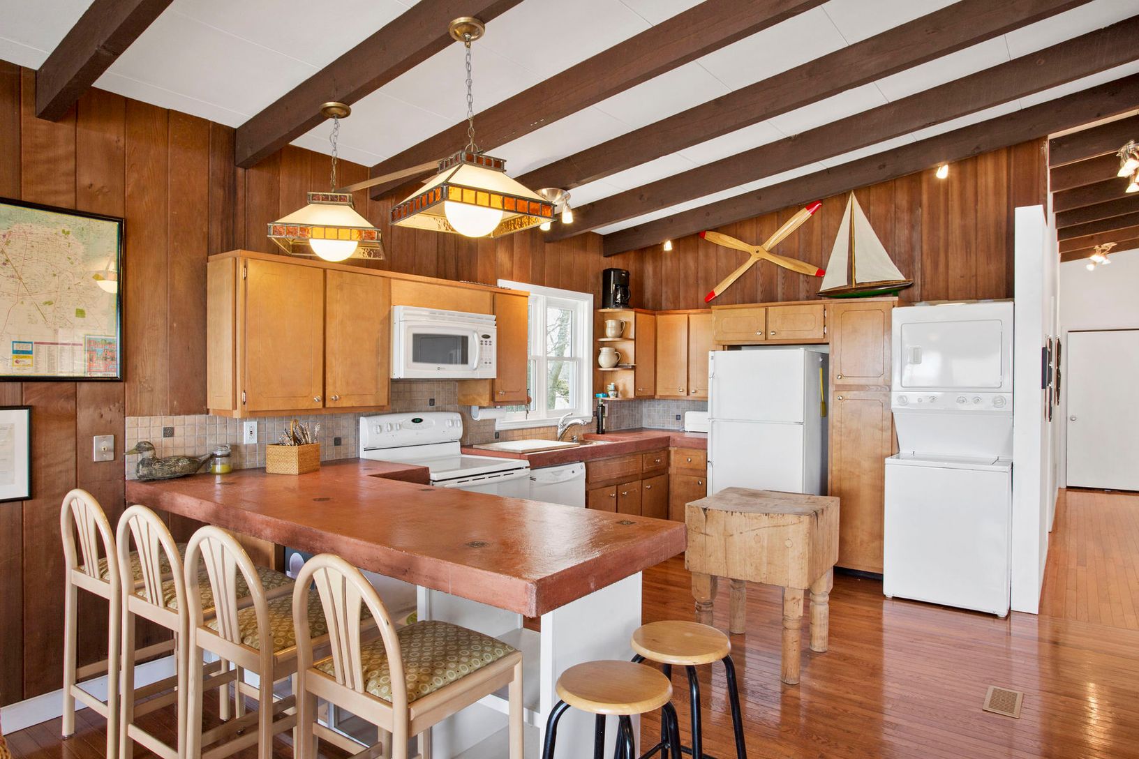 Discover the "UNIQUE HAMPTONS" in Red Cedar Point Association a Beach cottage on a private .76 acre with 117 feet of sandy white beach at the base of the bluff over looking the Great Peconic Bay. On one side there is a pond with town dock and wonderful for paddle boarding, in front of the house fabulous sunsets and bay breezes. The house has a wonderful relaxing vibe so come put your feet up in front of the big wood burning fireplace in the ce