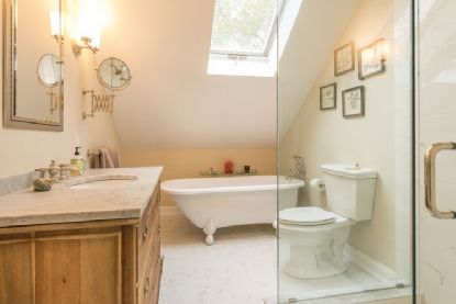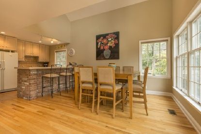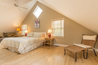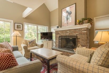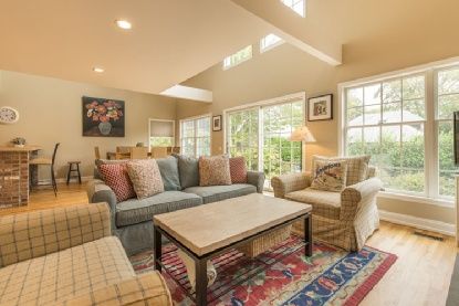 Located on one of the most coveted streets in East Hampton Village, this stately 2,150+/- sq. ft. postmodern-style home was built by Larry Kane in 1996. The layout lends itself nicely to modern day with its open living, dining and kitchen space, high vaulted ceilings, large light-filled windows, wood-burning fireplace and French glass doors leading out the lush rear yard. Two guest bedrooms and a full bath, as well as an ample entryway, comple