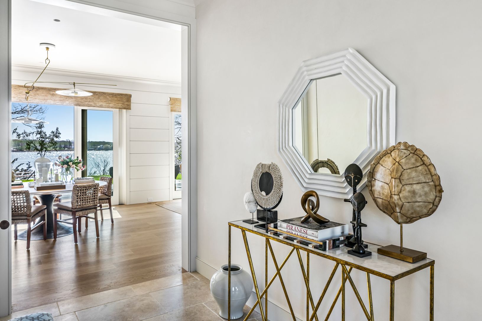 Completed in 2024, this breathtaking waterfront home is set on 0.65 acres+/- and features 5,300+/- square feet of living space across three levels in the heart of Sag Harbor Village. This designer home offers an unparalleled living experience, boasting 5 bedrooms, 5 full and 1 half bathrooms, a heated gunite pool, a gym, a dock, and 145' of frontage. Masterfully curated with top-of-the-line materials and finishes, the interior is marked by its