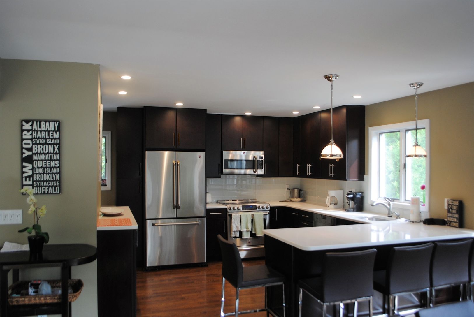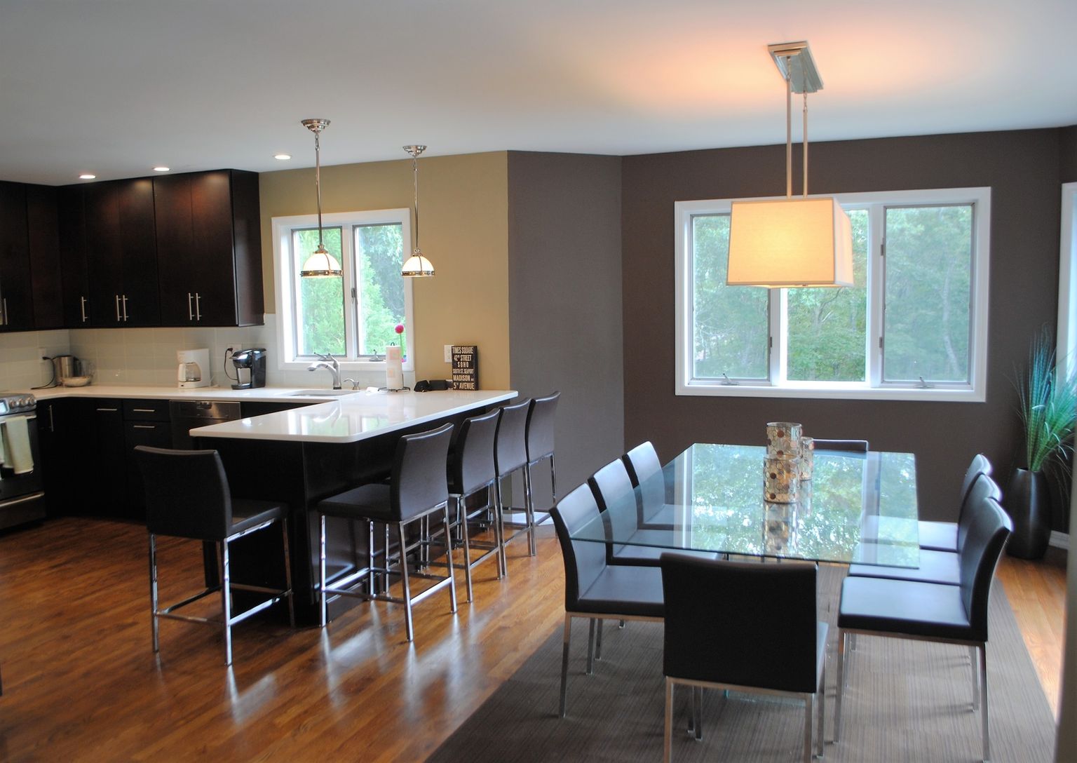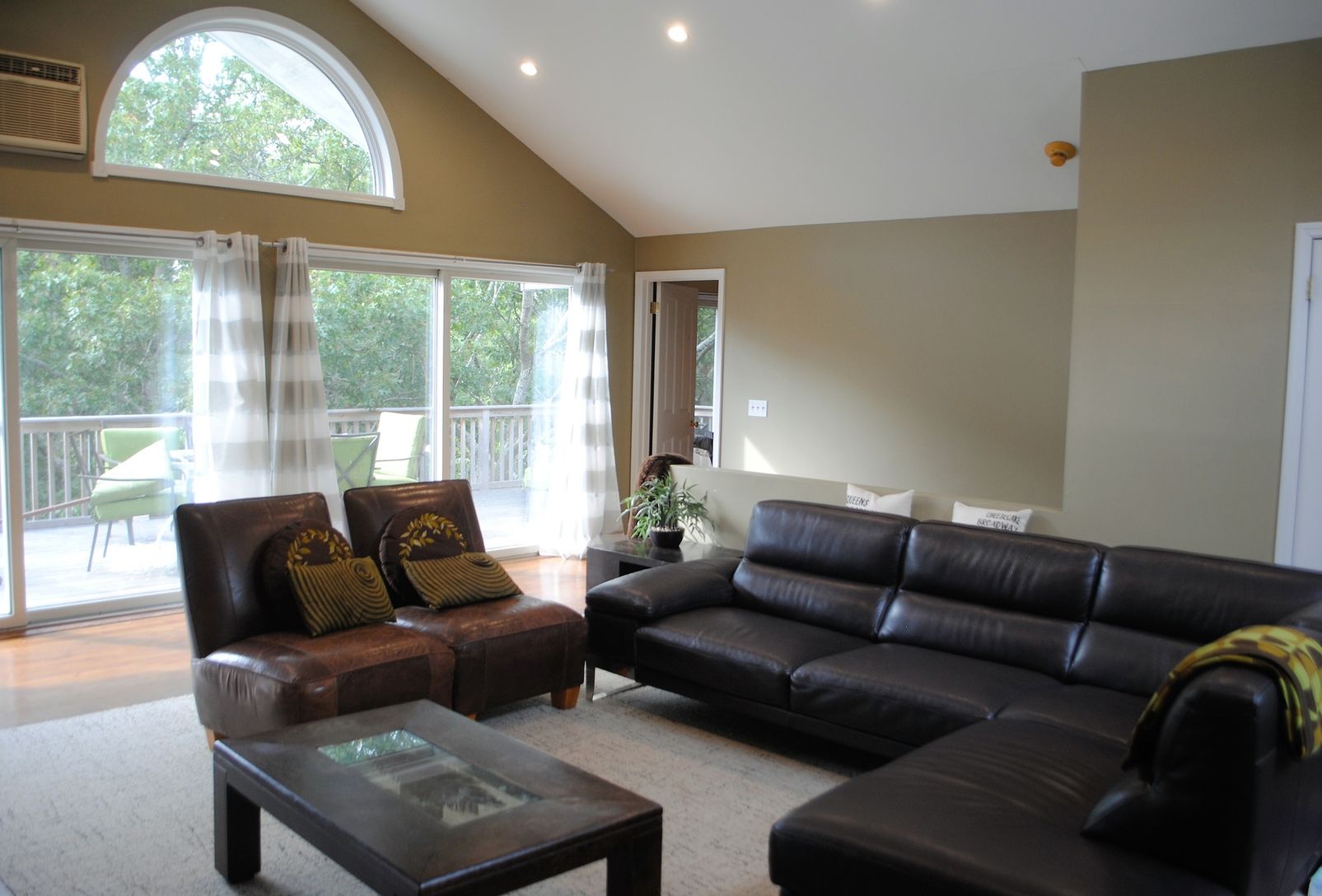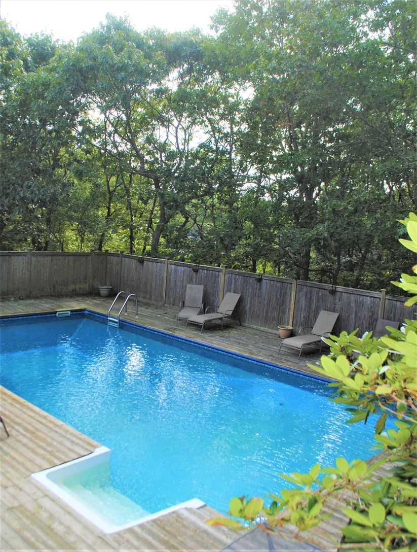 This private contemporary home is situated on a cul-de-sac and offers four bedrooms along with 2.5 renovated bathrooms. A living room with fireplace, spacious dining room and updated kitchen can all be found on the main living floor with open floor-plan. A back deck opens to the private pool area with heated swimming pool and plenty of space for entertaining. Conveniently located minutes to Water Mill and Sag Harbor village and beautiful beach