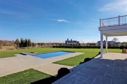 Brilliant natural light augments spectacular views of more than 70 acres of preserved land. The property itself is 1.25+/- acres, with a pool, pool house and permit for a tennis court. The eight-bedroom house, designed with both comfort and aesthetics in mind, is an impressive example of modern construction: its remarkable features include high ceilings, detailed architectural millwork, large ensuite bedrooms, an open kitchen and an attached t