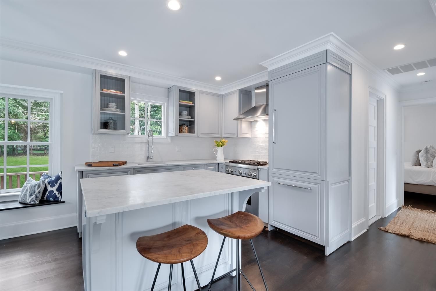 New to the market! This charming, updated Cape is situated on half of an acre in a peaceful neighborhood just minutes to the villages and beaches. Offering 4 bedrooms, 4 bathrooms, a heated pool, detached 2 car garage, and a finished lower level with separate entrance. Renovated in 2018, this immaculate sun-filled home features a bright, open floor plan with hardwood flooring throughout. The living room has a brick fireplace and is joined with