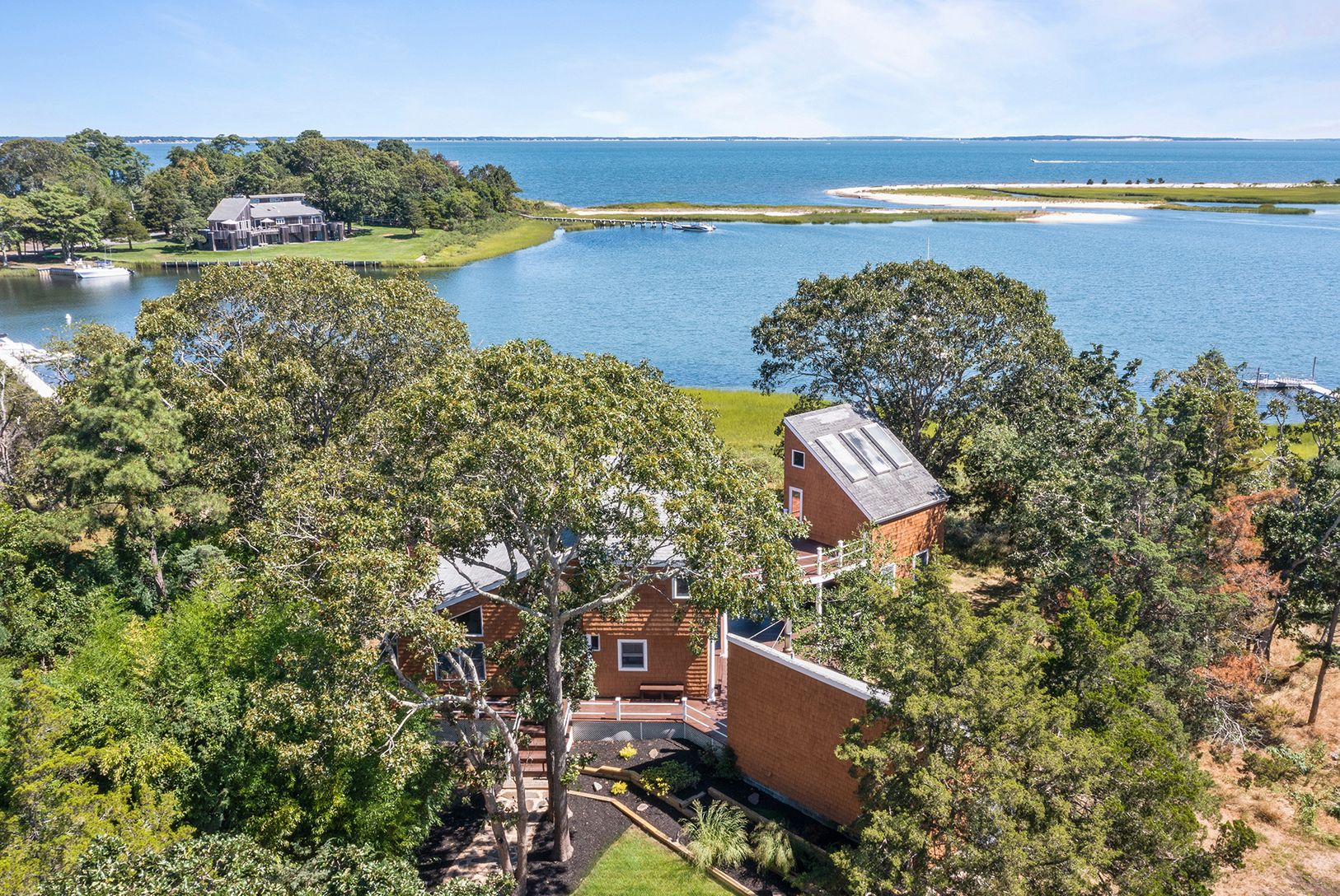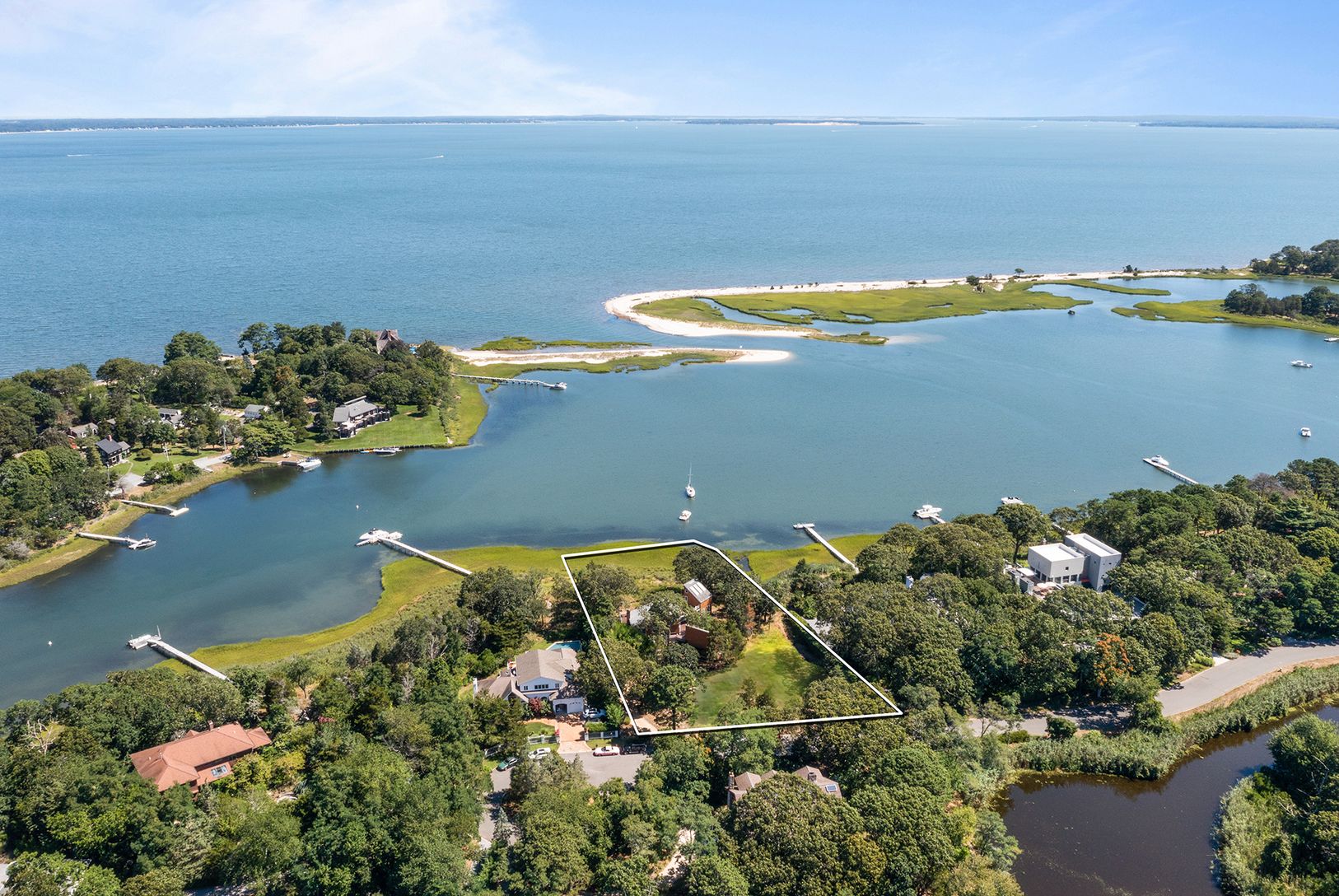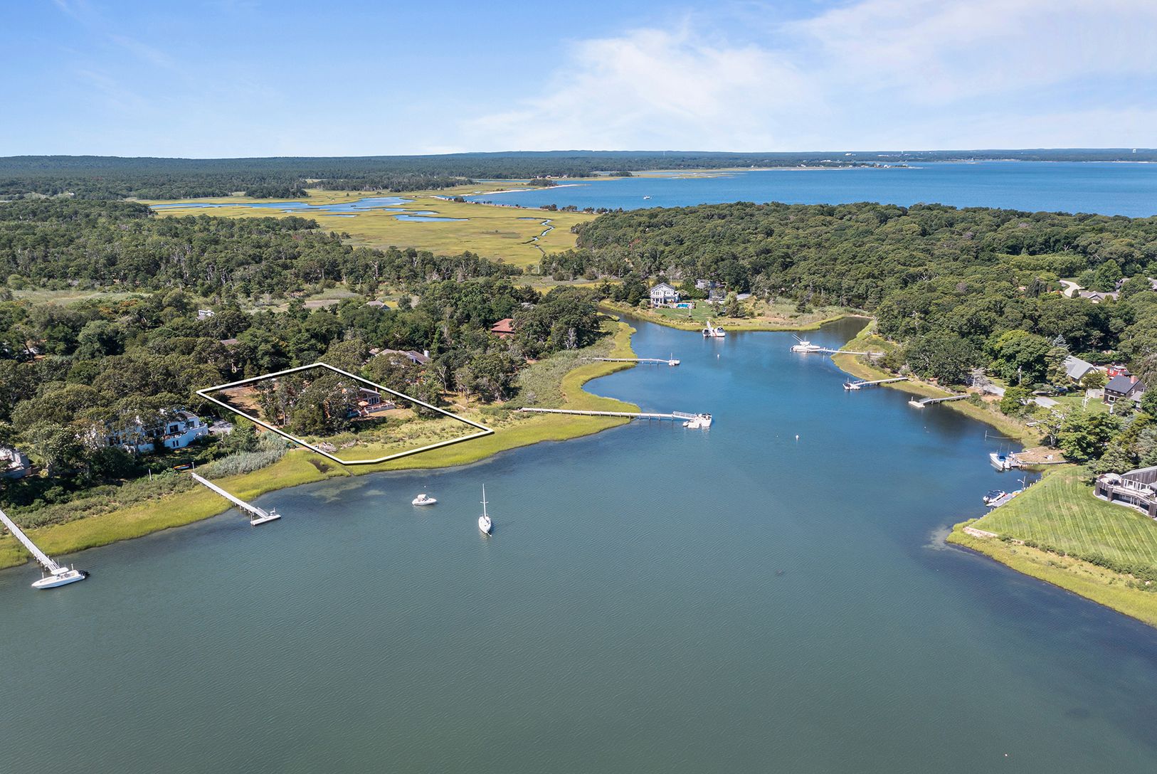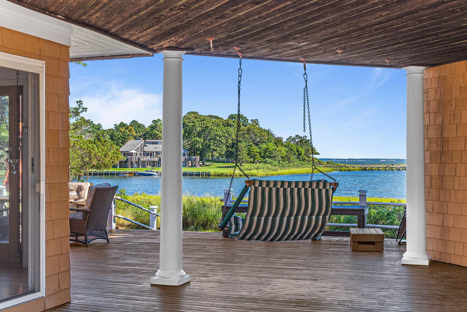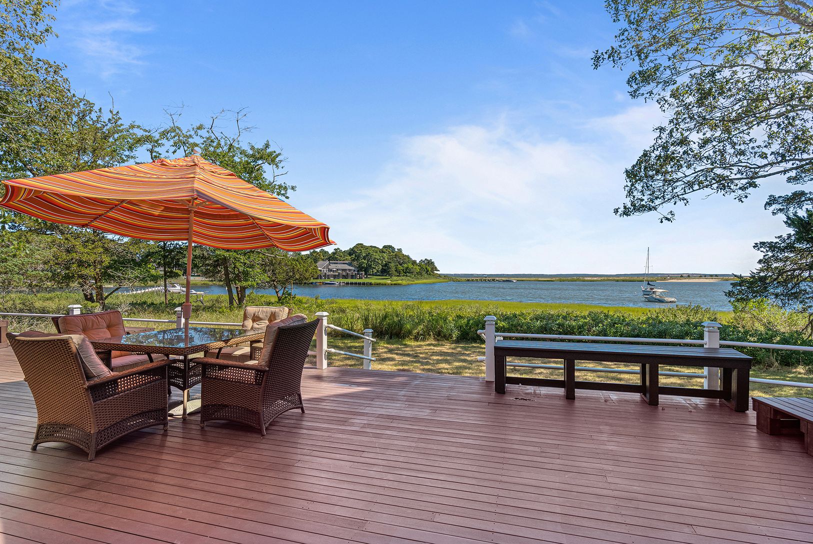 14 Duckwood Lane, a Hamptons waterfront paradise with 130+/-' of water frontage on Red Creek Pond with access to Great Peconic Bay. A truly picturesque property featuring a 1980's contemporary on a spacious 1.03+/- acre. The home was designed to take full advantage of the panoramic water views. The interior features 2,269+/- square feet of light-filled space, three bedrooms, two full and one-half bathrooms. Custom, oversized windows, and walls