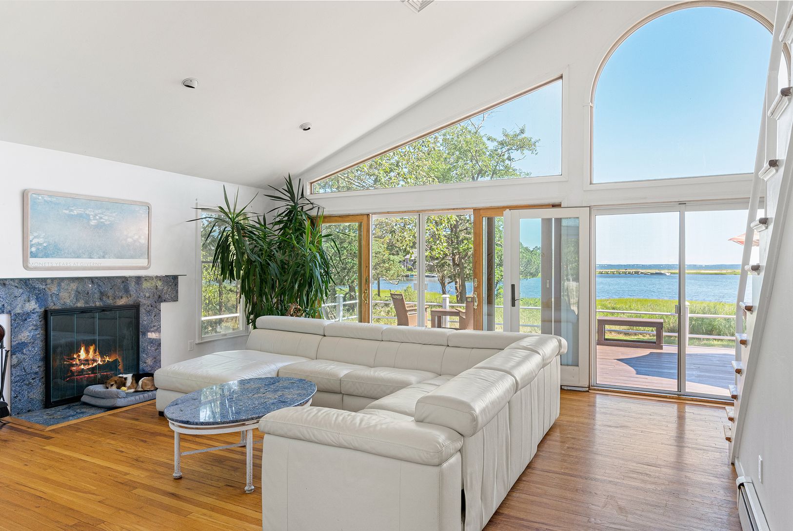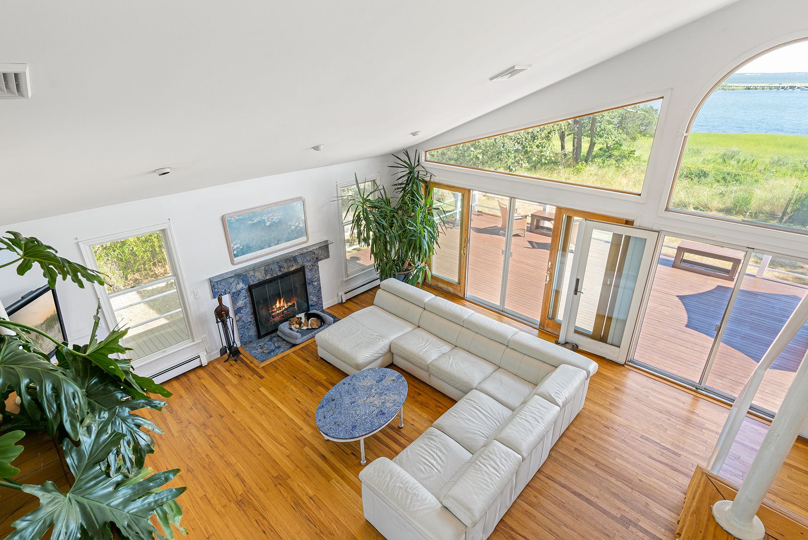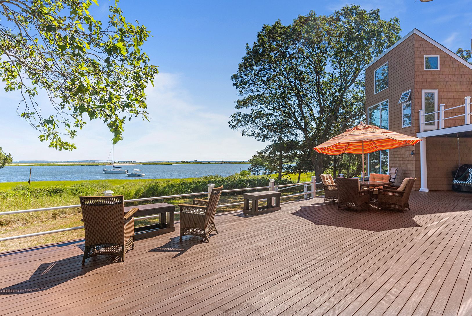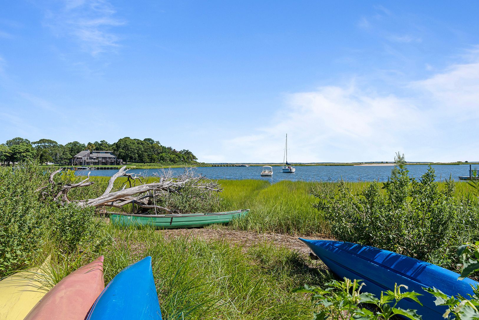 14 Duckwood Lane, a Hamptons waterfront paradise with 130+/-' of water frontage on Red Creek Pond with access to Great Peconic Bay. A truly picturesque property featuring a 1980's contemporary on a spacious 1.03+/- acre. The home was designed to take full advantage of the panoramic water views. The interior features 2,269+/- square feet of light-filled space, three bedrooms, two full and one-half bathrooms. Custom, oversized windows, and walls