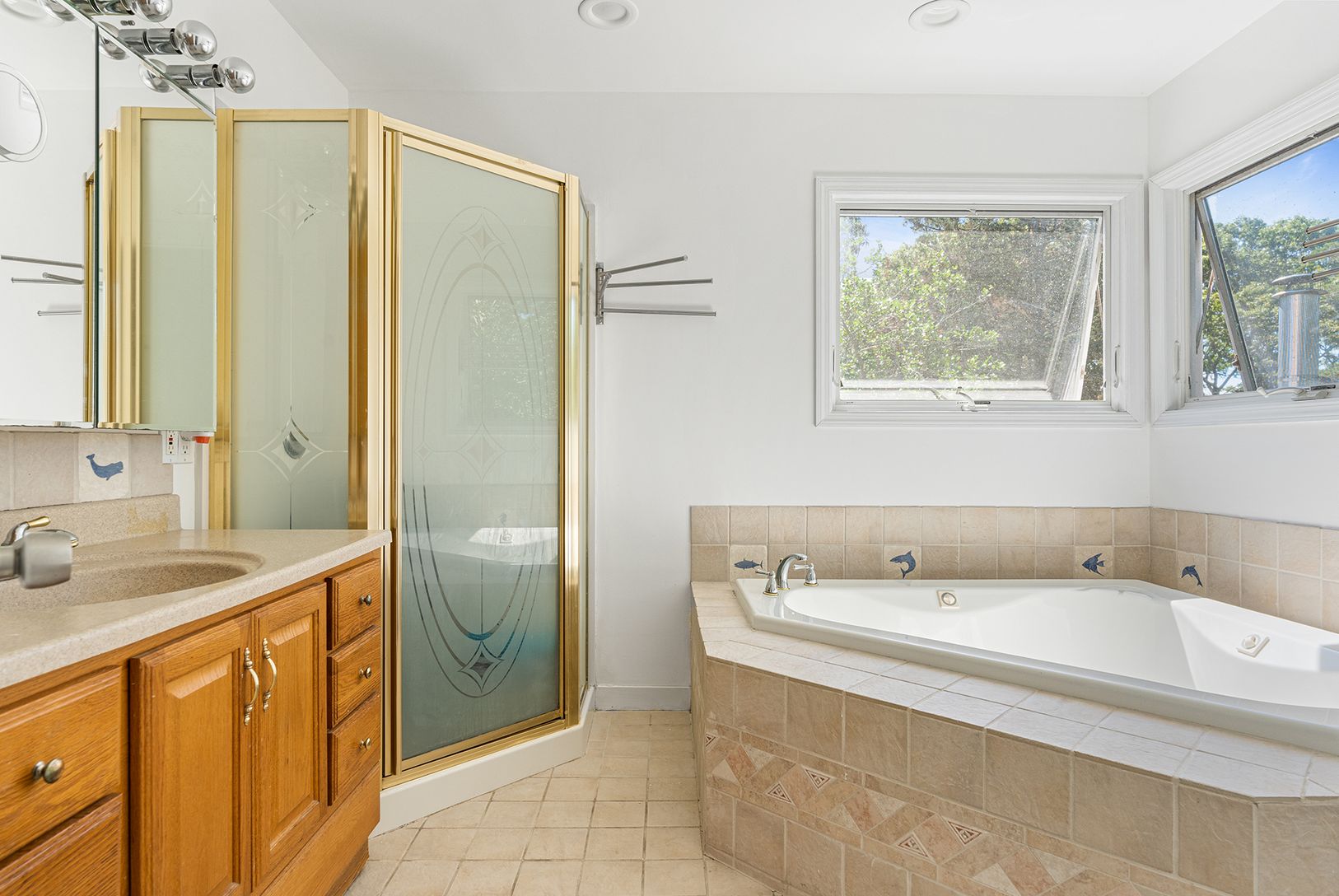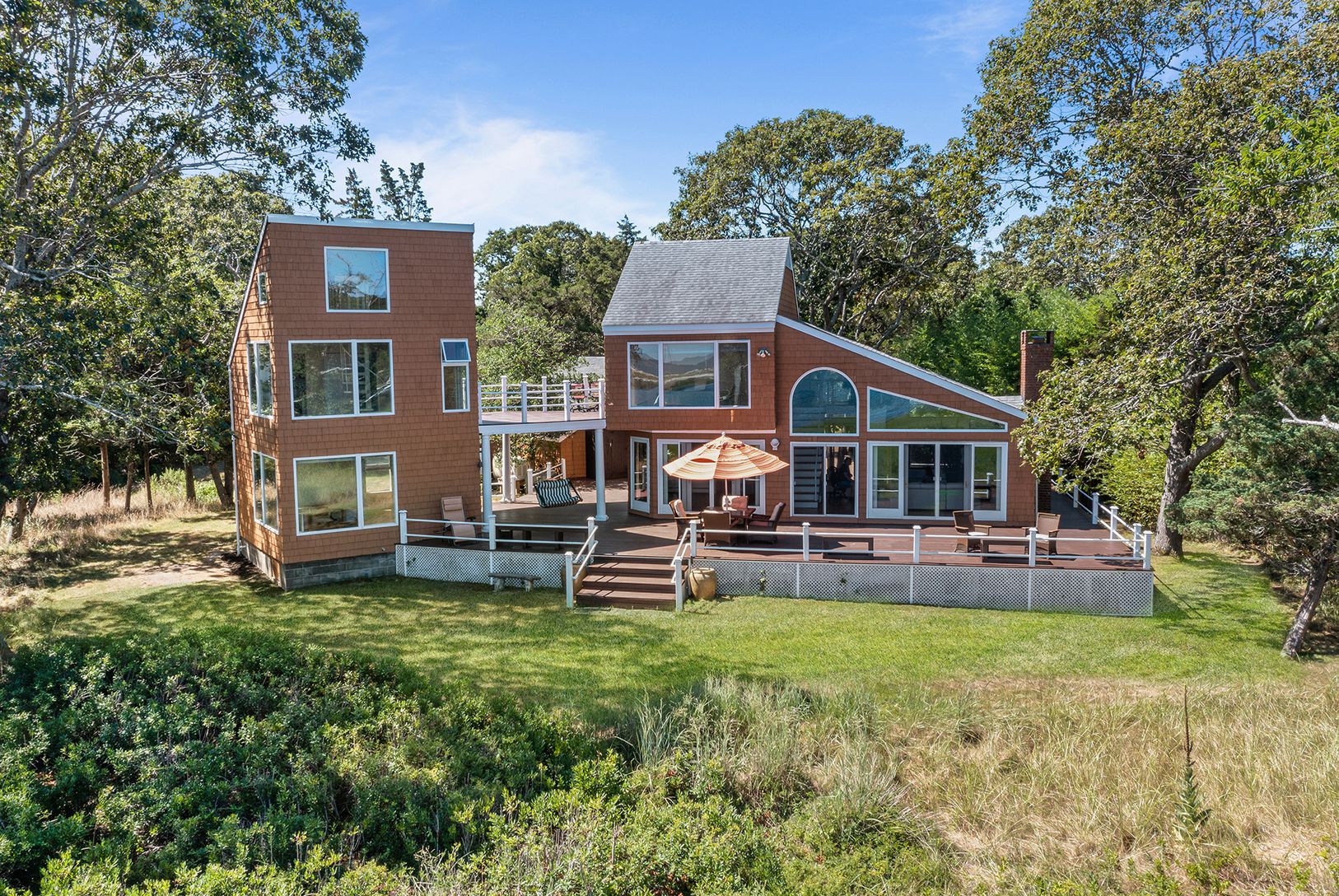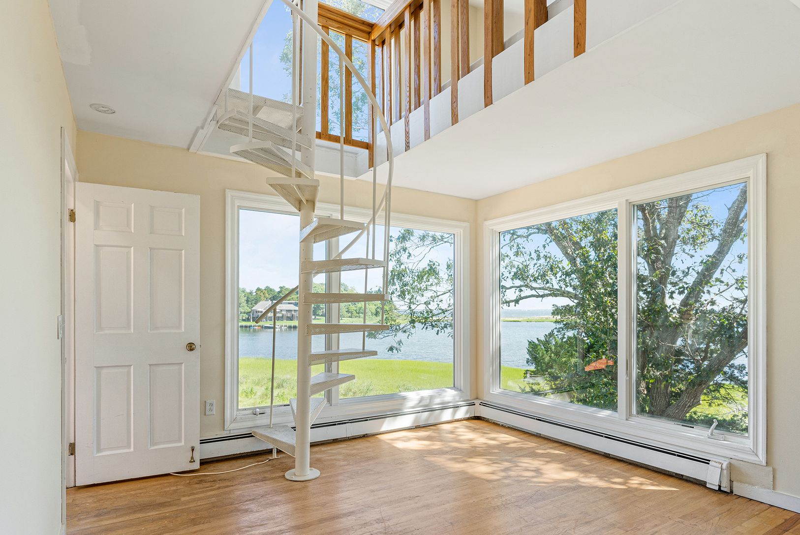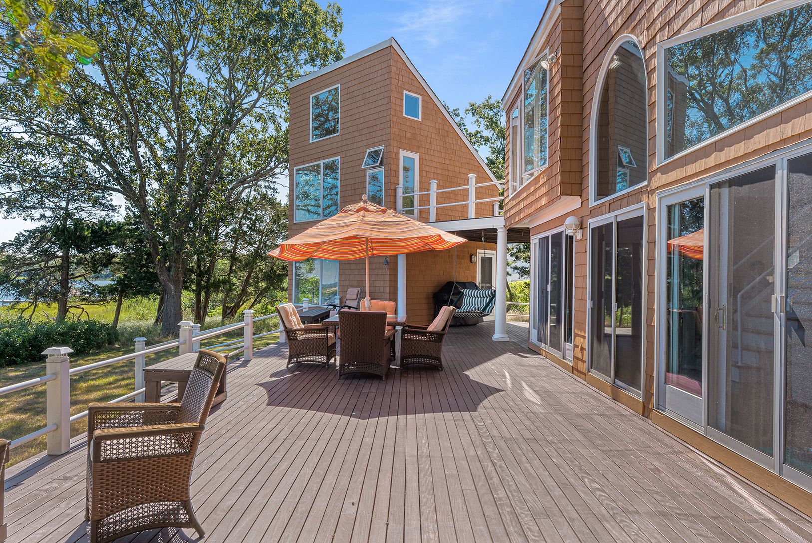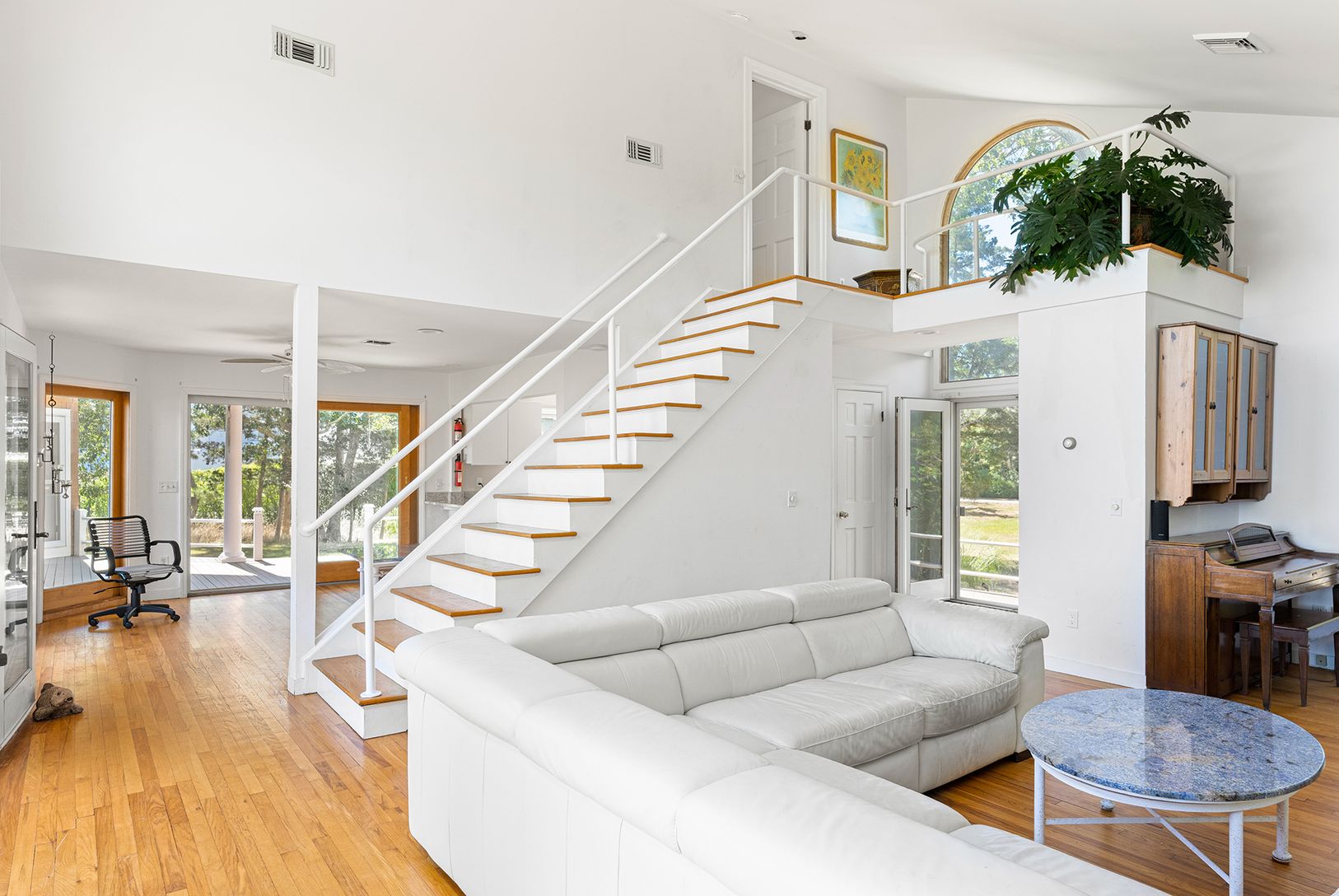 14 Duckwood Lane, a Hamptons waterfront paradise with 130+/-' of water frontage on Red Creek Pond with access to Great Peconic Bay. A truly picturesque property featuring a 1980's contemporary on a spacious 1.03+/- acre. The home was designed to take full advantage of the panoramic water views. The interior features 2,269+/- square feet of light-filled space, three bedrooms, two full and one-half bathrooms. Custom, oversized windows, and walls