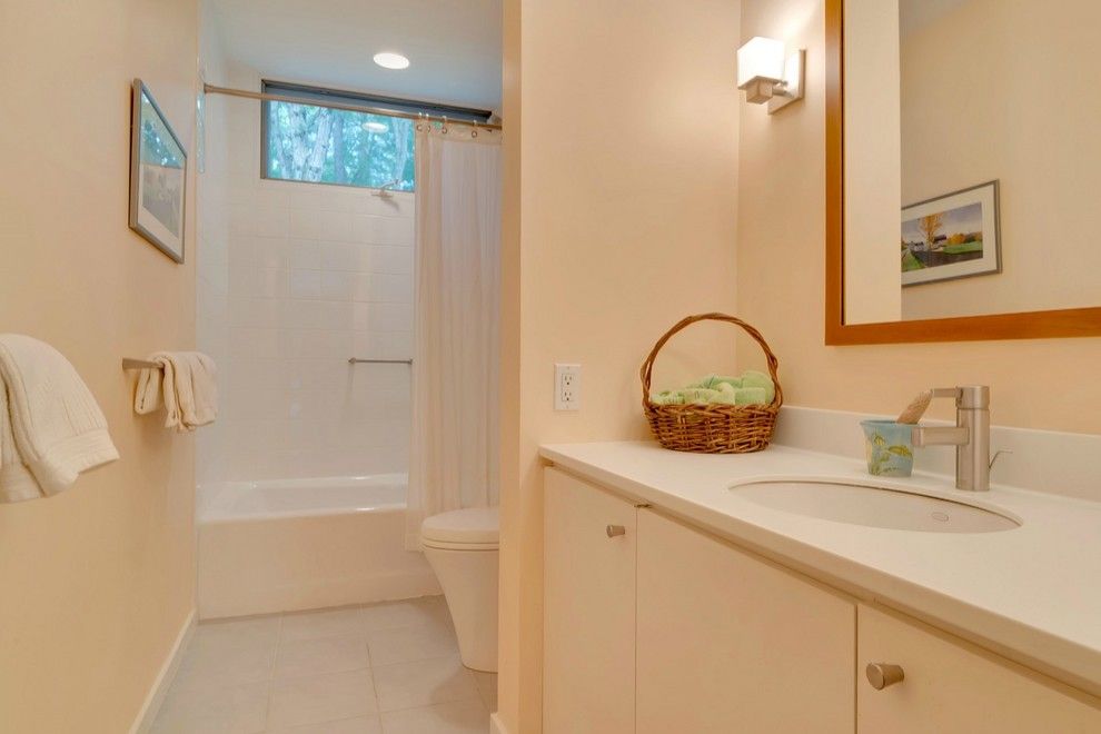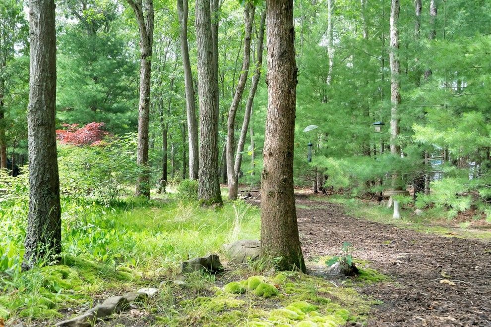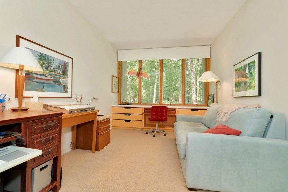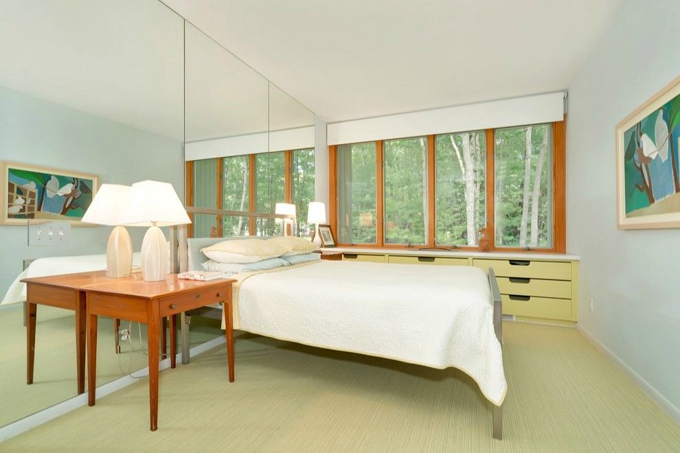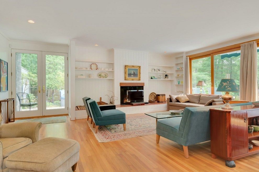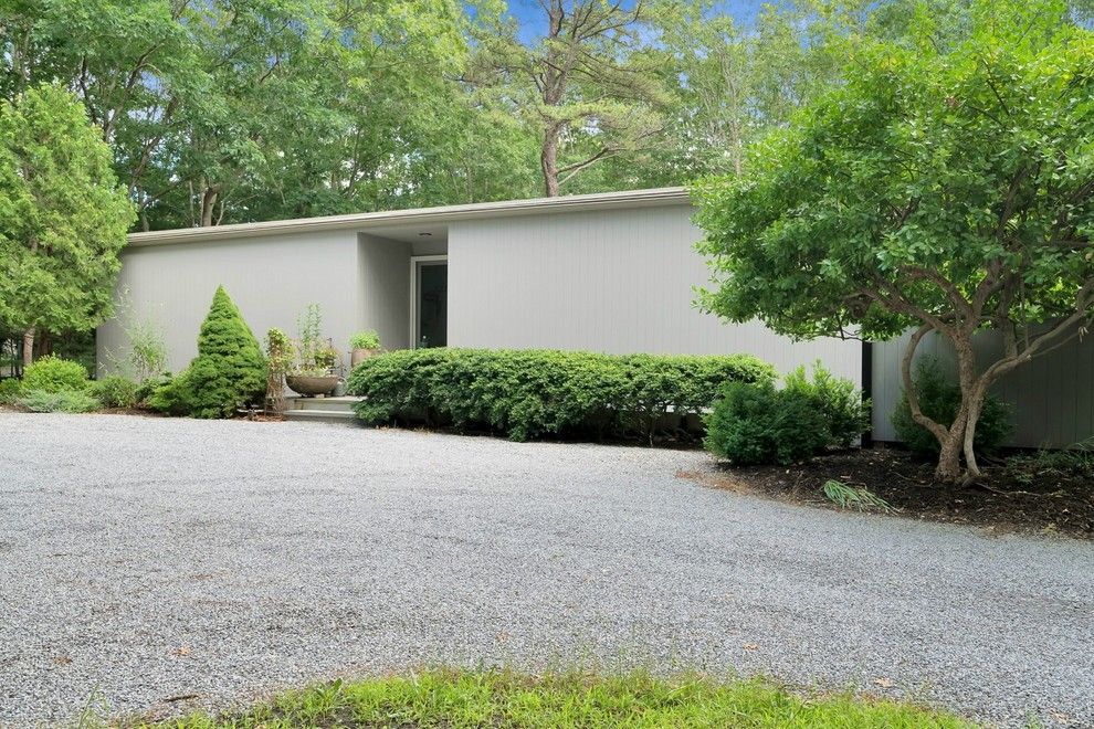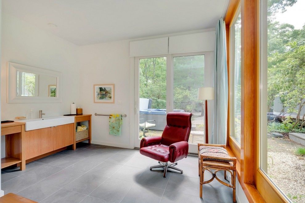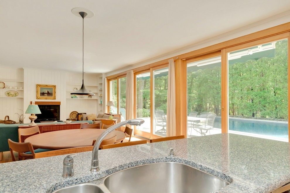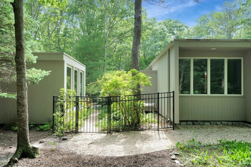 Tranquility is the signature quality of this 3-bedroom, 2-bath, 1-story contemporary home on a quiet tree-lined street. Walls of glass throughout the house and pool house highlight the surrounding gardens and meandering woodland paths. Nature enthusiasts will delight in the 20' x 40' Gunite pool, hot tub and outdoor shower. The great room's kitchen, dining and living areas extend onto a wide deck equipped with a retractable awning and pool fen