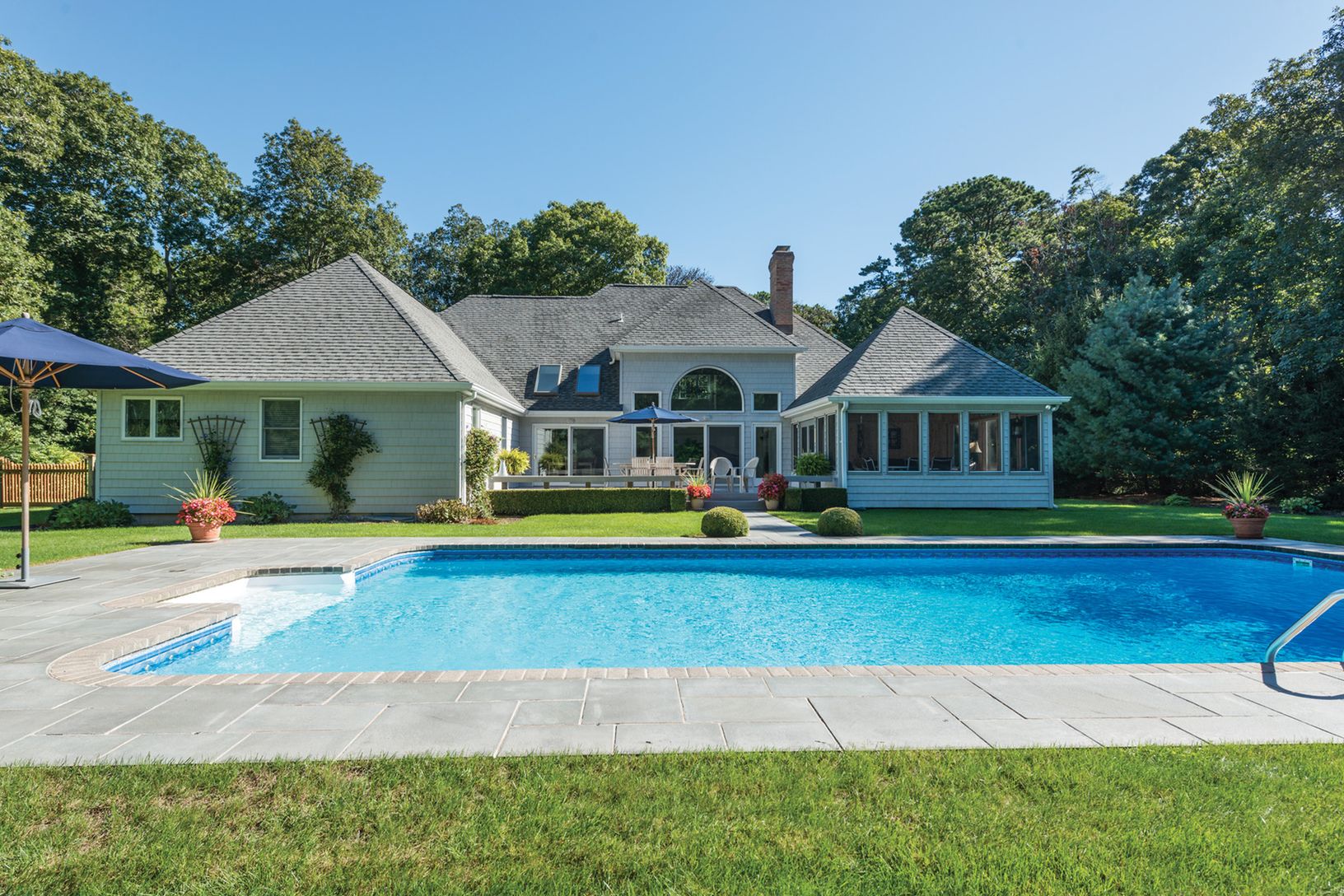 Newly listed custom built traditional on a 1.5+/- acre manicured parcel! The light-filled double height living room is the heart of the open floor plan with a gourmet kitchen, formal dining room, true first floor master bedroom, three additional bedrooms, two full baths, two-car garage and oversized screened three season room overlooking the 20' X 40' pool.The basement is ready to be finished to your specifications. Less than two miles to the