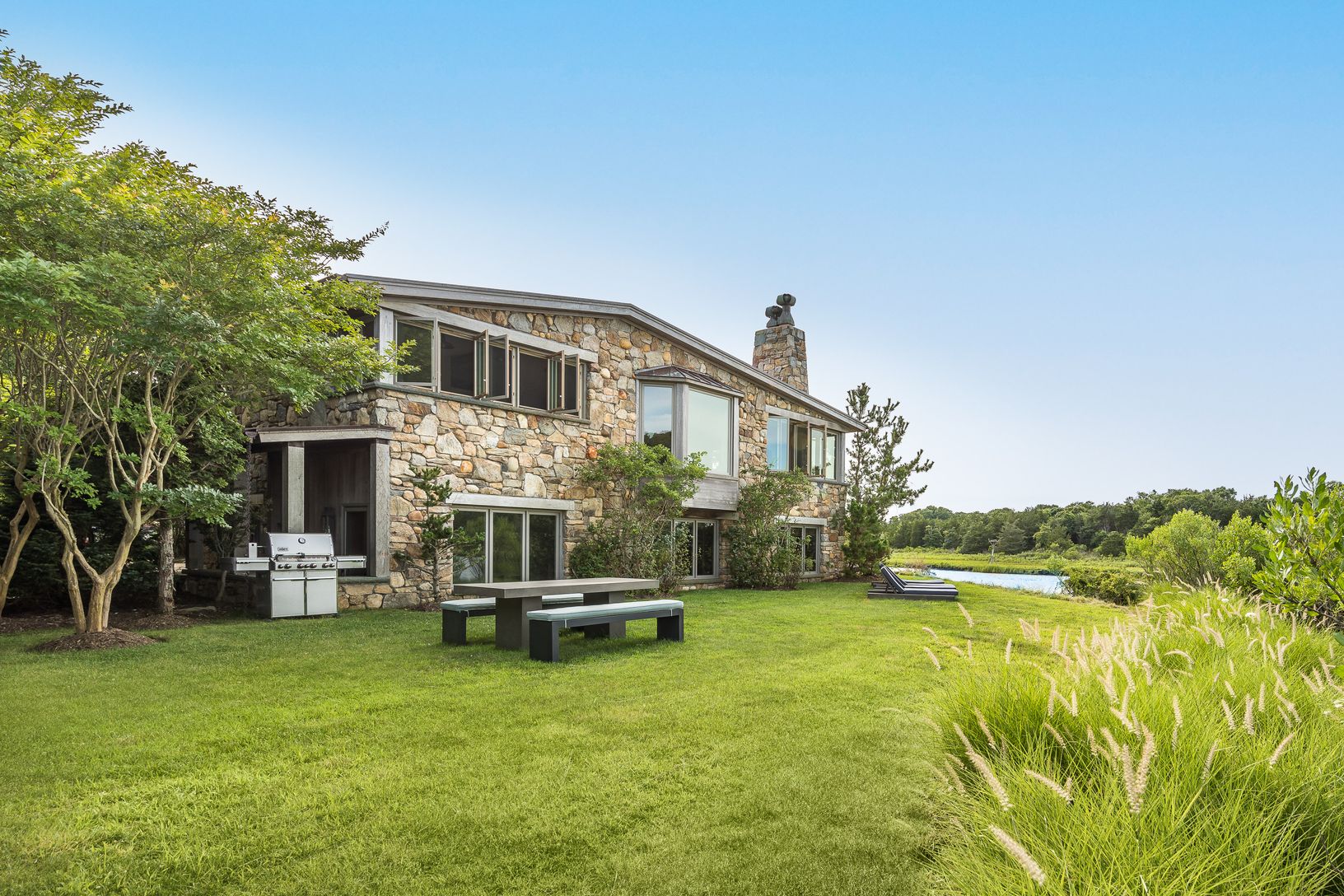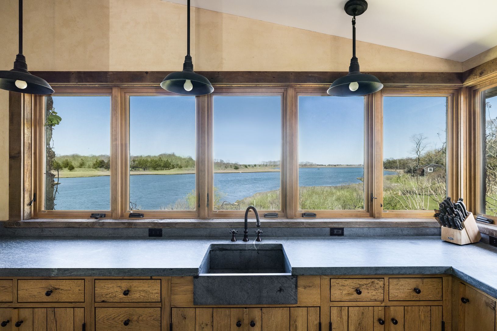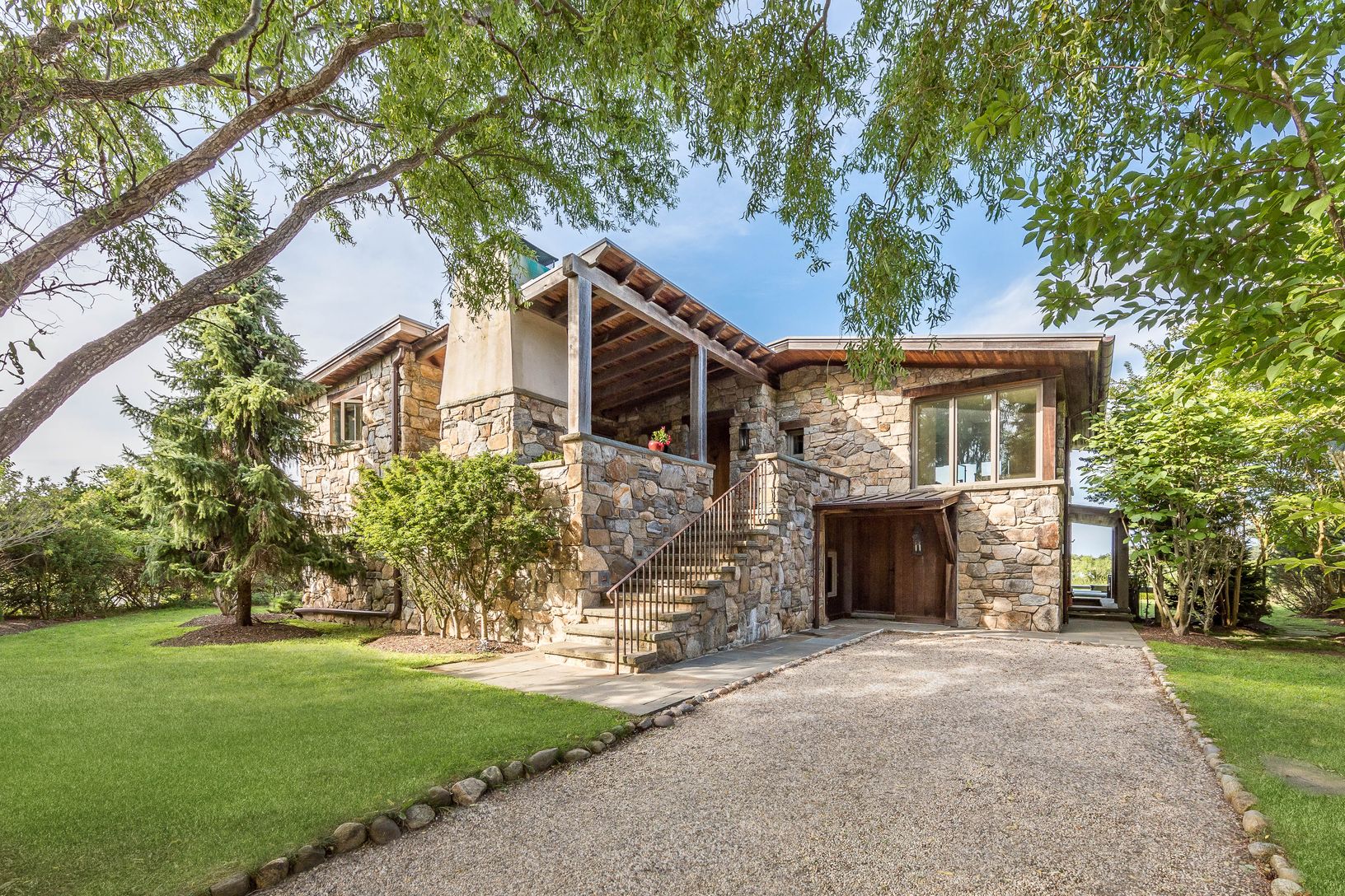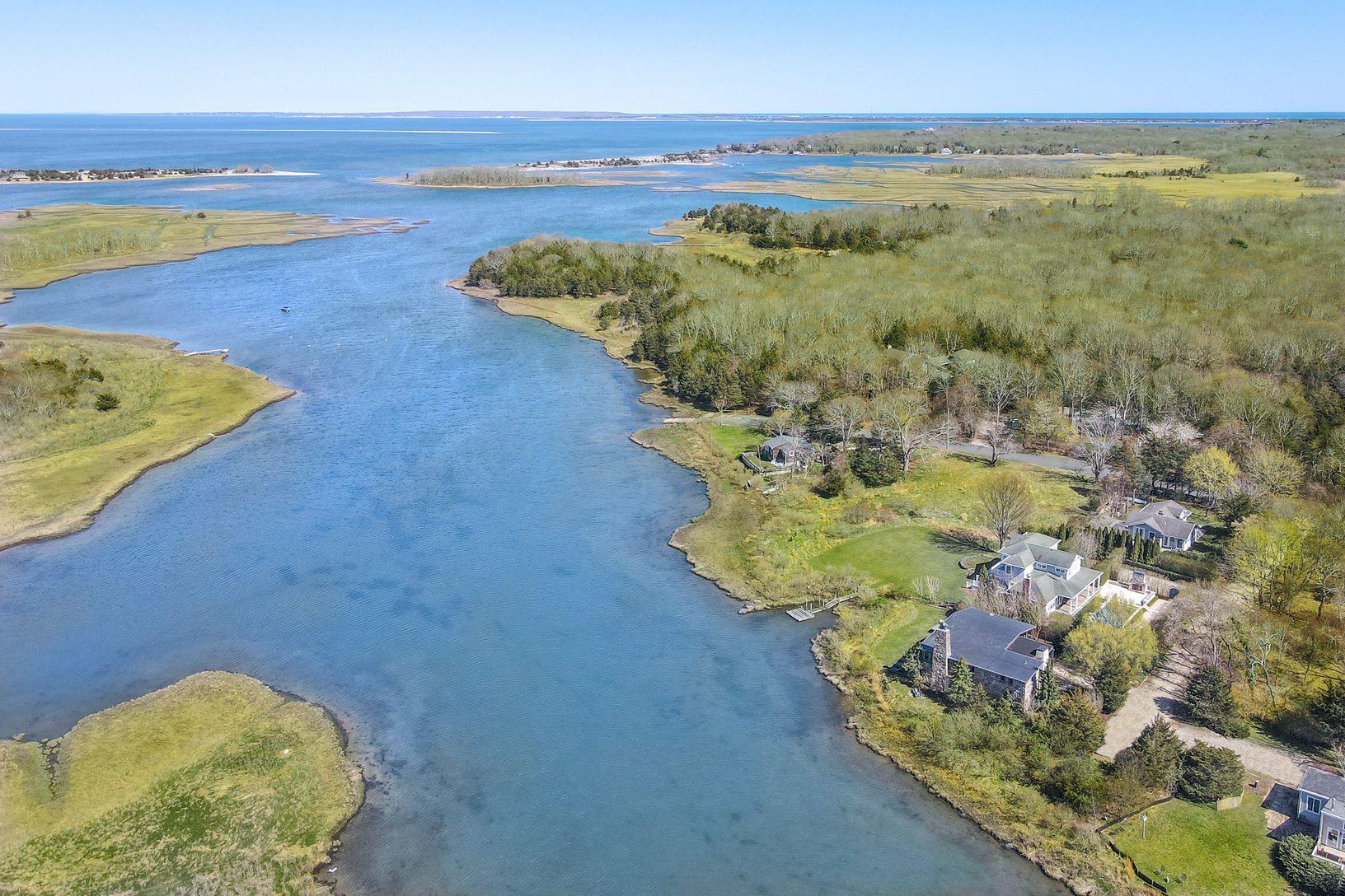 Tucked away down a secluded street in the Historic District of Springs this extraordinary waterfront home was designed to showcase magnificent views of Accabonac Harbor, the pristine lands of Merrill Lake Sanctuary, Gerard Drive, Gardiner Bay and Louse Point. There is over 200 ft of water frontage on 2 sides of the house and every room of the house has a magnificent water view. This elegant rustic home was constructed with custom cabinetry and