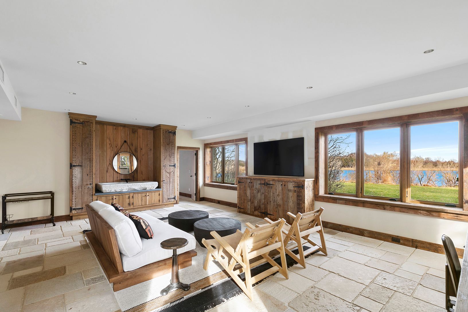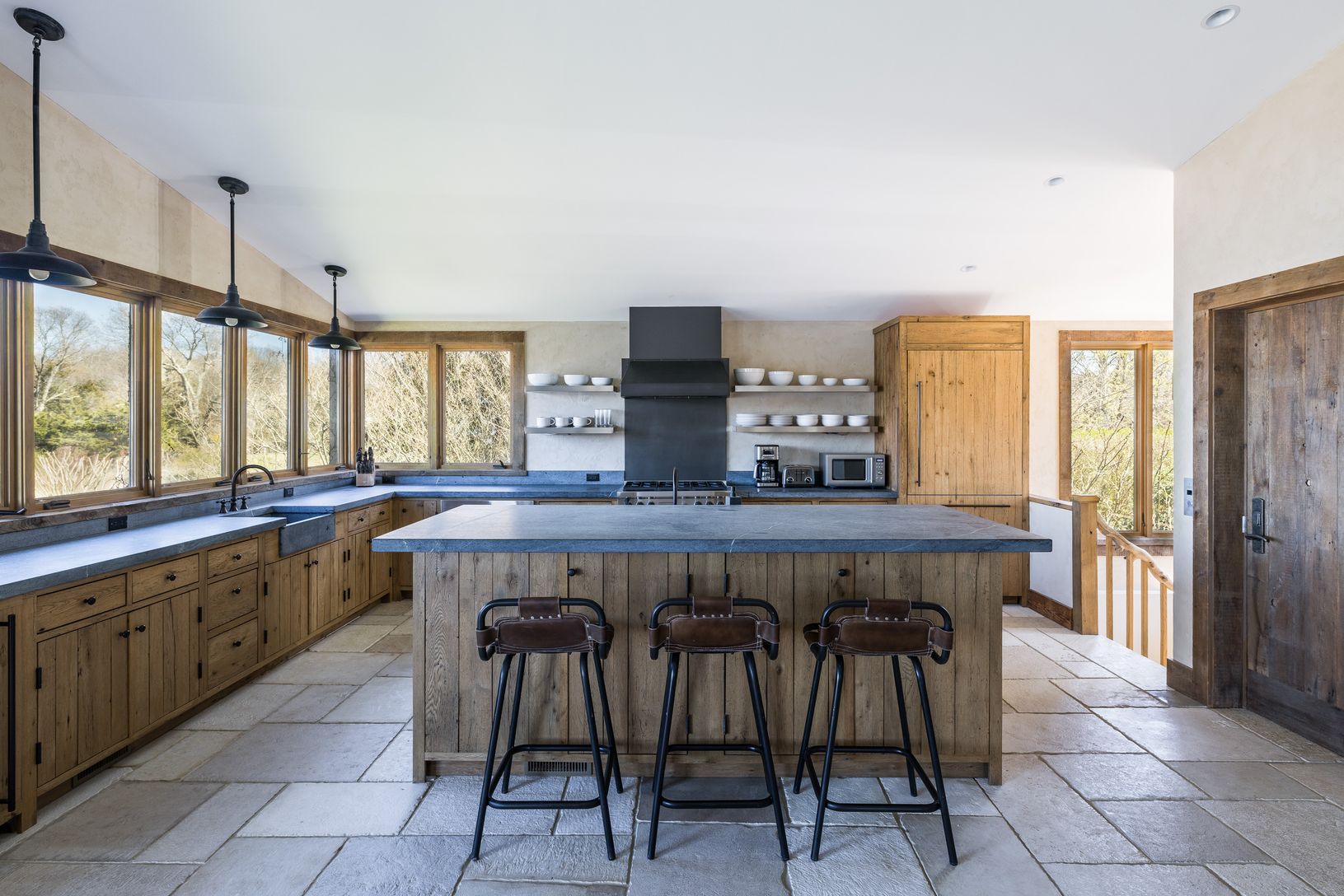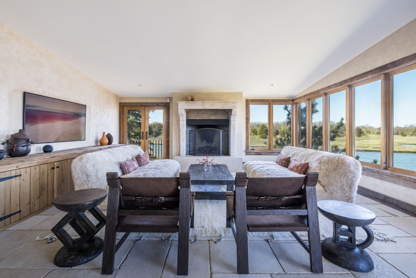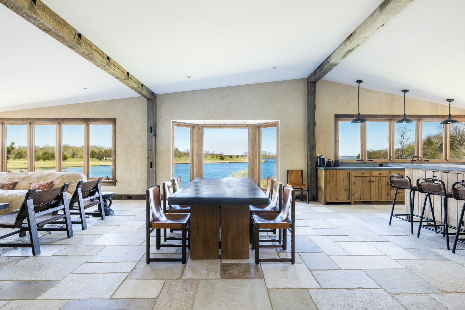 Tucked away down a secluded street in the Historic District of Springs this extraordinary waterfront home was designed to showcase magnificent views of Accabonac Harbor, the pristine lands of Merrill Lake Sanctuary, Gerard Drive, Gardiner Bay and Louse Point. There is over 200 ft of water frontage on 2 sides of the house and every room of the house has a magnificent water view. This elegant rustic home was constructed with custom cabinetry and