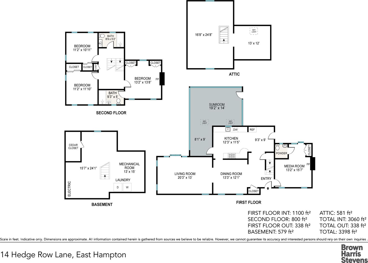 This Shingled Traditional home is in close proximity to East Hampton Village. There are three bedrooms, two and one half bathrooms, a large open living room, dining room, additional den/media room, three gas fireplaces, and a very spacious all season sun room, overlooking the Heated 20'x45' Gunite Pool. There is also a large attic area, and a detached two car garage all on a lushly landscaped .89 =/- of an acre.