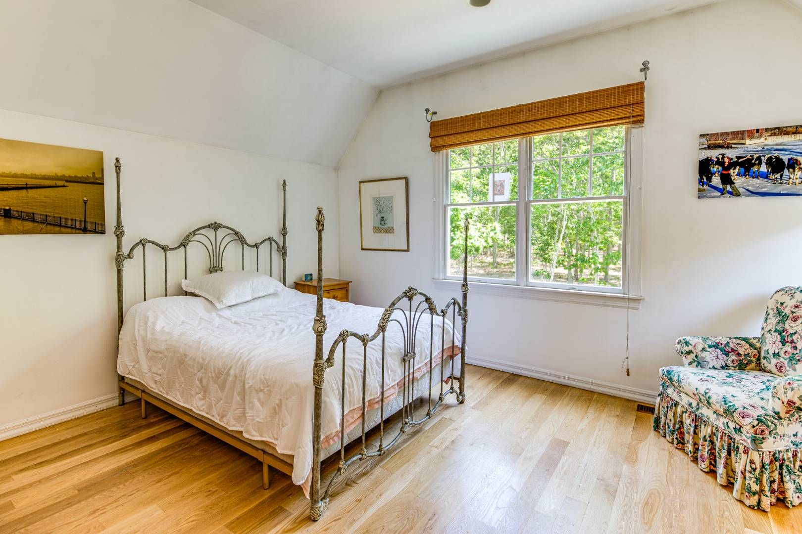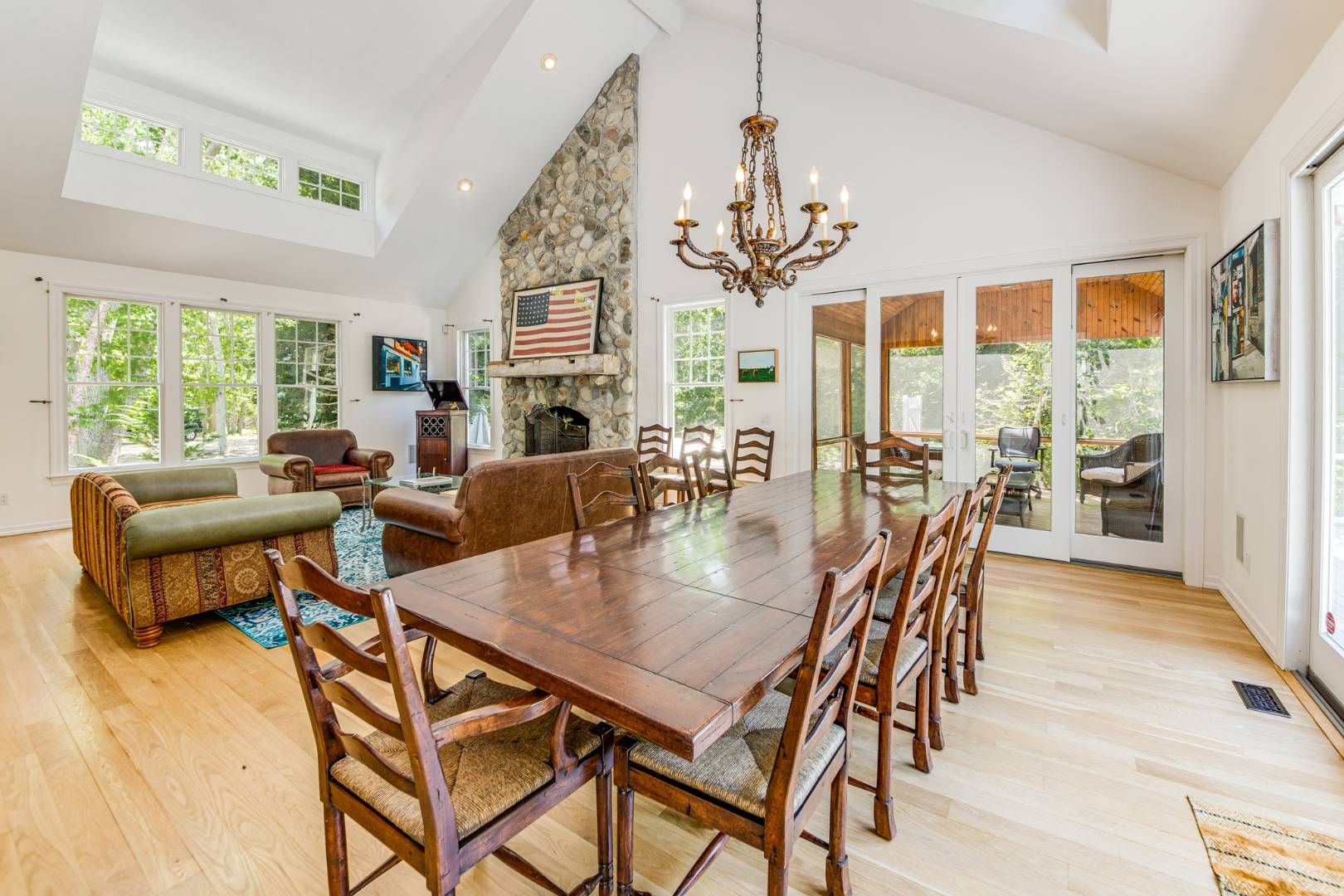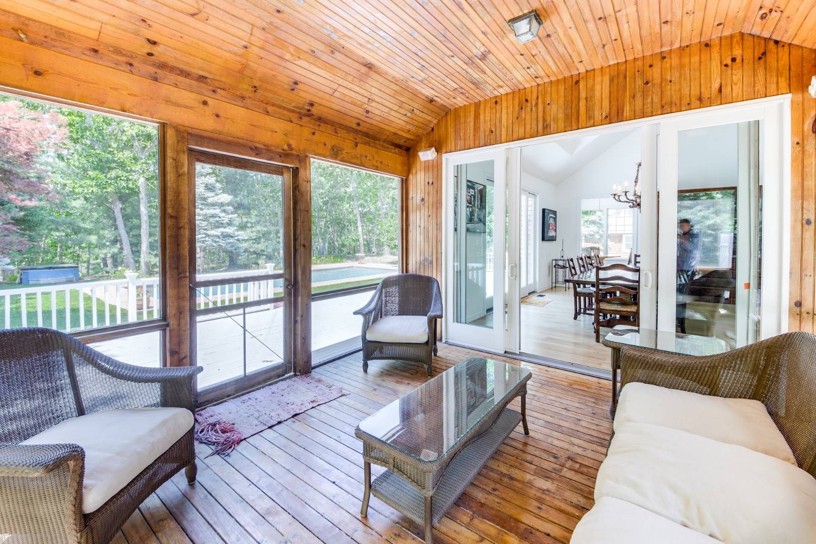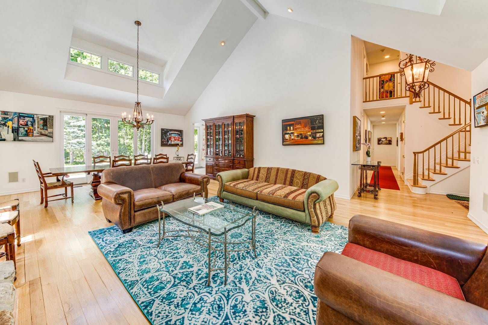 On a quiet cul-de-sac in East Hampton's Northwest Woods this impeccably maintained home sits on 1.7 acres and abuts a 25 acre reserve for ultimate peace and privacy. The newly renovated 4490+/- sq. ft. custom built home is bright and spacious, offering 4 bedrooms and 5.5 baths. Enter into a light-filled, open concept great room with double height cathedral ceiling and a floor to ceiling fieldstone fireplace, which flows onto a delightful scree
