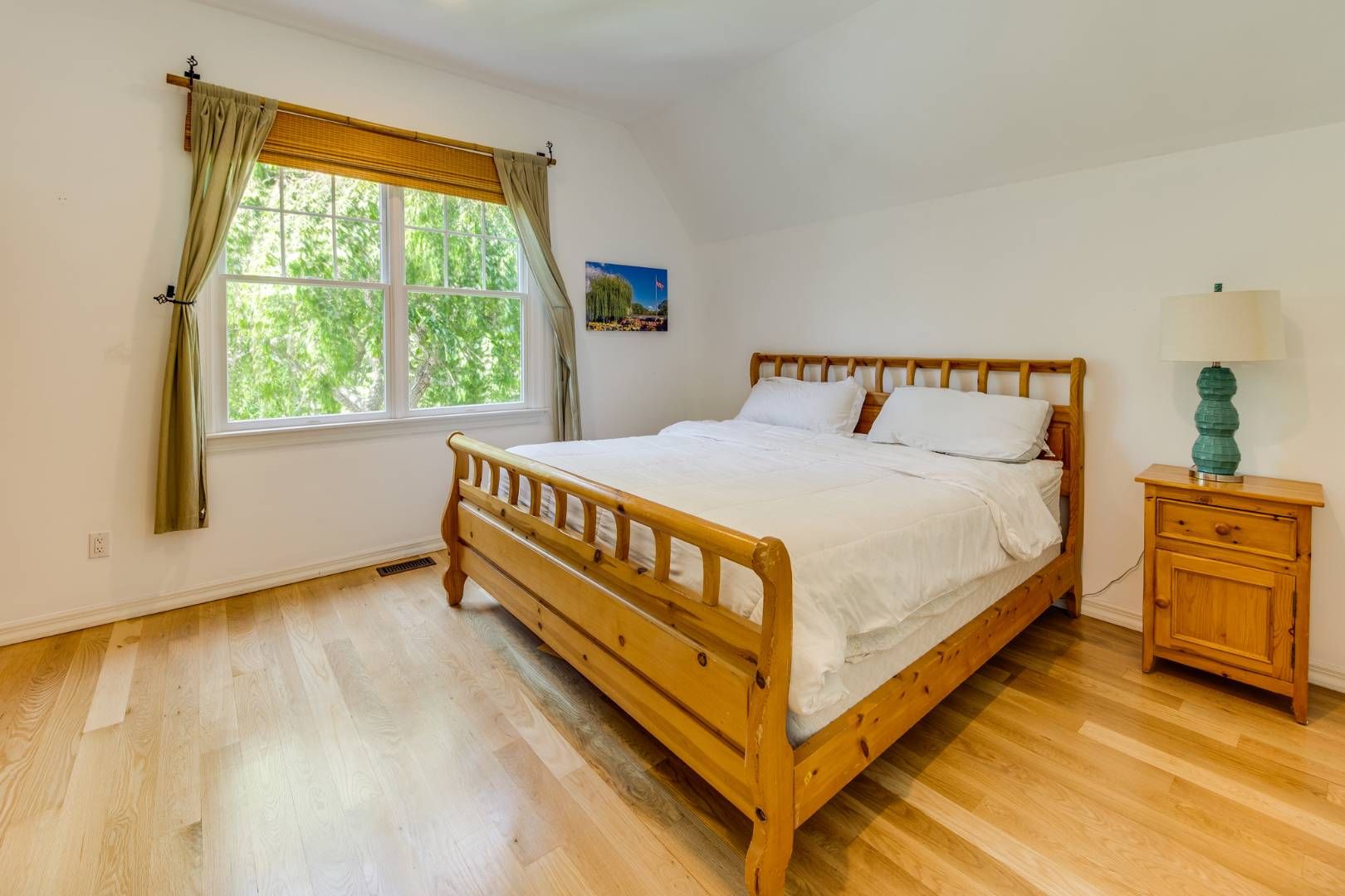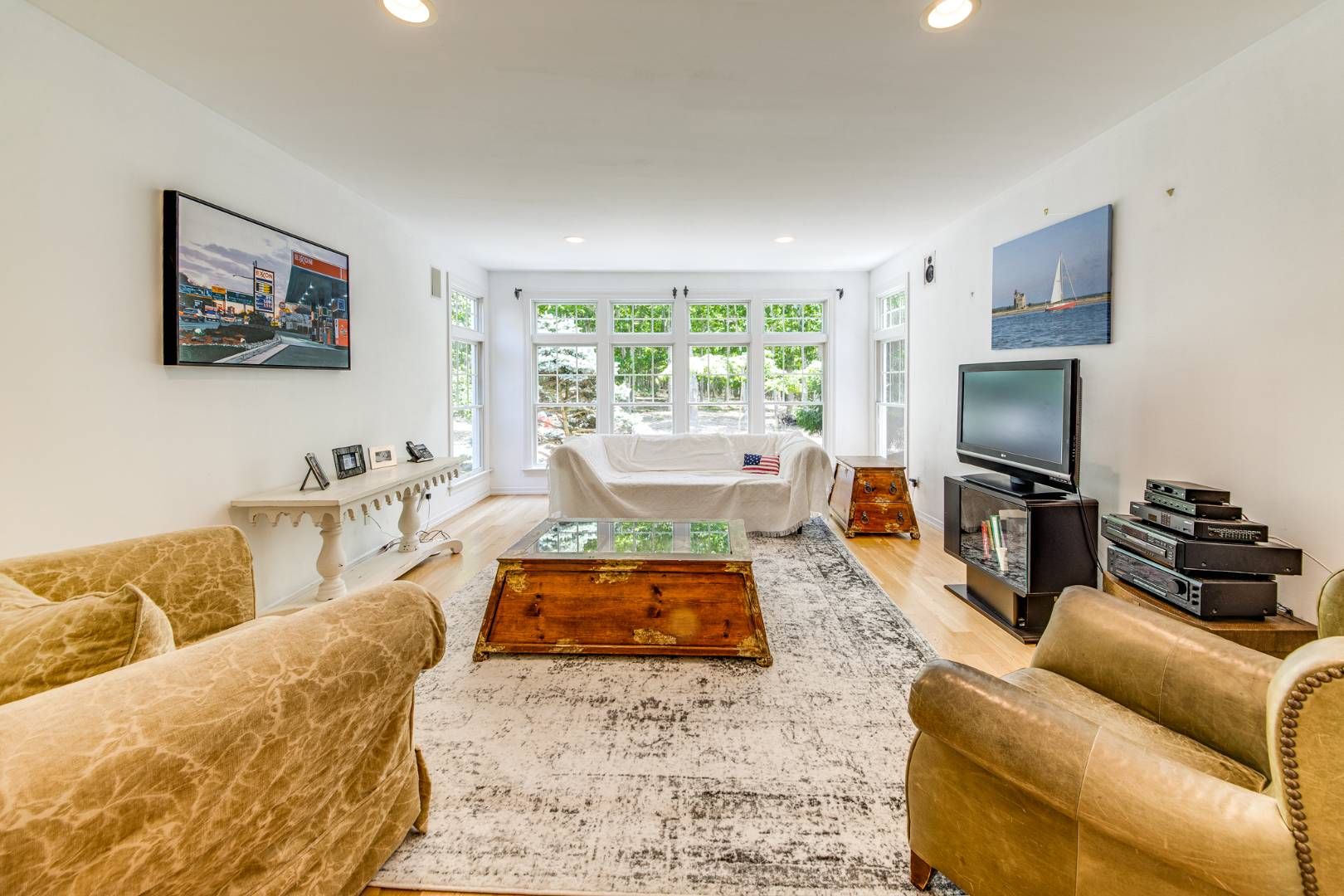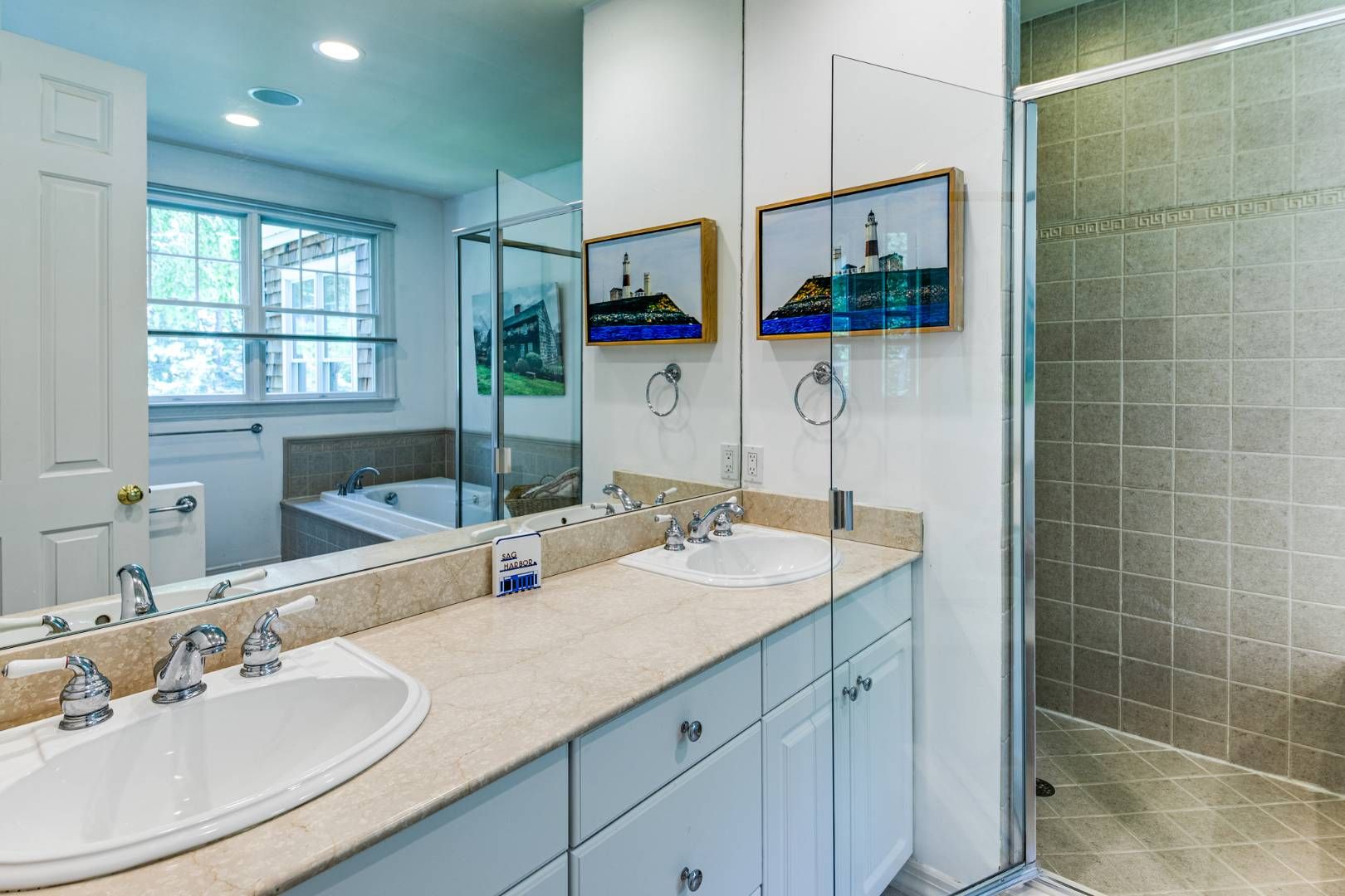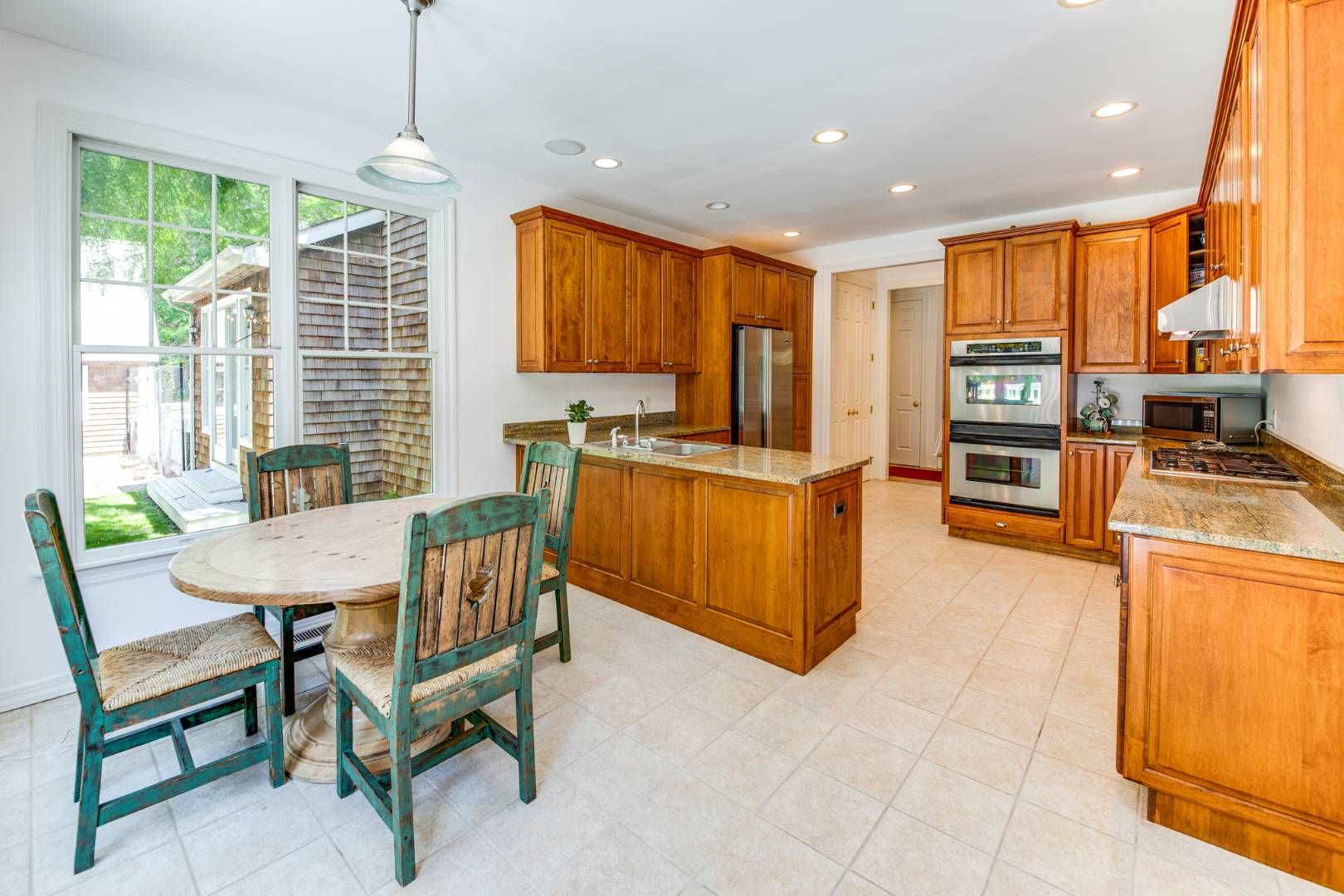 On a quiet cul-de-sac in East Hampton's Northwest Woods this impeccably maintained home sits on 1.7 acres and abuts a 25 acre reserve for ultimate peace and privacy. The newly renovated 4490+/- sq. ft. custom built home is bright and spacious, offering 4 bedrooms and 5.5 baths. Enter into a light-filled, open concept great room with double height cathedral ceiling and a floor to ceiling fieldstone fireplace, which flows onto a delightful scree