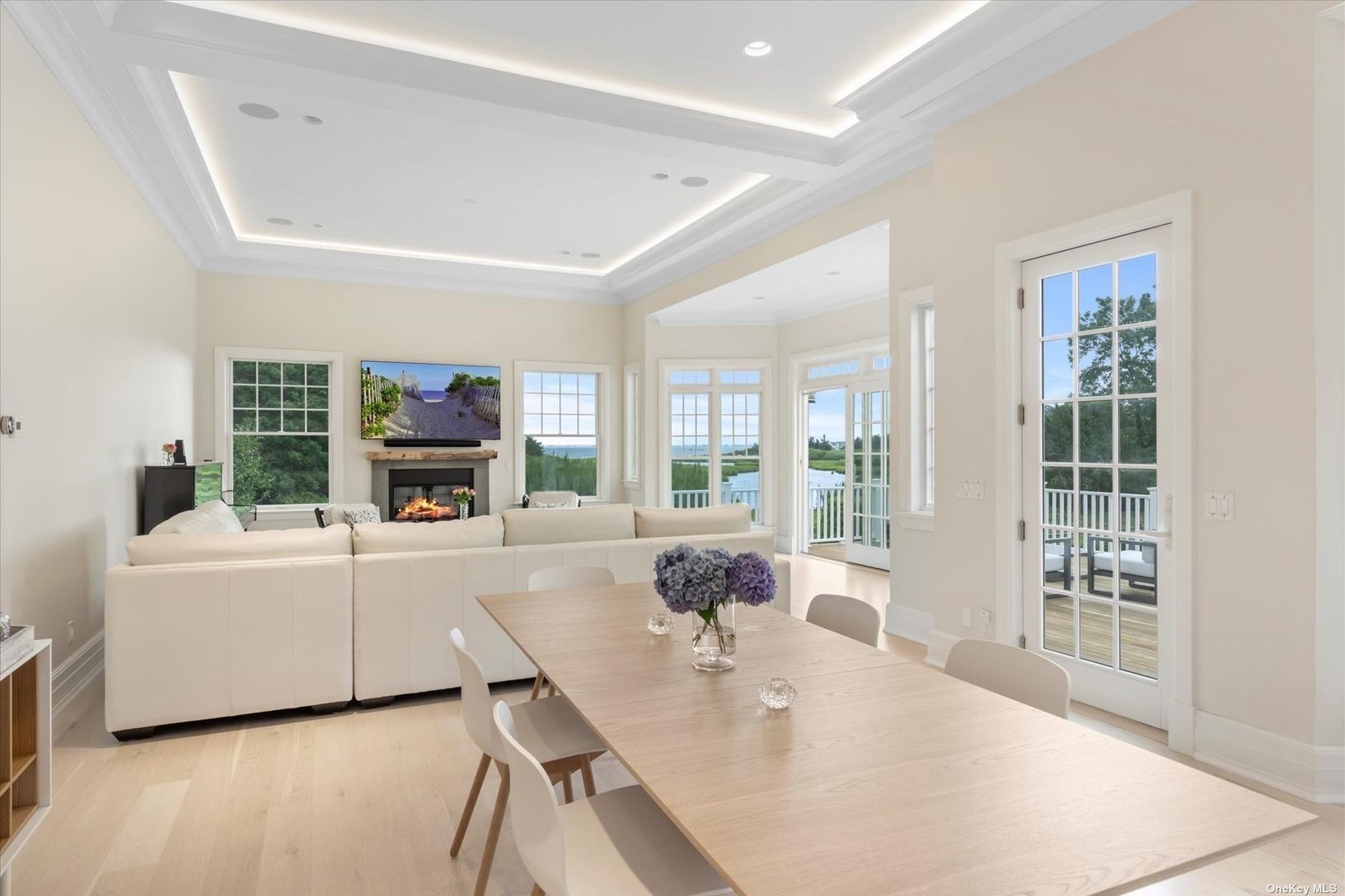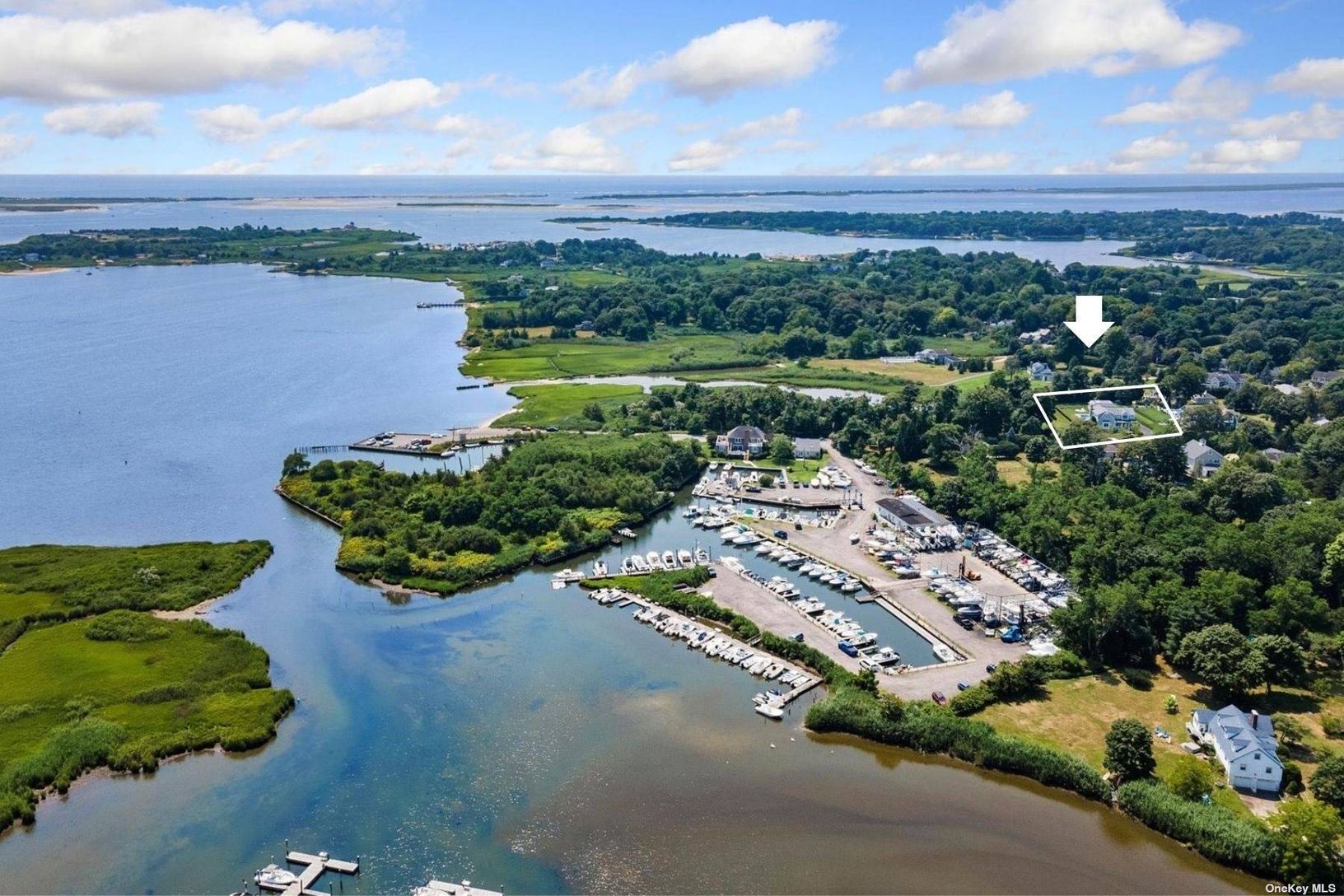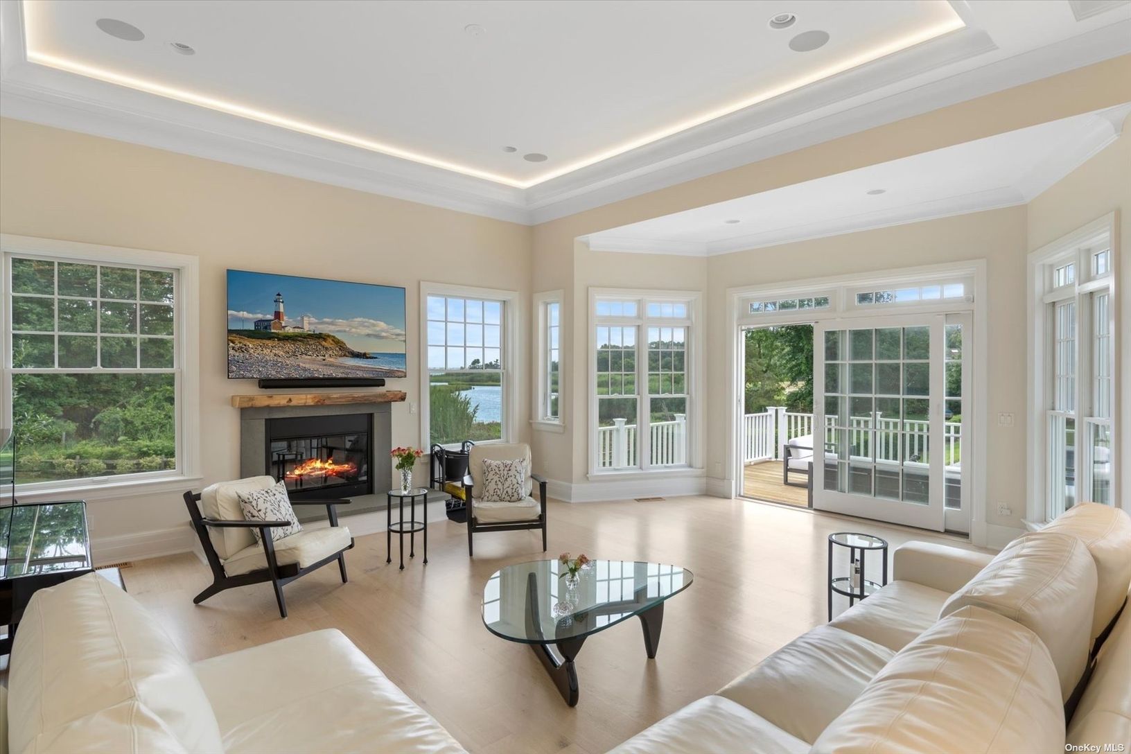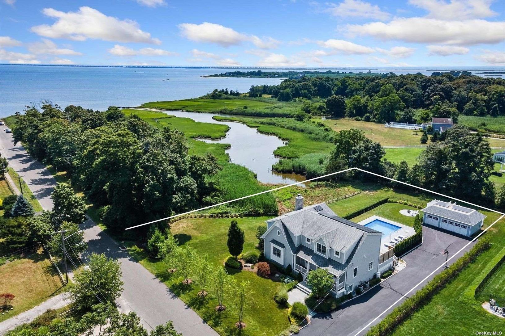 Welcome to a pristine retreat on the edge of The Hamptons, where serenity meets sophistication in East Moriches. This custom 4,674 sq.ft. home is nestled on 1.09 waterfront acres, providing direct access for launching your paddleboard or a kayak. It adjoins protected wetlands, offering mesmerizing sunrise and sunset water views, with Dune Road on the horizon. Step inside to discover a bright and open floor plan, accentuated by 12-foot coffered