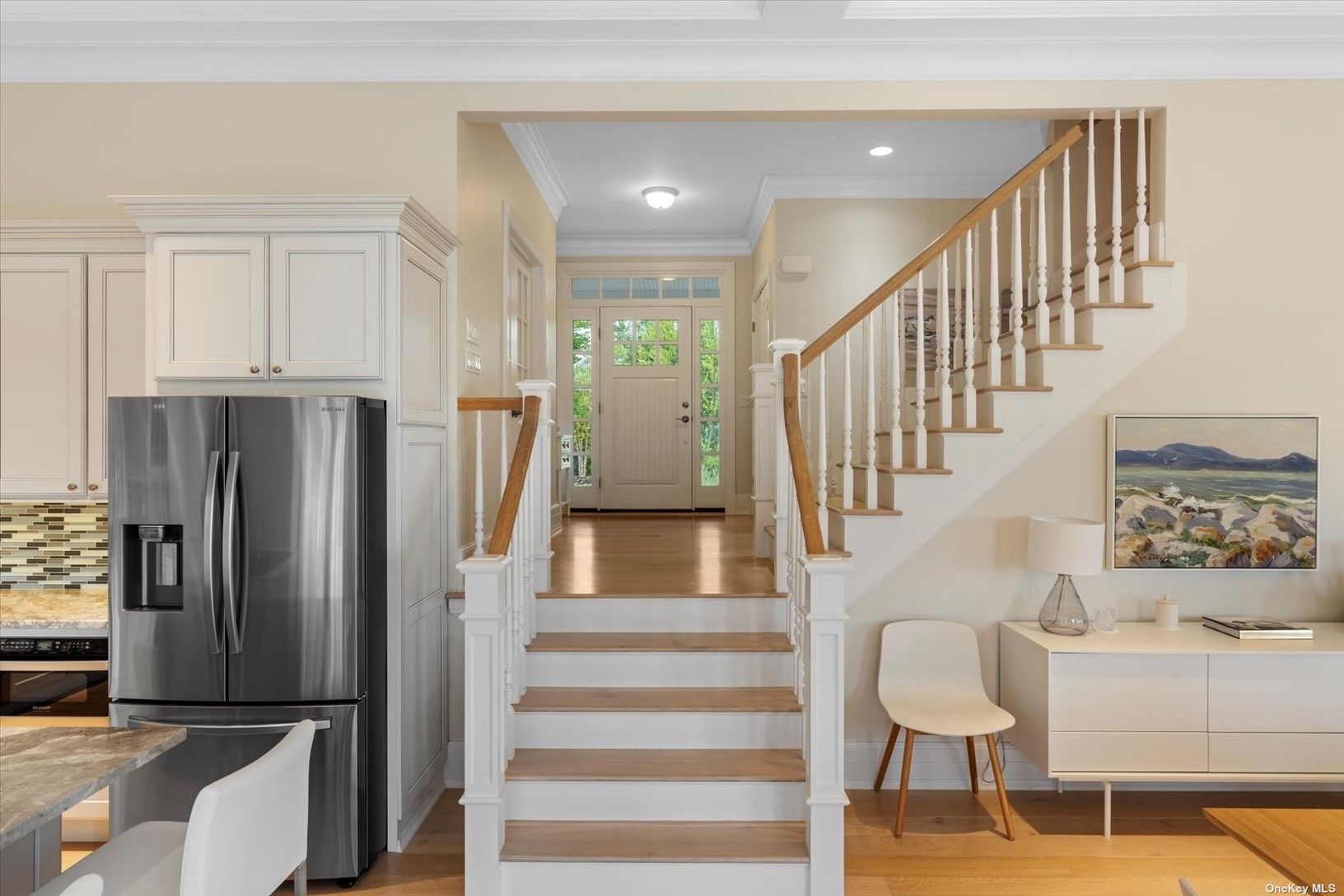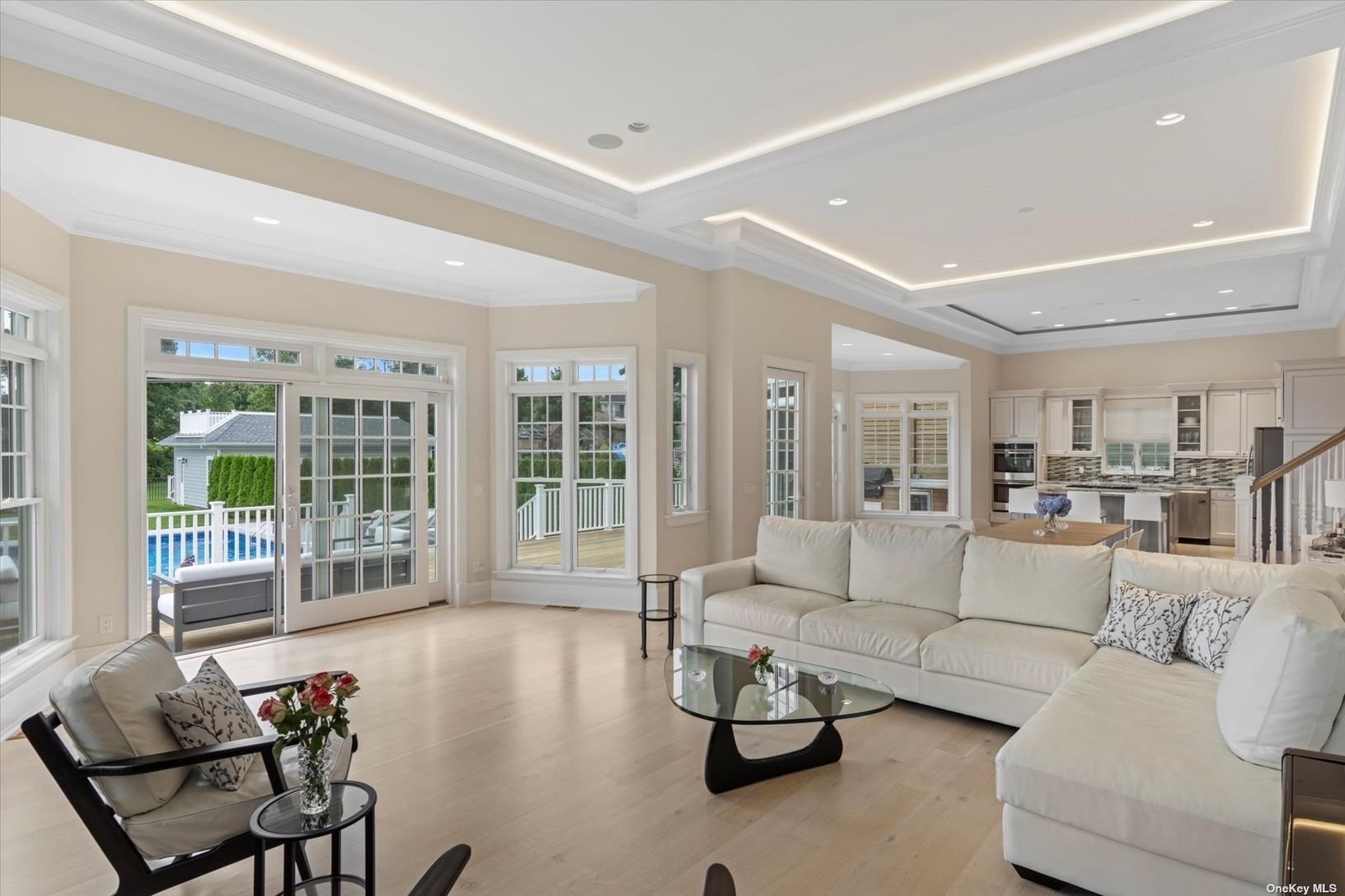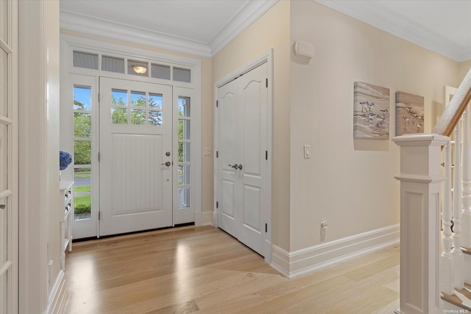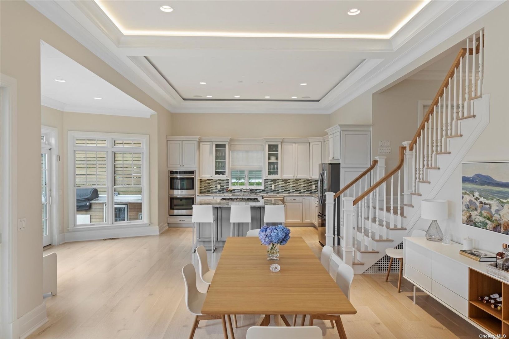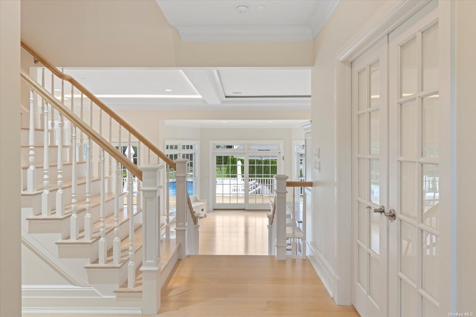 Welcome to a pristine retreat on the edge of The Hamptons, where serenity meets sophistication in East Moriches. This custom 4,674 sq.ft. home is nestled on 1.09 waterfront acres, providing direct access for launching your paddleboard or a kayak. It adjoins protected wetlands, offering mesmerizing sunrise and sunset water views, with Dune Road on the horizon. Step inside to discover a bright and open floor plan, accentuated by 12-foot coffered