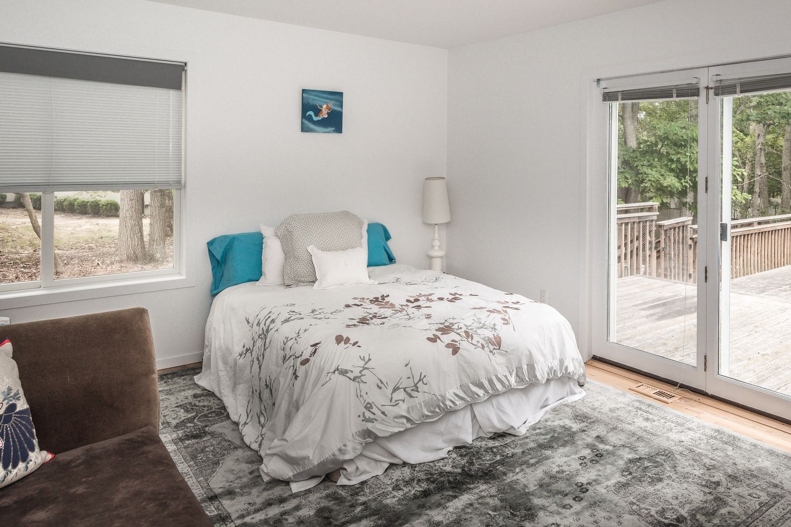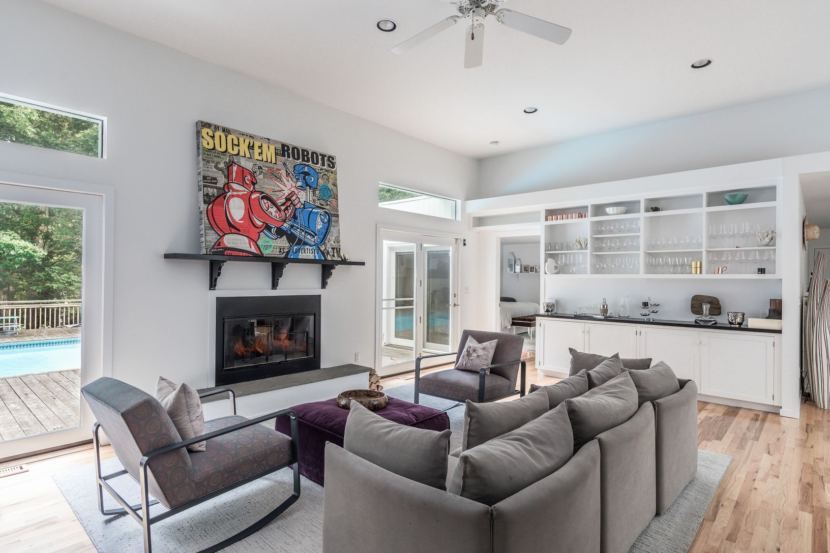 Set on a shy acre just steps to the water in coveted Landfall community, this modern 4 bedroom home is priced to sell and won't last! Set on a quiet lane this modern home features a central great room with vaulted ceilings and wood burning fireplace flanked by sliding glass doors. The open kitchen and dining room are ideal for entertaining. A master suite occupies one wing of the home with a large ensuite bath. The guest wing showcases thr