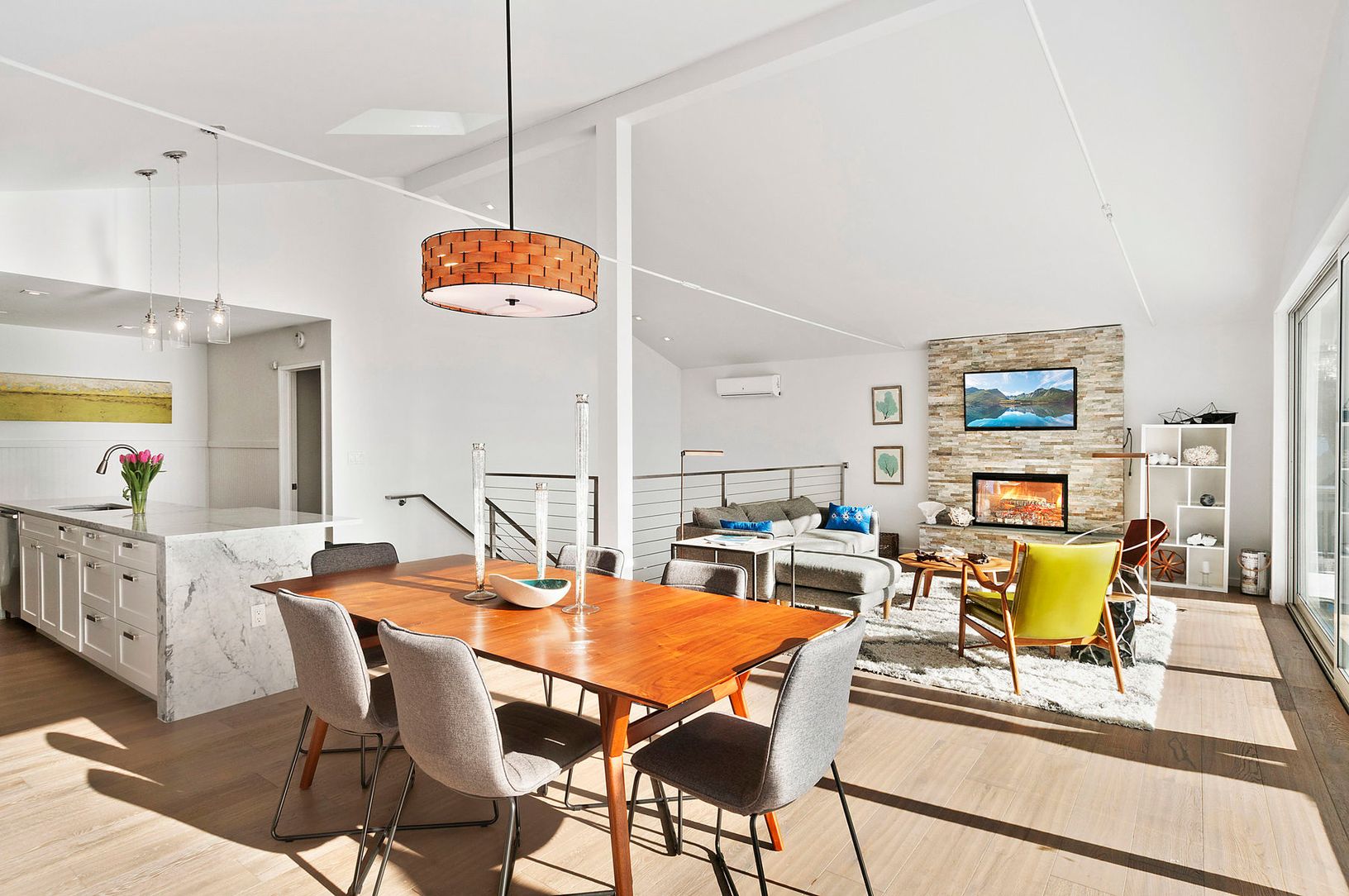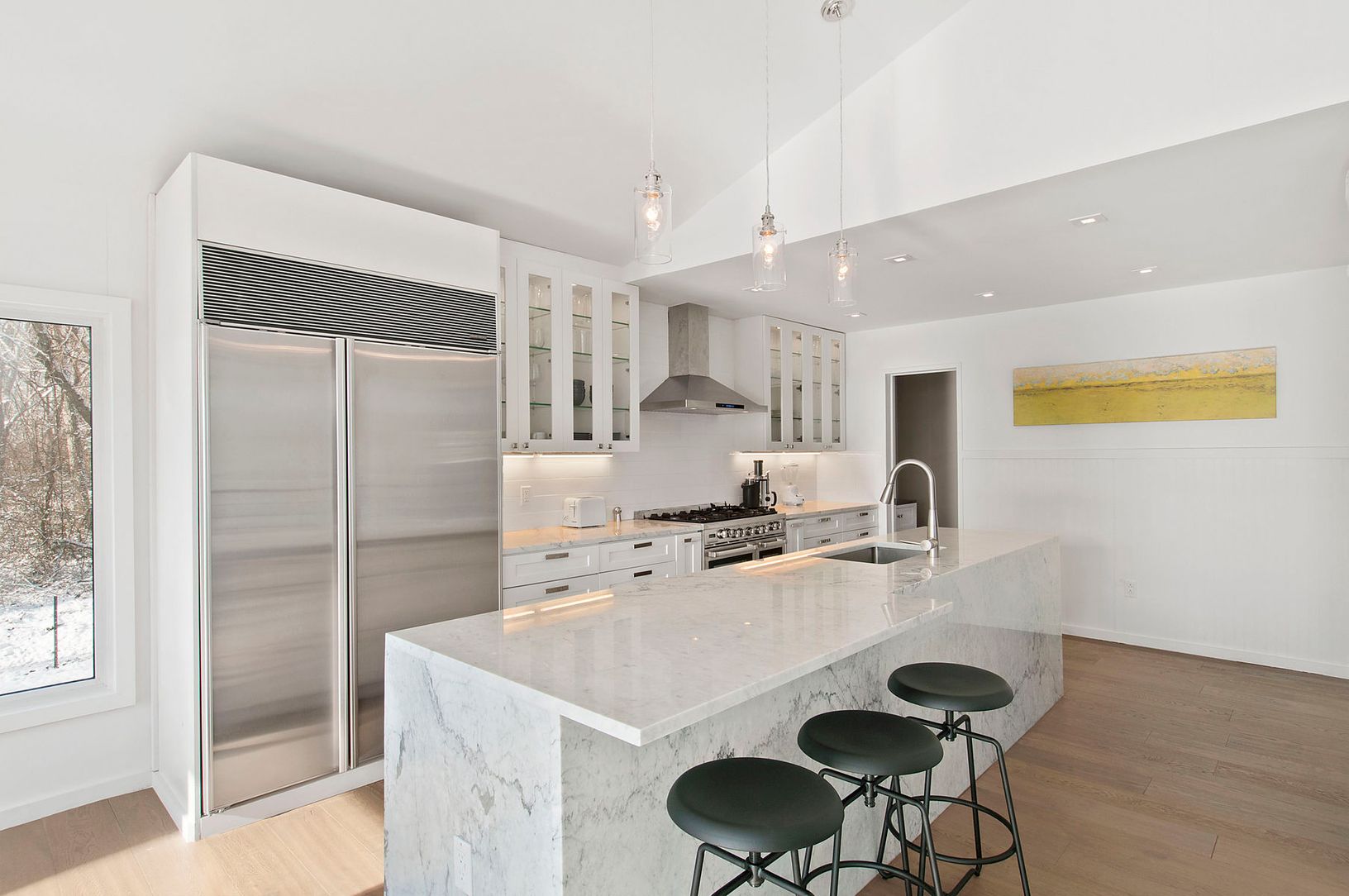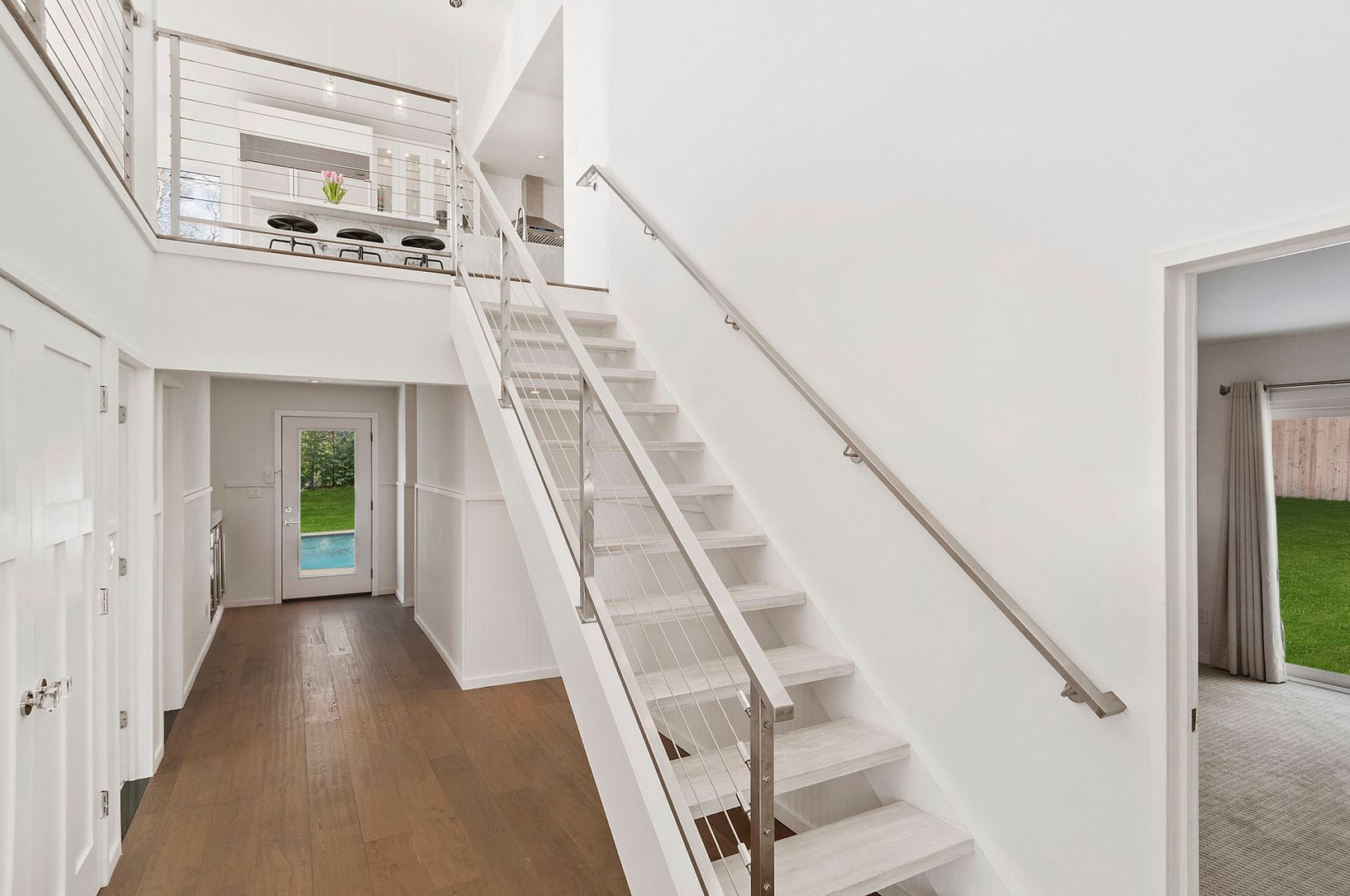 Open floor plan with second story living area that has clean lines , a neutral color palette and breathtaking ocean views. State of the art kitchen with Calacatta marble island, high end stainless steel appliances,