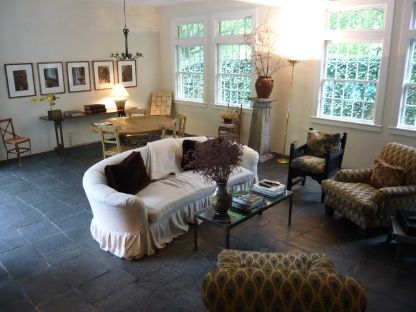 Stylish renovation of charming turn-of-the-century carriage house on a private acre with beautiful old trees short distance to Main Street. Lots of character and light with high ceilings, slate floors, French doors to large terrace with heated pool. 5 bedrooms, 4 baths, central air conditioning.