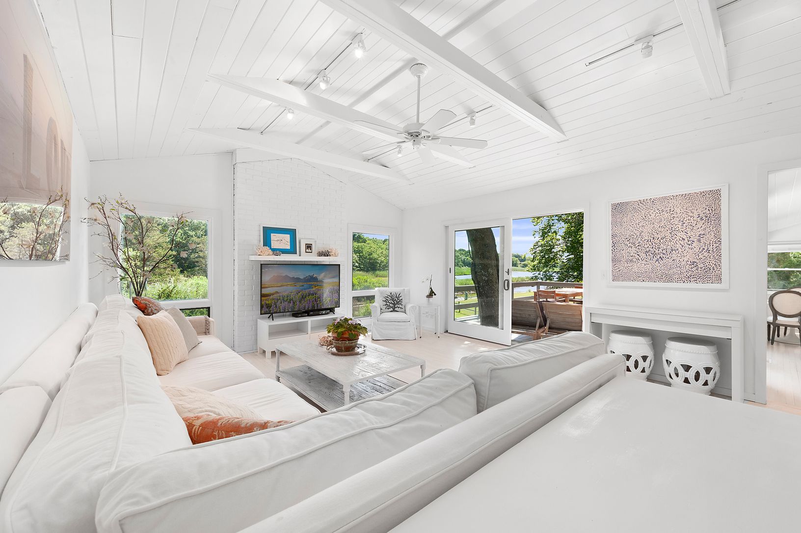 Enjoy the warm southern sunshine in this clean, bright renovated waterfront home on a quiet private lane. With an open floor plan and water views from every room, this three bedroom, three bath elegantly appointed cottage is flooded with natural light. A large deck overlooking the lawn and water has stunning western sunset views out over Bullhead Bay. The rare and coveted bulkhead is a boater and/or water sports enthusiasts dream with access i