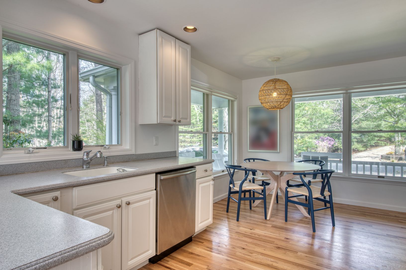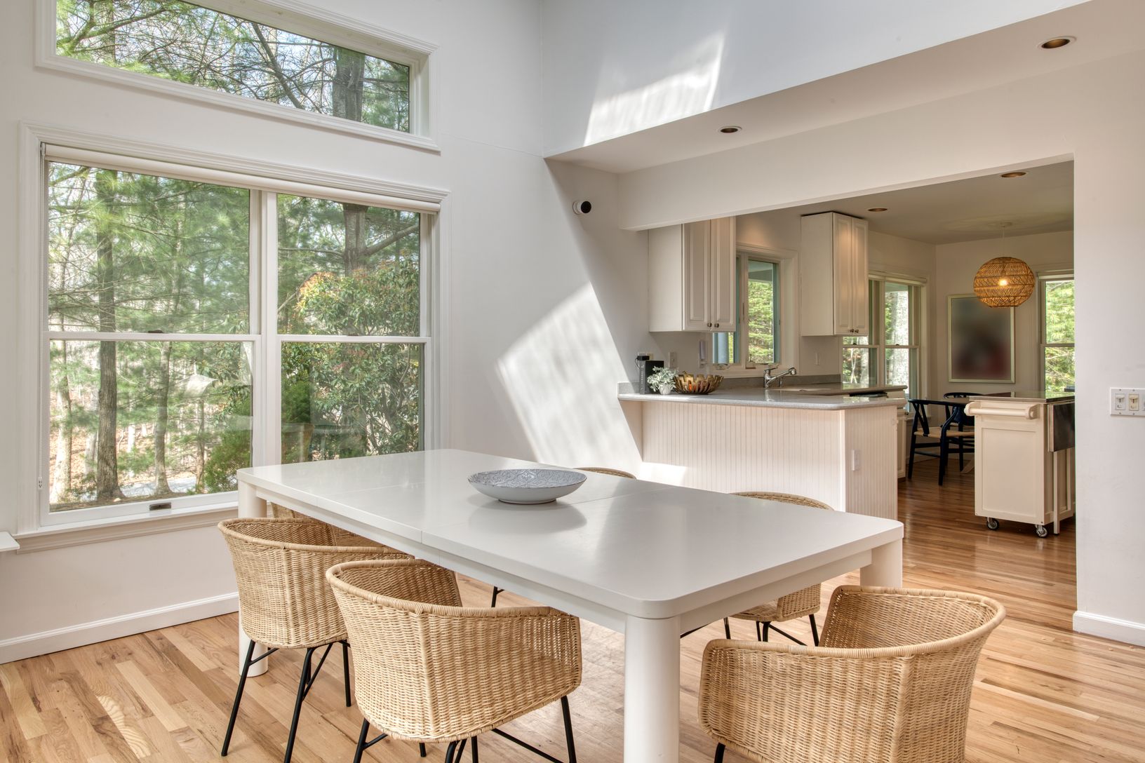 RR #22-739: This pristine summer retreat offers three generous bedrooms and two and a half baths, including a first-floor junior primary suite. Upstairs, the principal suite and an additional guest room provide comfortable accommodations. The open-concept first floor seamlessly connects the eat-in kitchen, dining area, and living space, with sliding glass doors leading to a deck overlooking the heated pool. Located just minutes from East Hampt