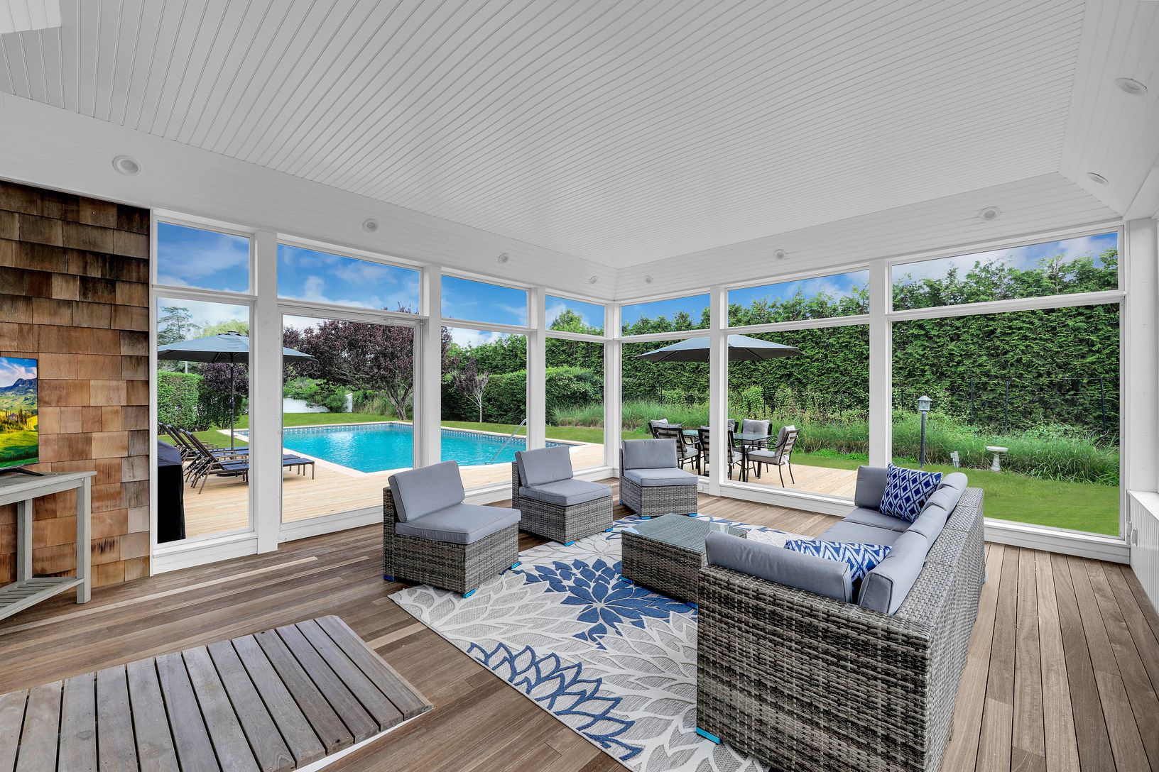 Welcome to the prestigious Estate Section of Quogue Village, where refined living, privacy, and tranquility are cherished by its residents. Set upon an acre of land, just moments from the Quogue Canal, this expansive ranch presents an exceptional opportunity to transform this residence into your very own or construct the home of your dreams flaunting second floor water views, with surrounding homes valued at $10M+/-. This existing ranch boasts