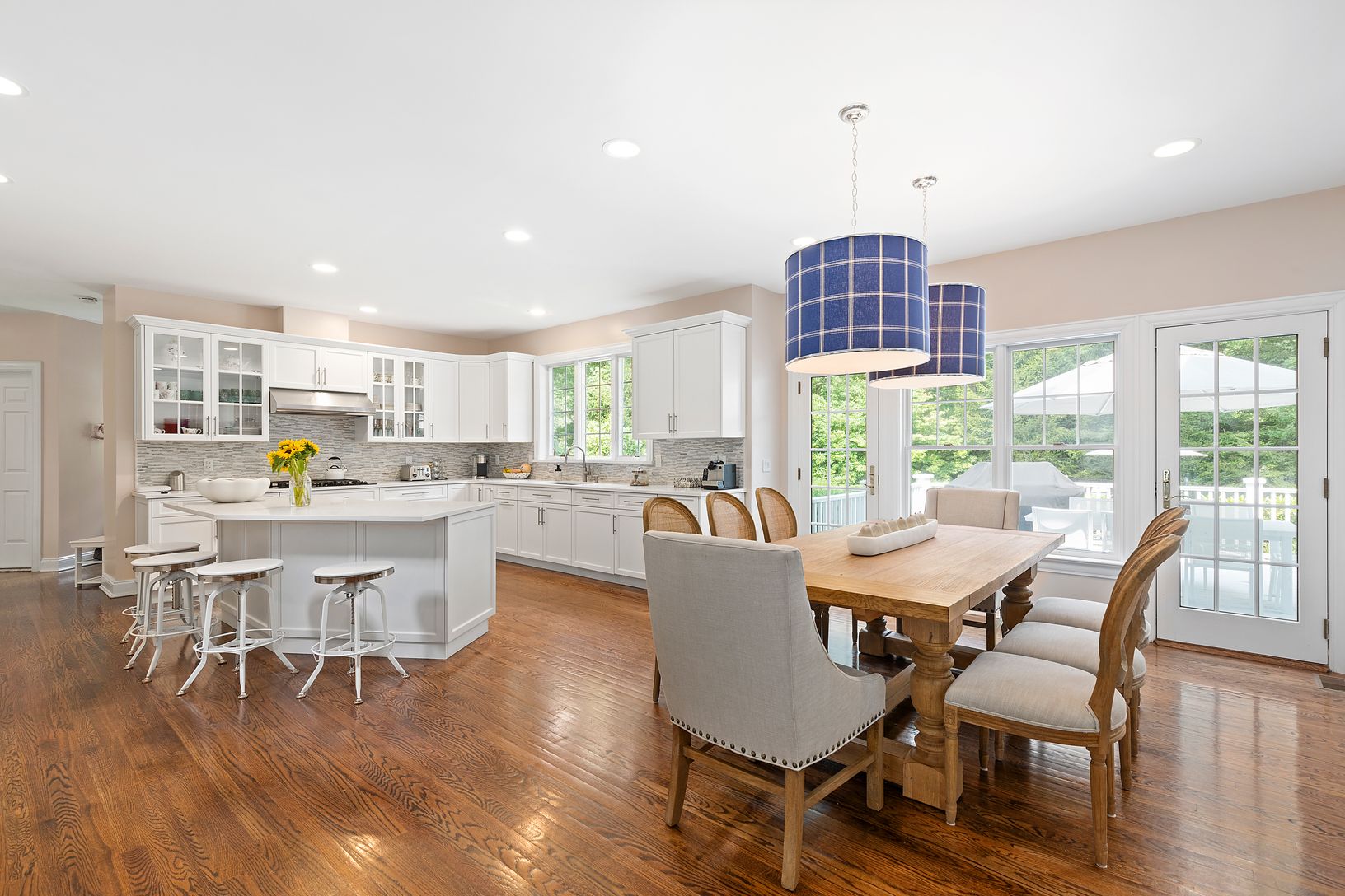 This stately residence sited on nearly two acres at the end of a quiet cul-de-sac offers 4,500+/- sf. of finished living space with five bedrooms plus a bonus room, four full and one half baths. Upon entering the elegantly designed home you are welcomed by a double height ceiling great room that flows into the open kitchen featuring top of the line stainless steel appliances and an informal dining area that looks out onto the deck. The home of