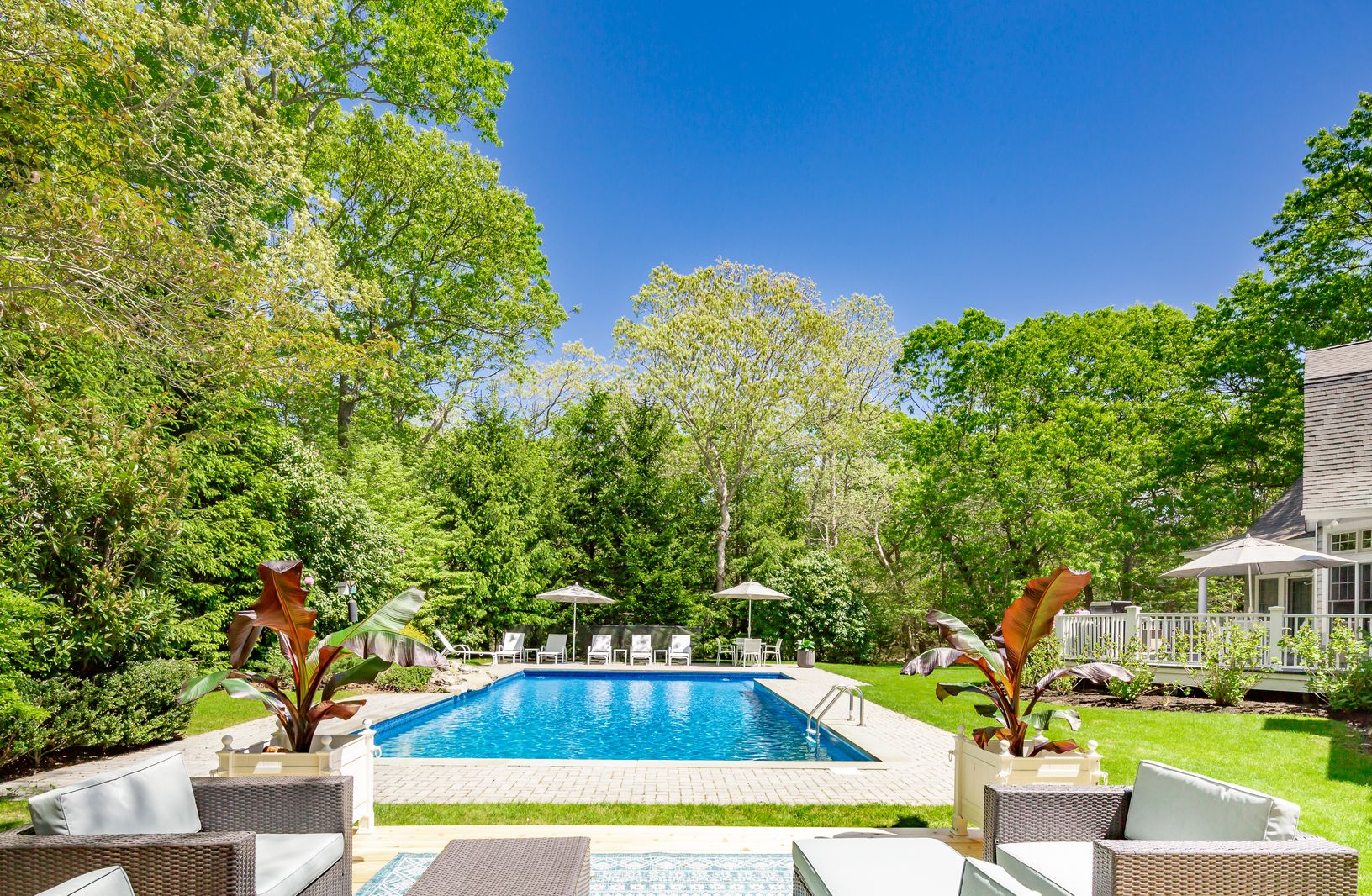 Absolute perfection for summer rental. The open floor plan has an easy flow with large kitchen, dining, and two living areas, and amazing view overlooking the generous porch, yard, and pool with waterfall feature. The main floor primary suite is flooded with natural light from many windows and glass doors to the back deck. It also has a spacious bathroom with jacuzzi tub, and two large closets. Rounding out the main floor are laundry, full bat