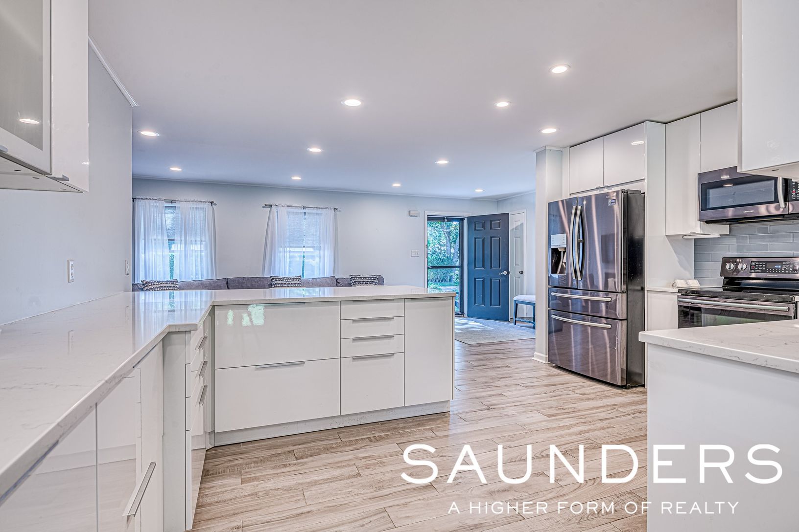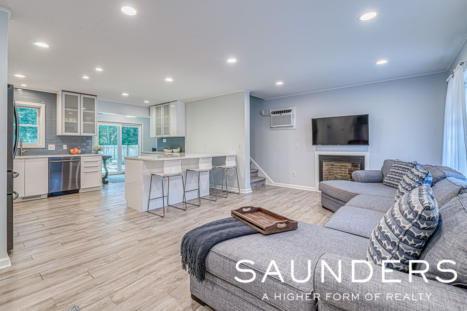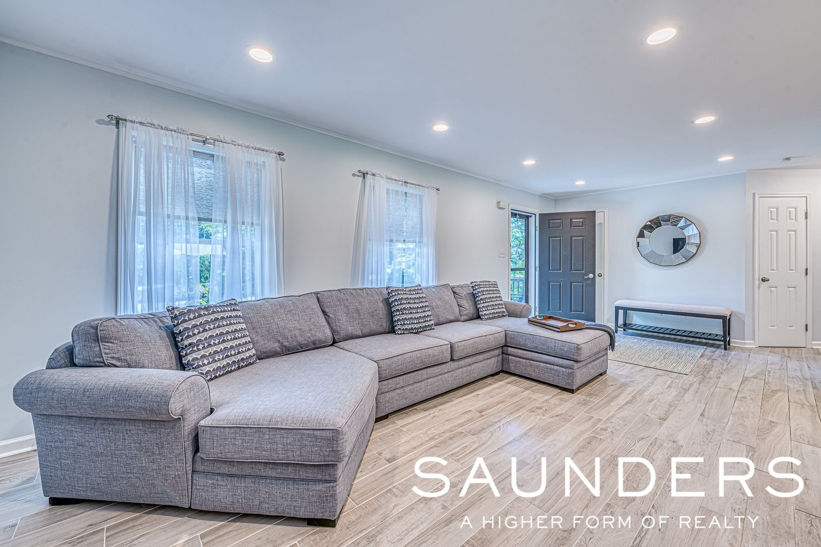 NEW TO MARKET! Fully renovated East Quogue Charmer offering 4 bedrooms, 2 baths and 2400 +/- square feet living space including an extra-deep partly finished basement for recreation & storage. Located close to Main Street, convenient to shops, restaurants, the Hampton Jitney stop and the Village Green/Children's Park, this is a perfect Hamptons summer retreat or year-round residence. The open kitchen is inviting and features white cabinet