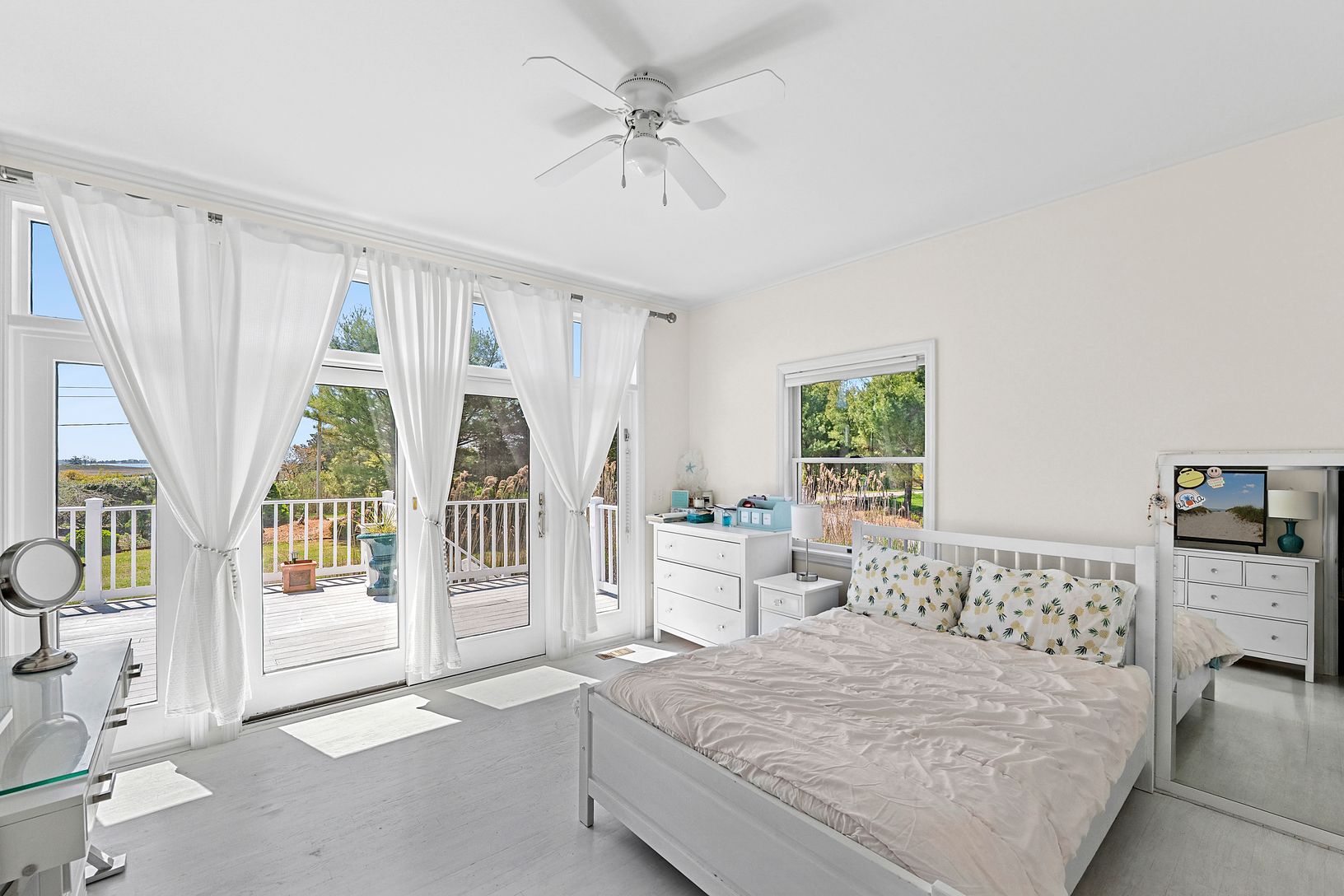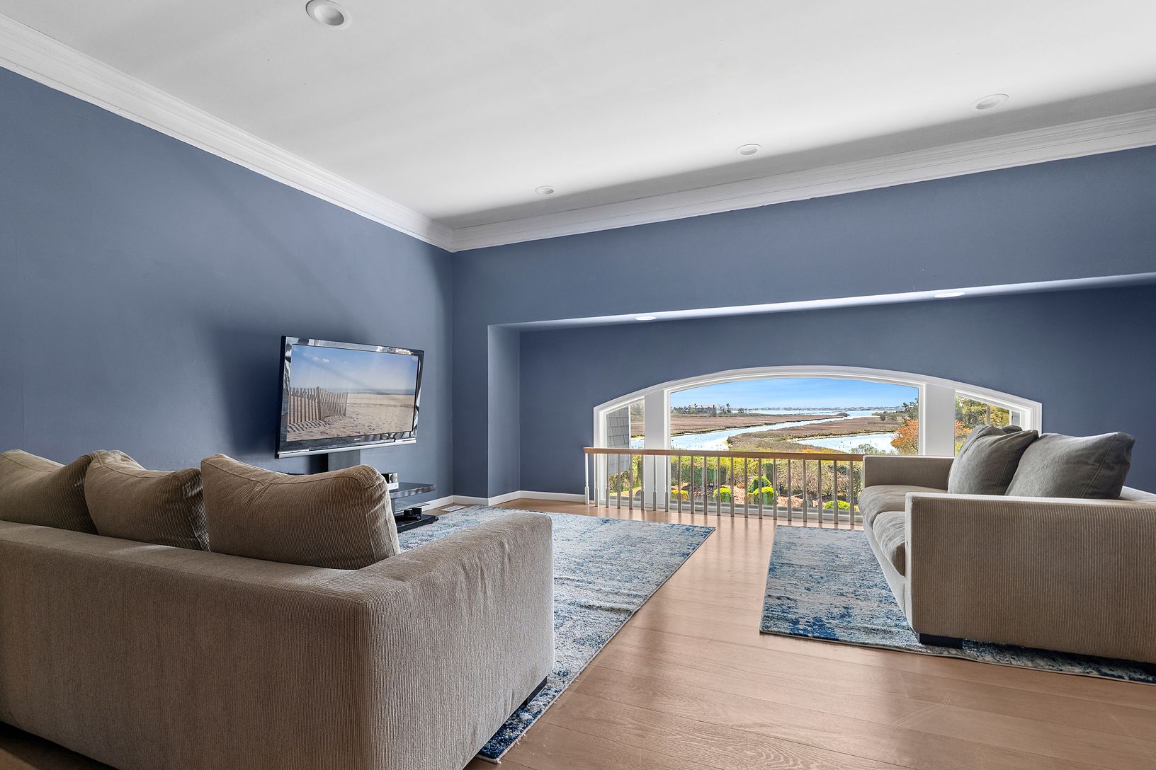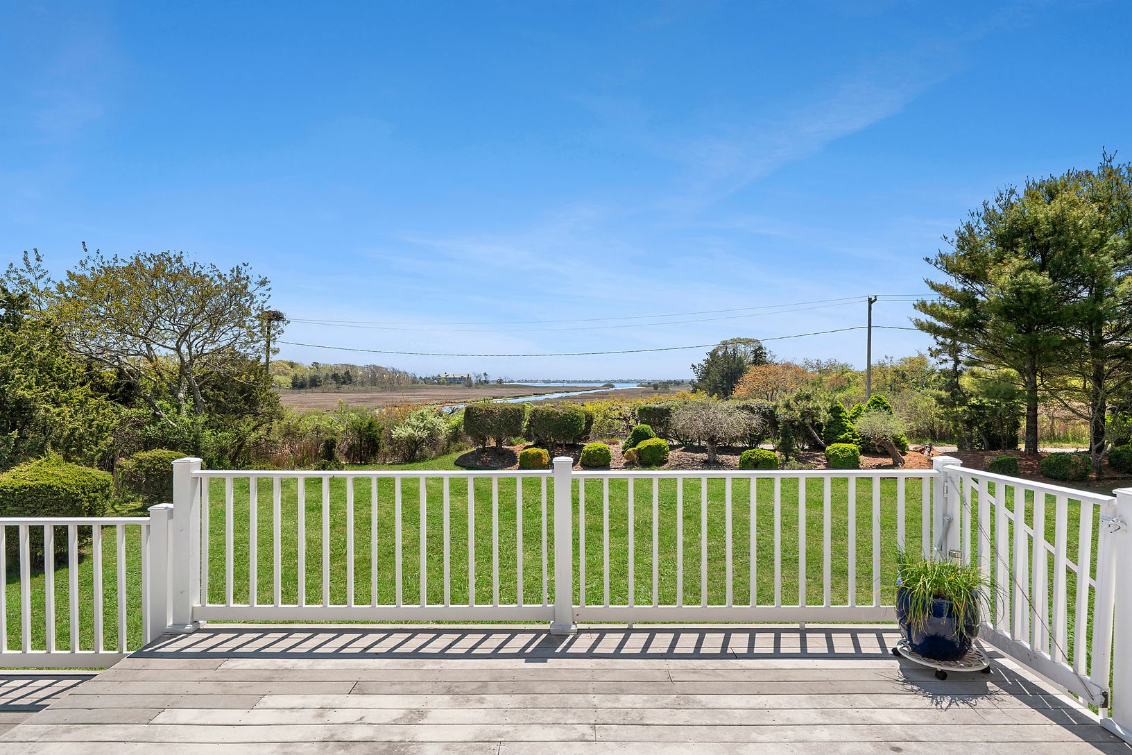 Nestled on +/-1.05 acres with access to Tanners Neck Creek and bordering a nature reserve, this 5-bedroom, 3.5-bathroom Hamptons home offers both privacy and breathtaking water views of Moriches Bay and Dune Road beyond. Built in 2001, the +/- 3,659 sf home features a living room with a coffered ceiling and oversized windows and a recently renovated chef's kitchen complete with custom cabinetry, gorgeous countertops, and top-of-the-line appli