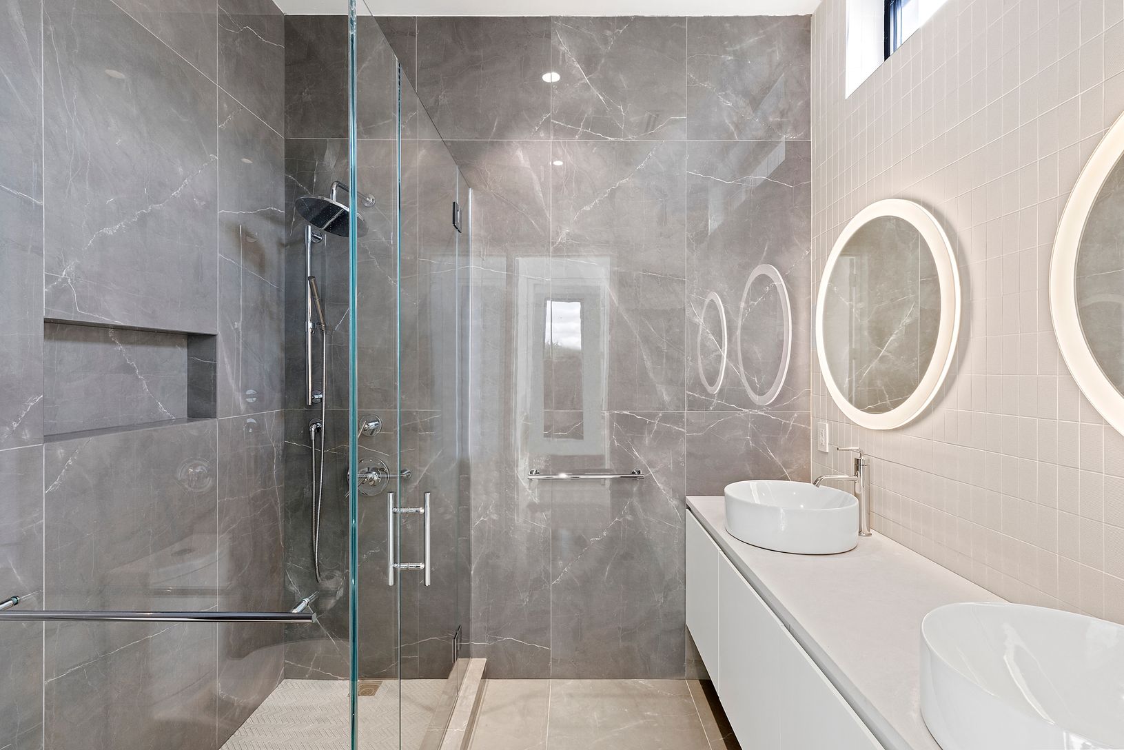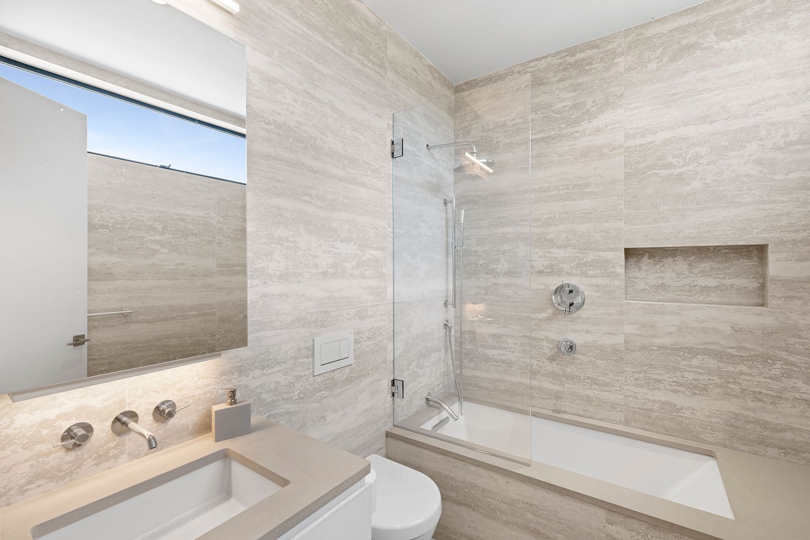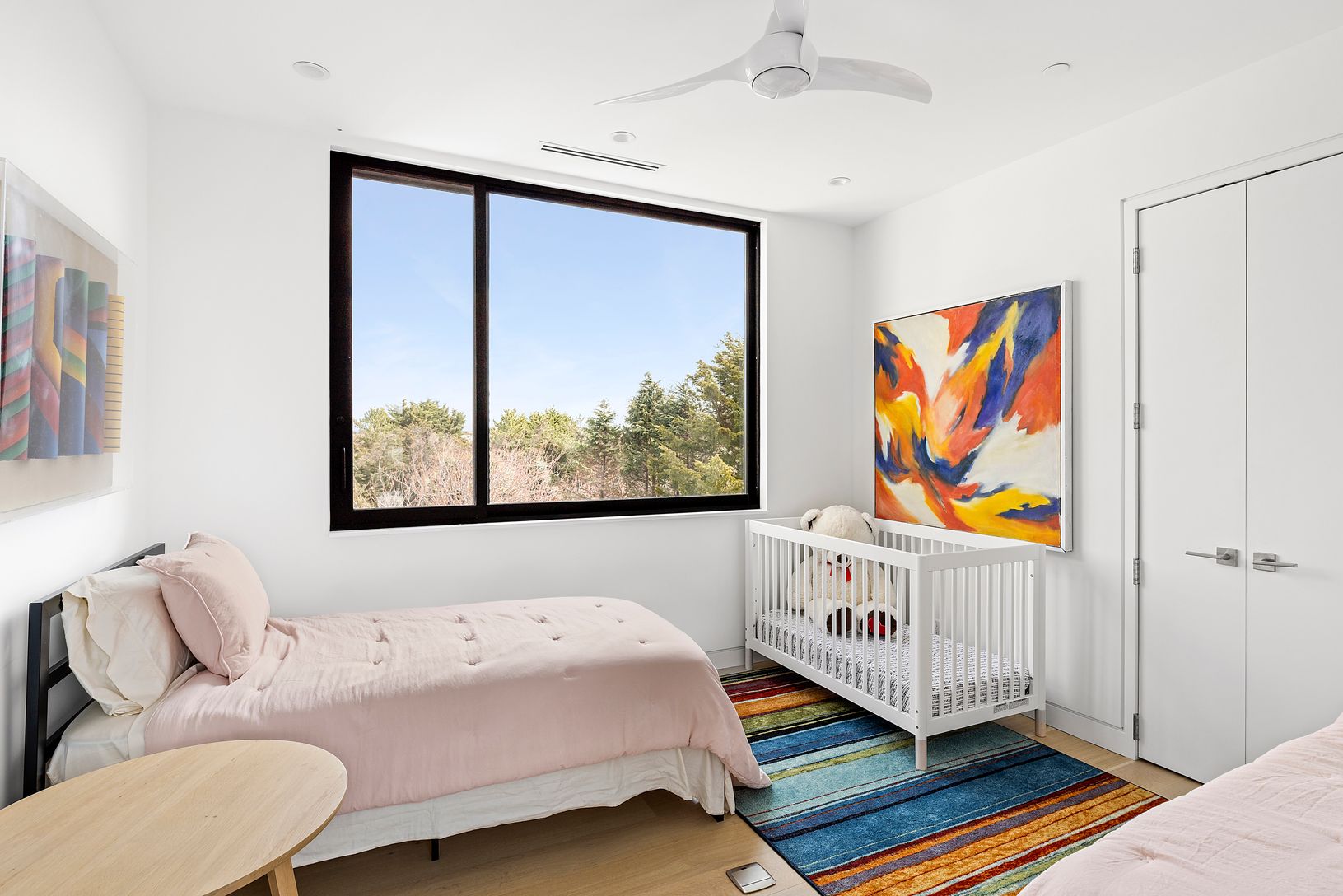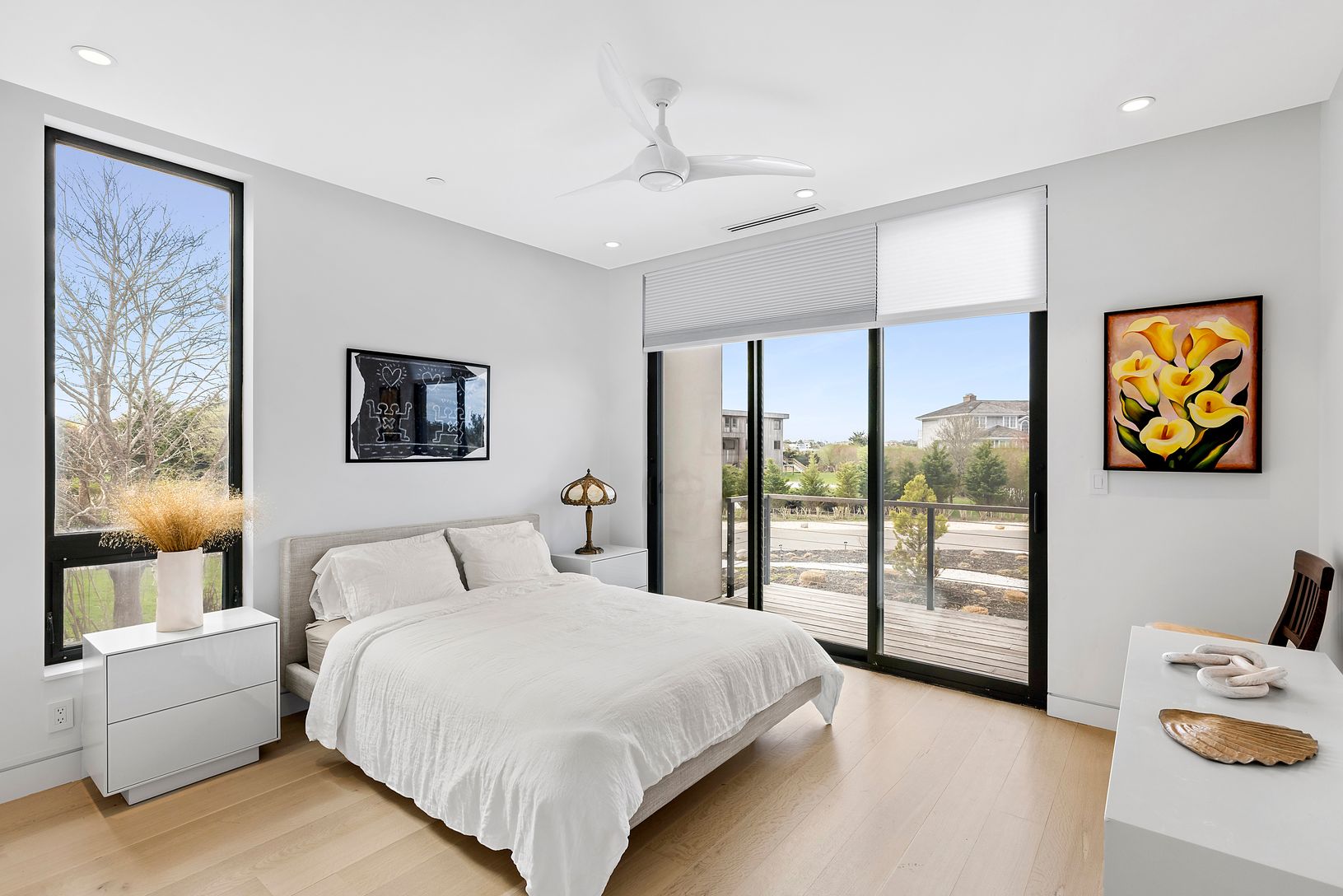 This recently-built house in Westhampton Beach boasts 5 bedrooms and 6.5 bathrooms and was designed by Josh Manes Architecture with sustainability at the forefront. Surrounded by preserved wetlands, this home offers stunning sunset views and a serene natural setting. The house features a double-height fireplace clad in cedar and large-format tiles, which creates a dramatic focal point i