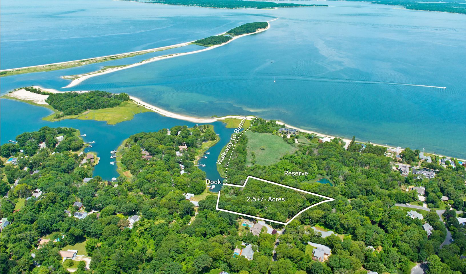 Build your dream home on this 2.5 acre parcel located in Sag Harbor. Private floating dock in a protected inlet that leads to Noyac Bay. Room for a substantial house and pool with a right of way to an incredible bay beach. Community yacht club and additional marina with slips.