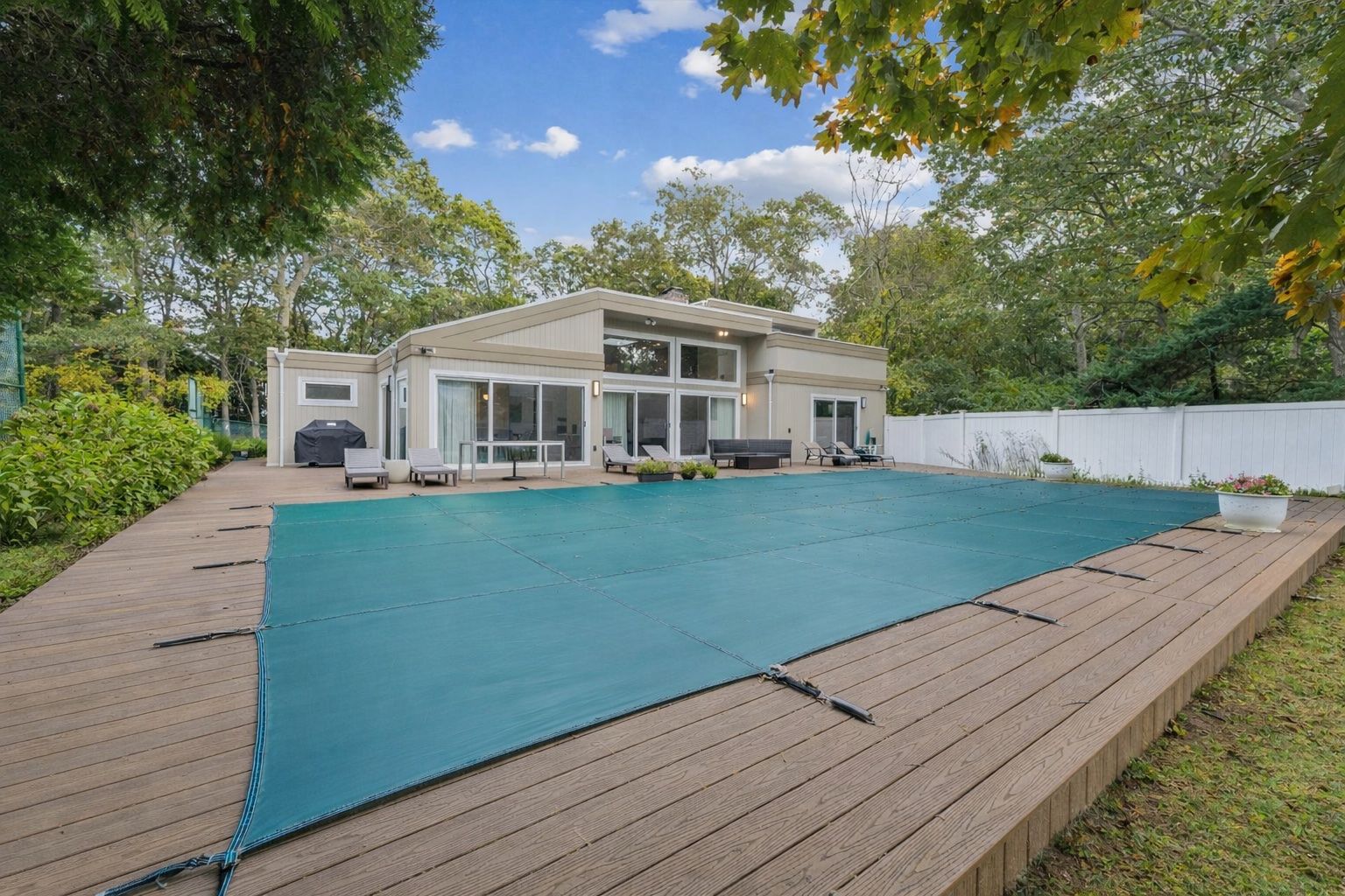 Set on a quiet cul-de-sac in the Village of Quogue, this recently renovated 5-bedroom, 4.5-bath home offers a thoughtful blend of comfort, convenience, and contemporary design. The light-filled great room showcases floor-to-ceiling windows and a dramatic two-story fireplace, seamlessly connecting to the open kitchen and dining area - an ideal layout for both daily living and effortless entertaining. The first floor features two junior primary