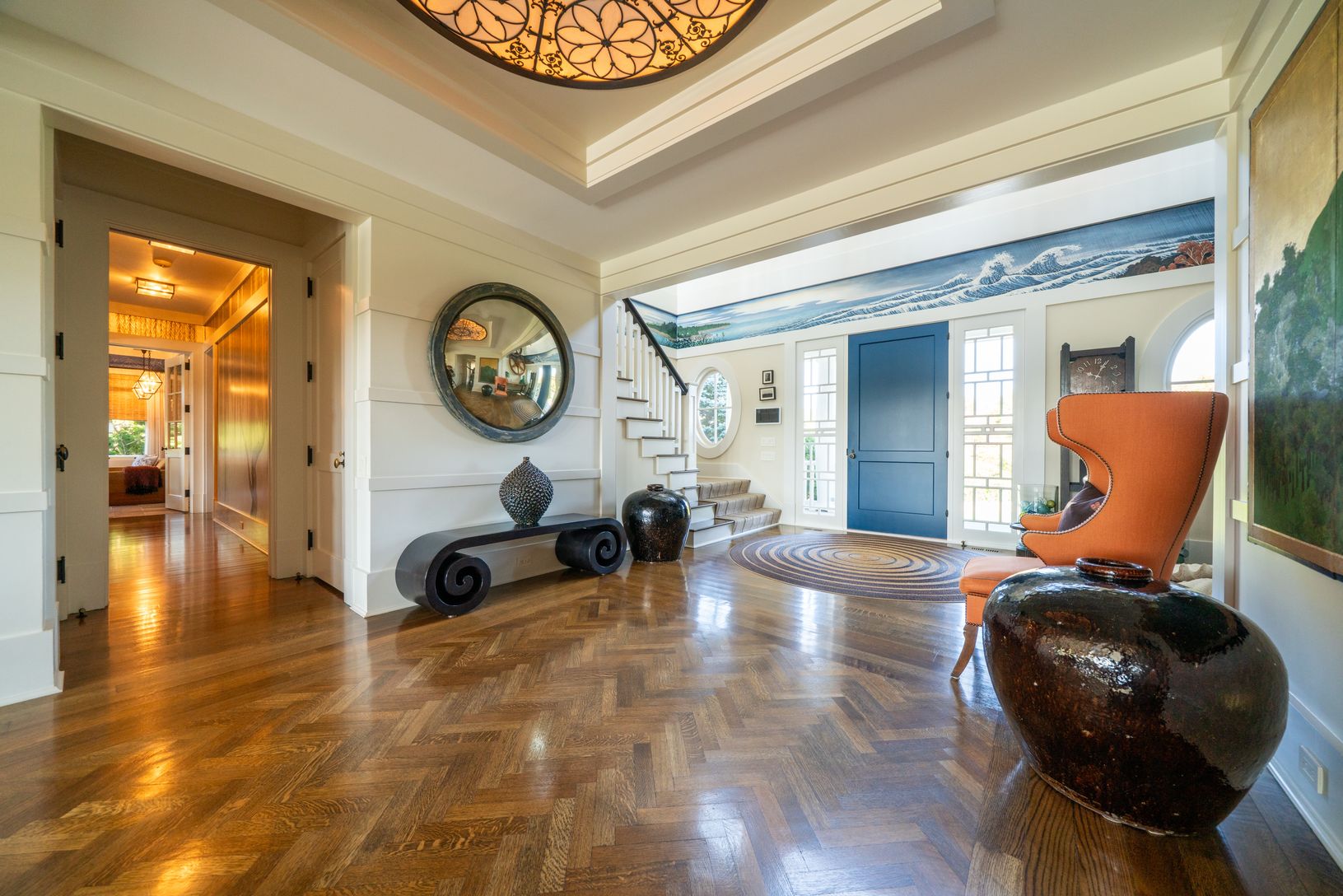Ideally positioned along the most prime stretch of pristine Atlantic Ocean frontage within Quogue Village on Eastern Long Island, lies this classic and timeless shingle-style residence. Thoughtfully designed with the most keen eye and curated to the highest level, the masterfully crafted residence was constructed using the finest of custom materials. The attention to detail is evident from the moment one enters the gated 2-acre property. Every