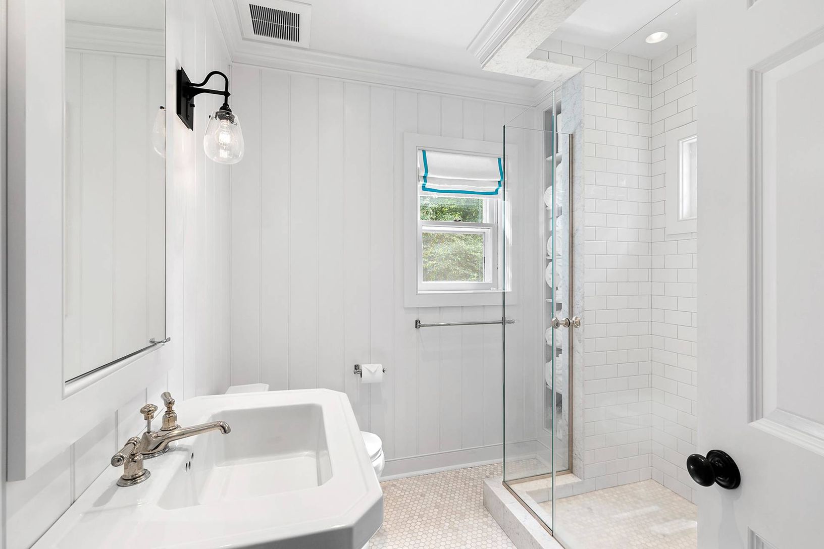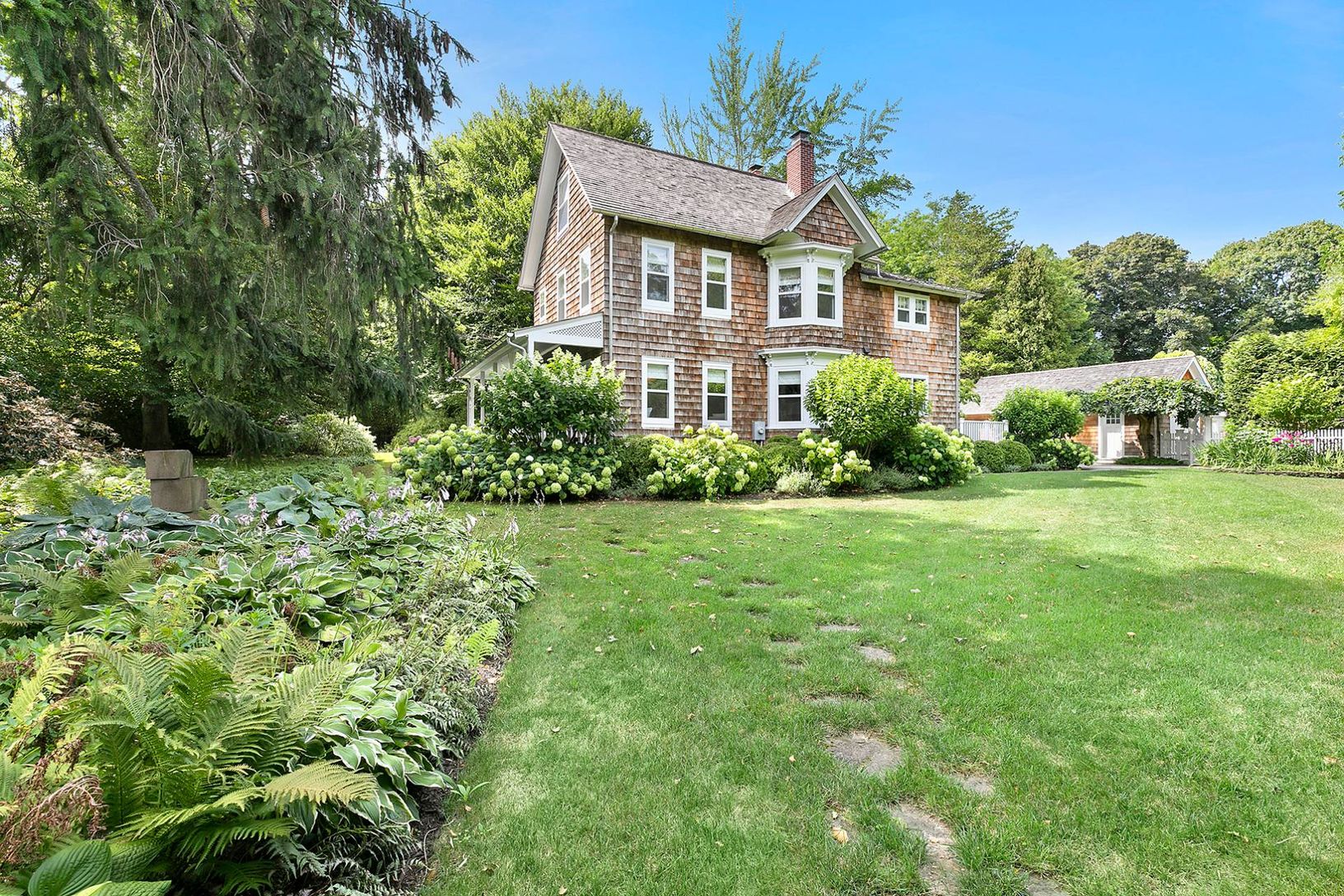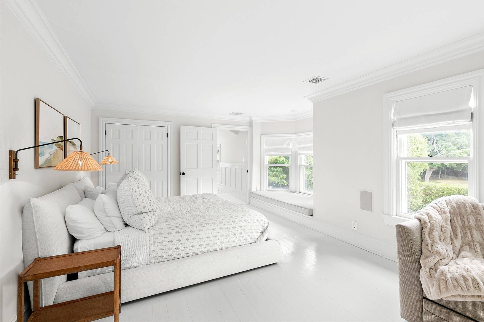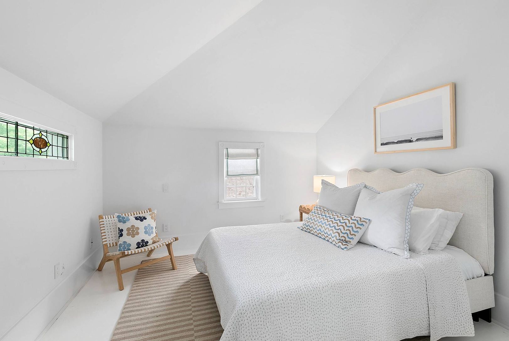Conveniently located near Sag Harbor Village, this wonderful farmhouse features 3 bedrooms, 2 full and 1 half baths, and a large, light-filled, open living room with a fireplace. Interior renovation has been completely modernized and transformed the interiors and includes a new kitchen with professional appliances and integrated cabinetry, light wood and white-washed floors, new marble and white ti